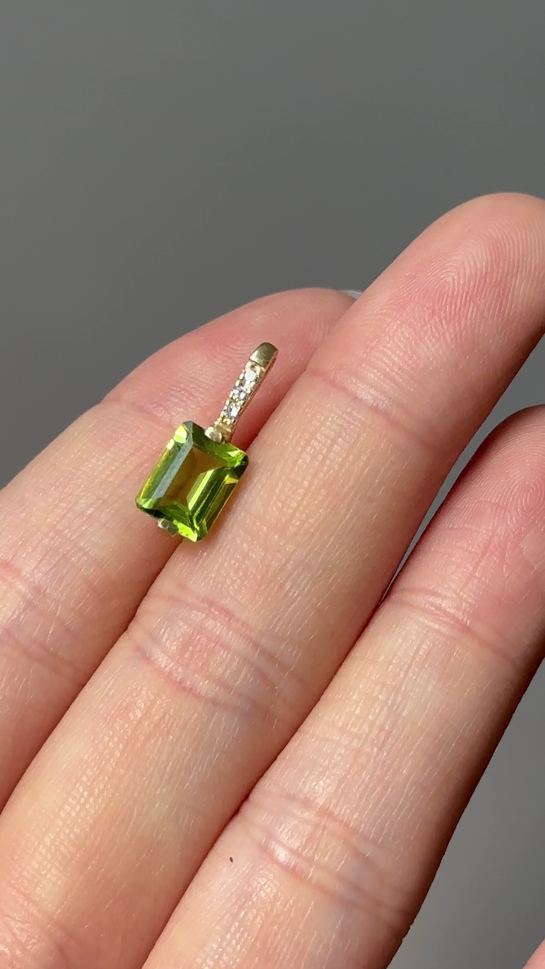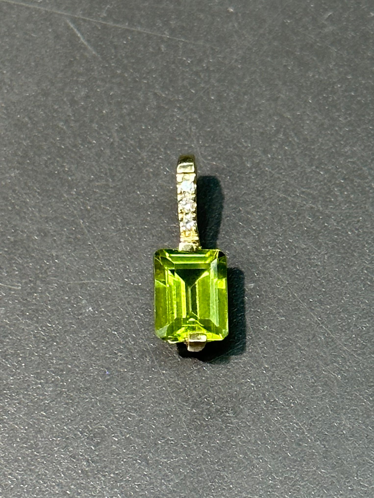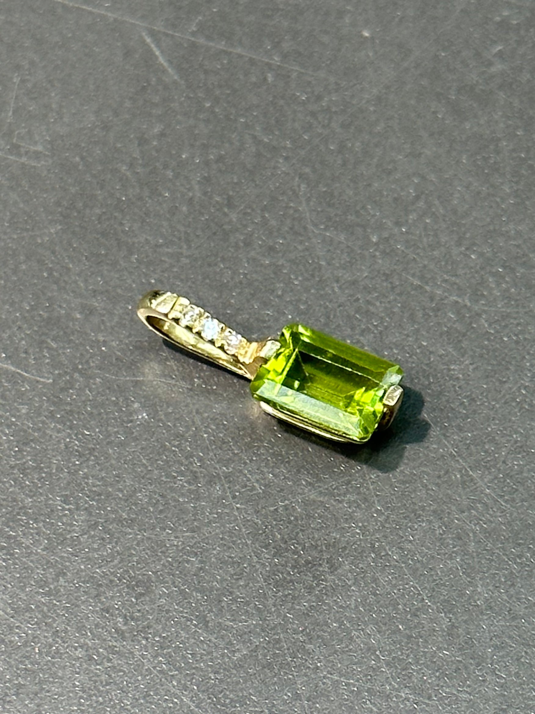 Un pendentif scintillant intemporel, centré sur un péridot vert lime vibrant, rehaussé de diamants blancs scintillants.