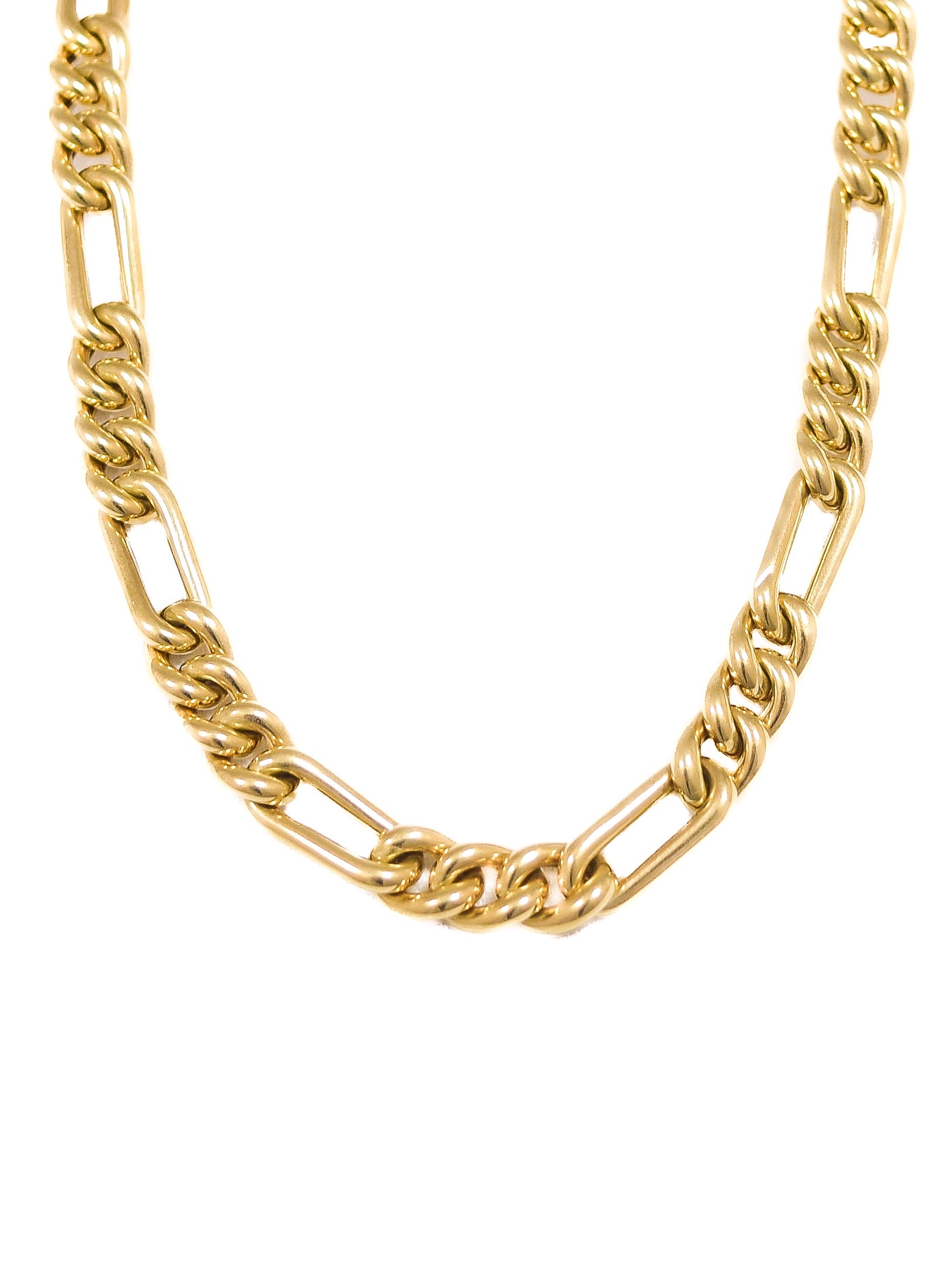 A buttery 14K gold puffy semi-solid Figaro chain, crafted with alternating elongated and rounded links and a softly puffed profile. Effortlessly classic, it’s perfect for everyday wear and ideal for stacking with your favorite chains.