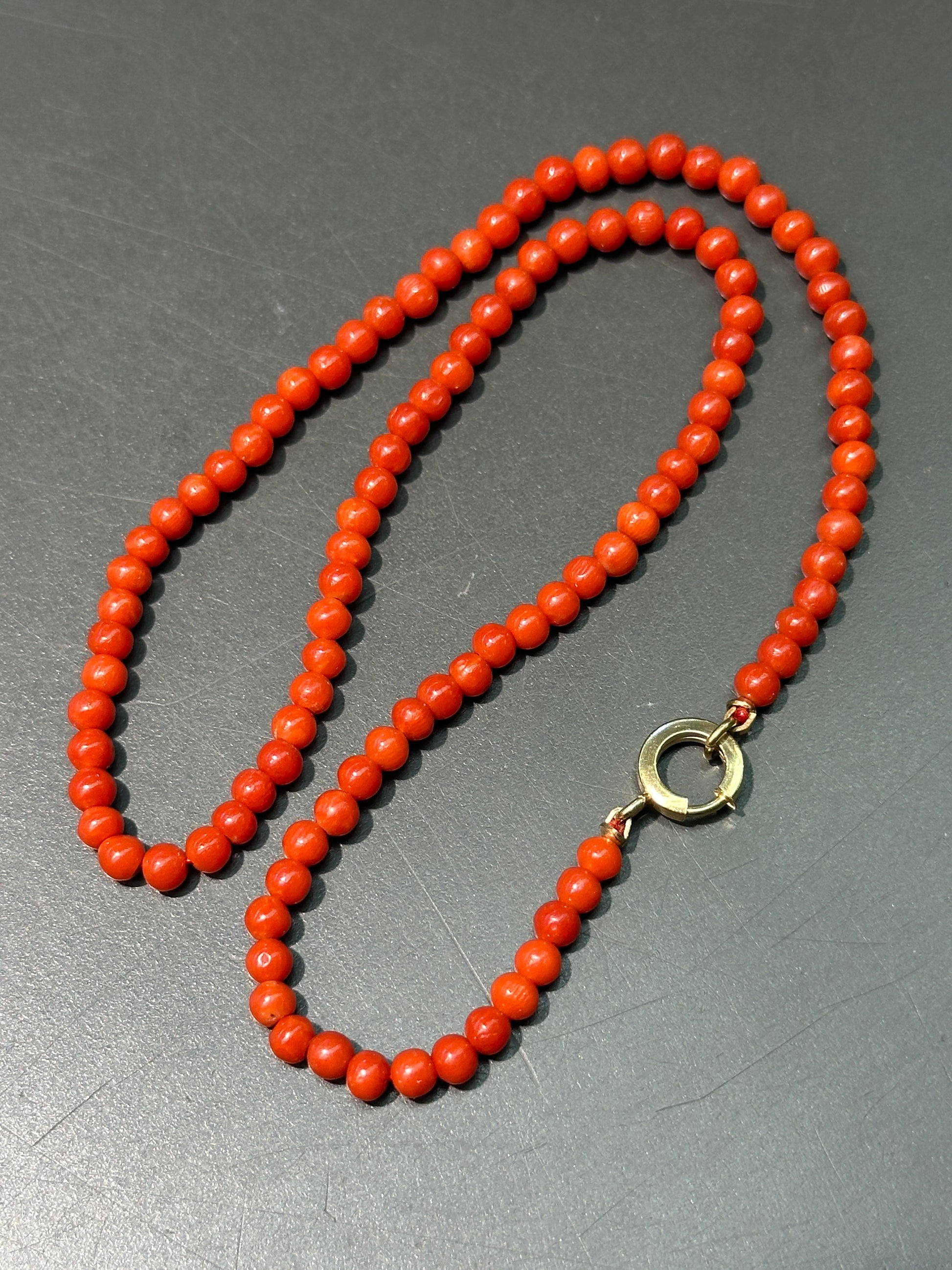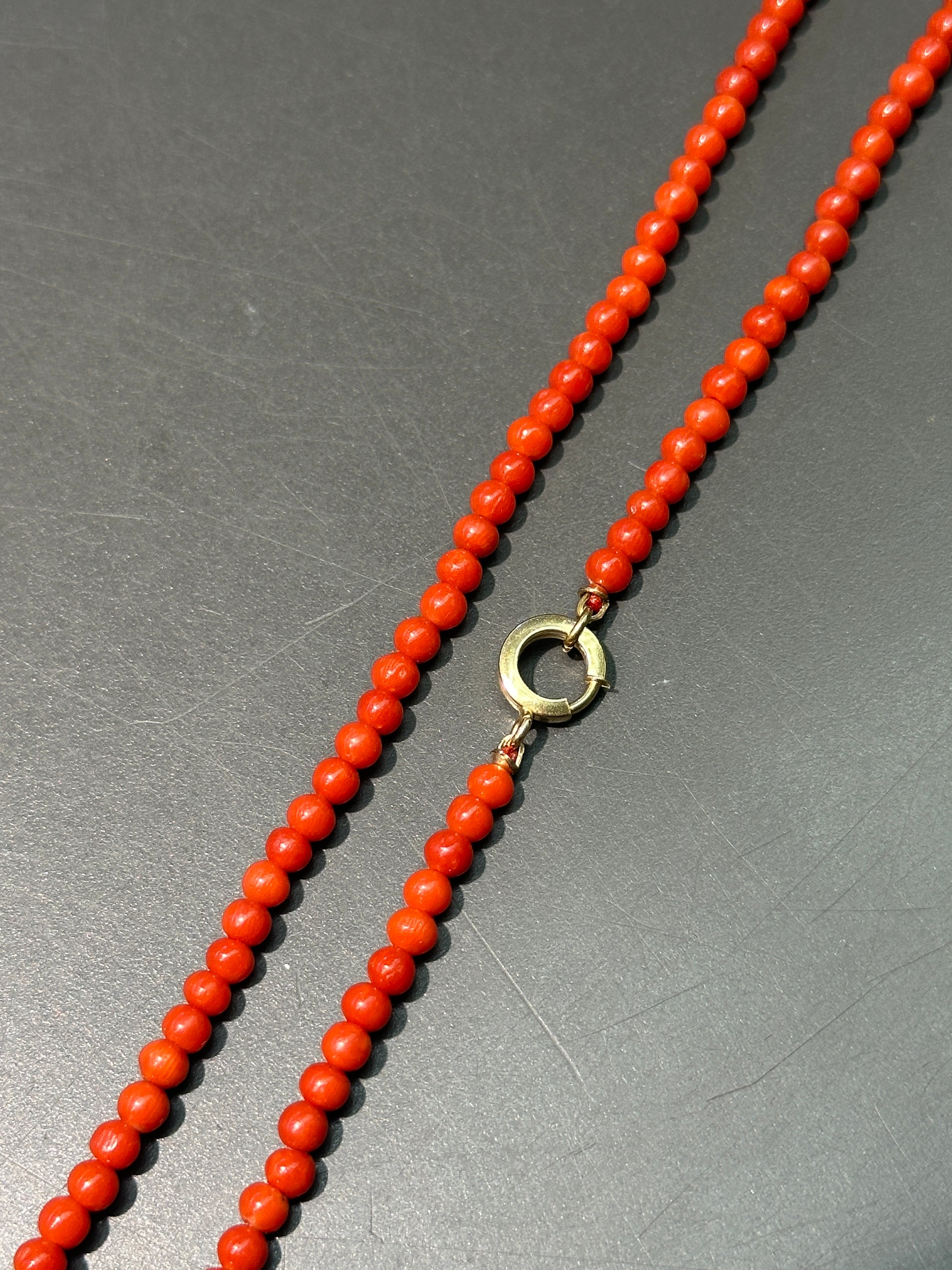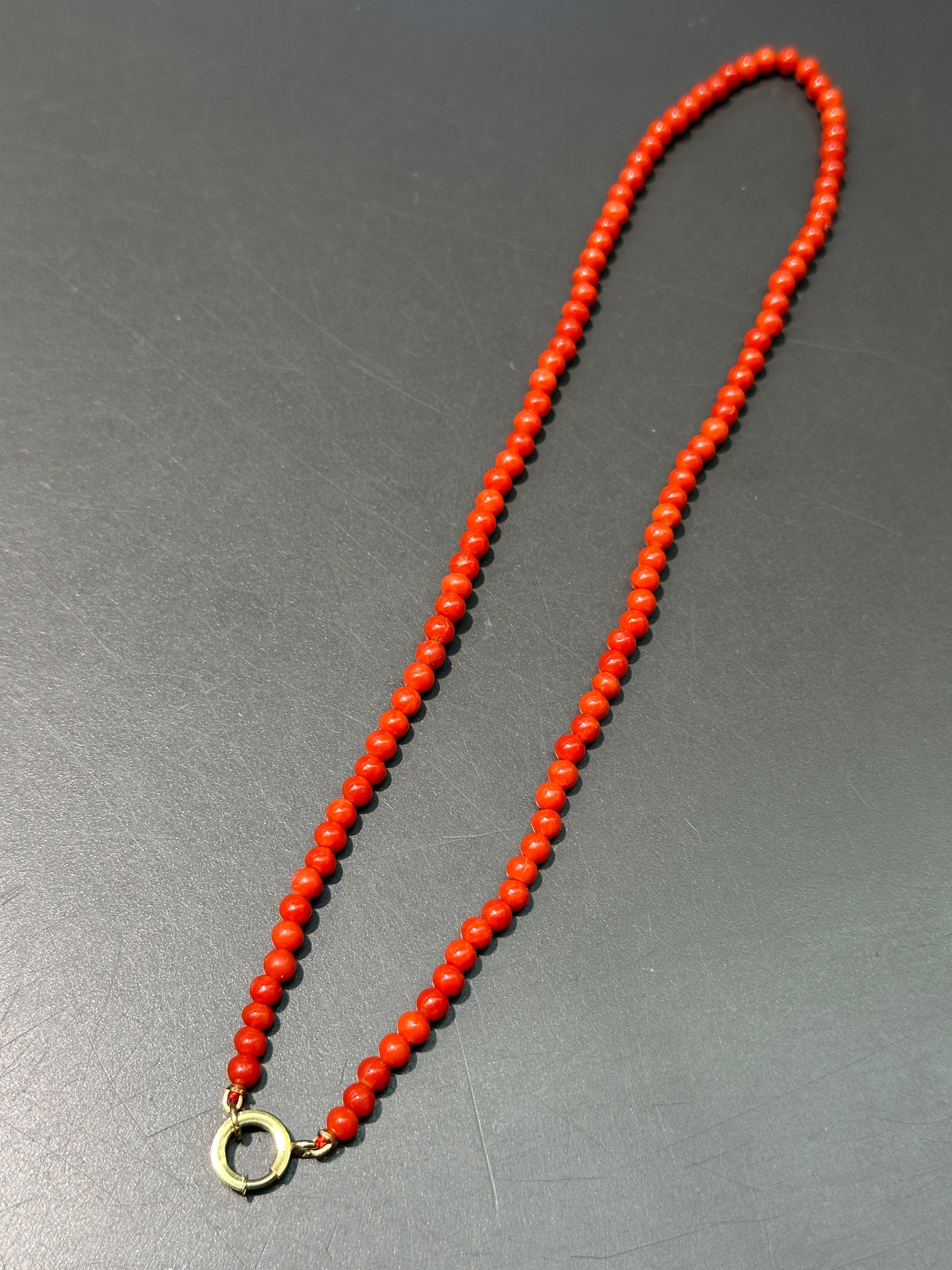 14K Gold Sardine Coral Bead Necklace 15.0 inch