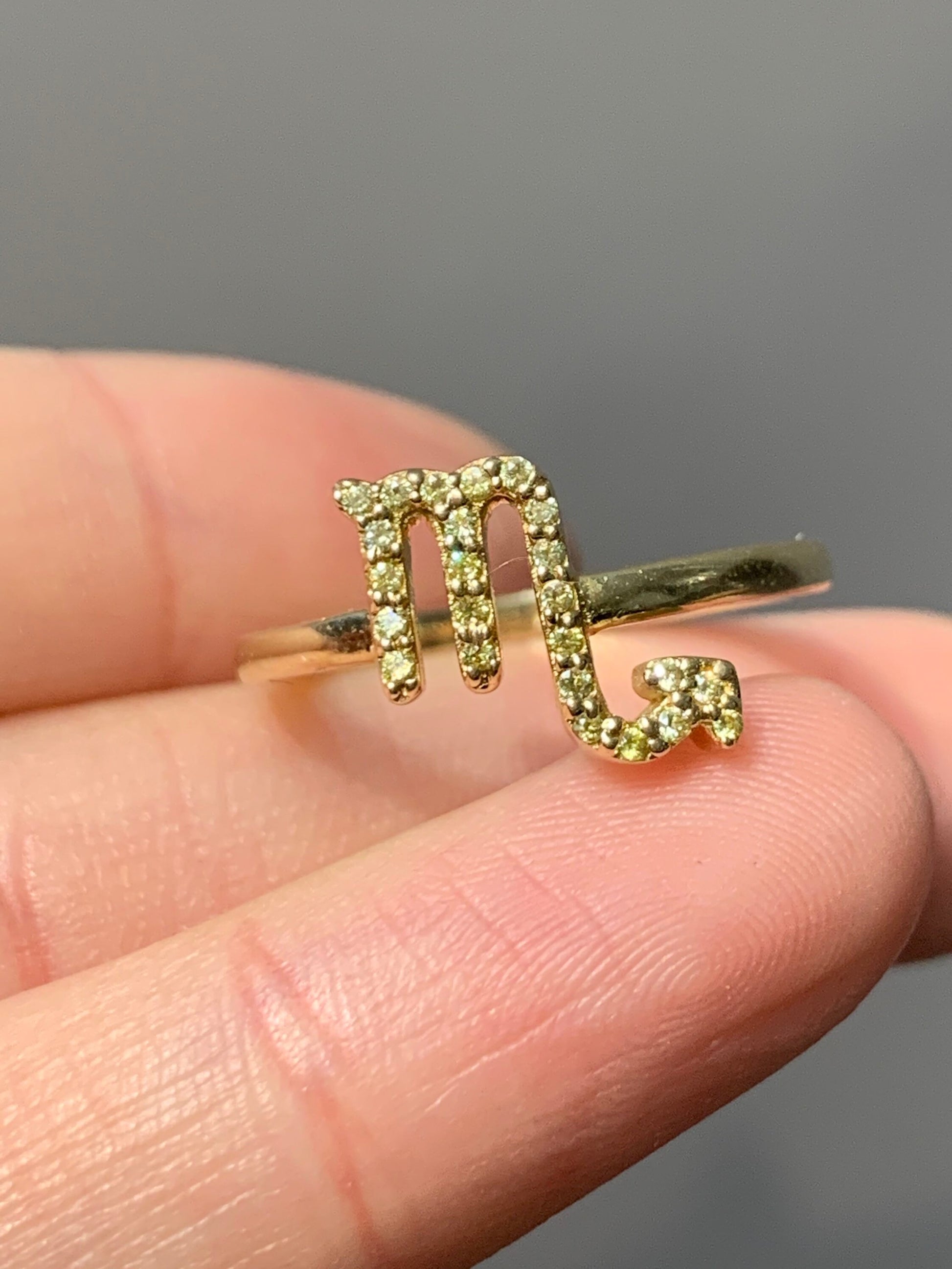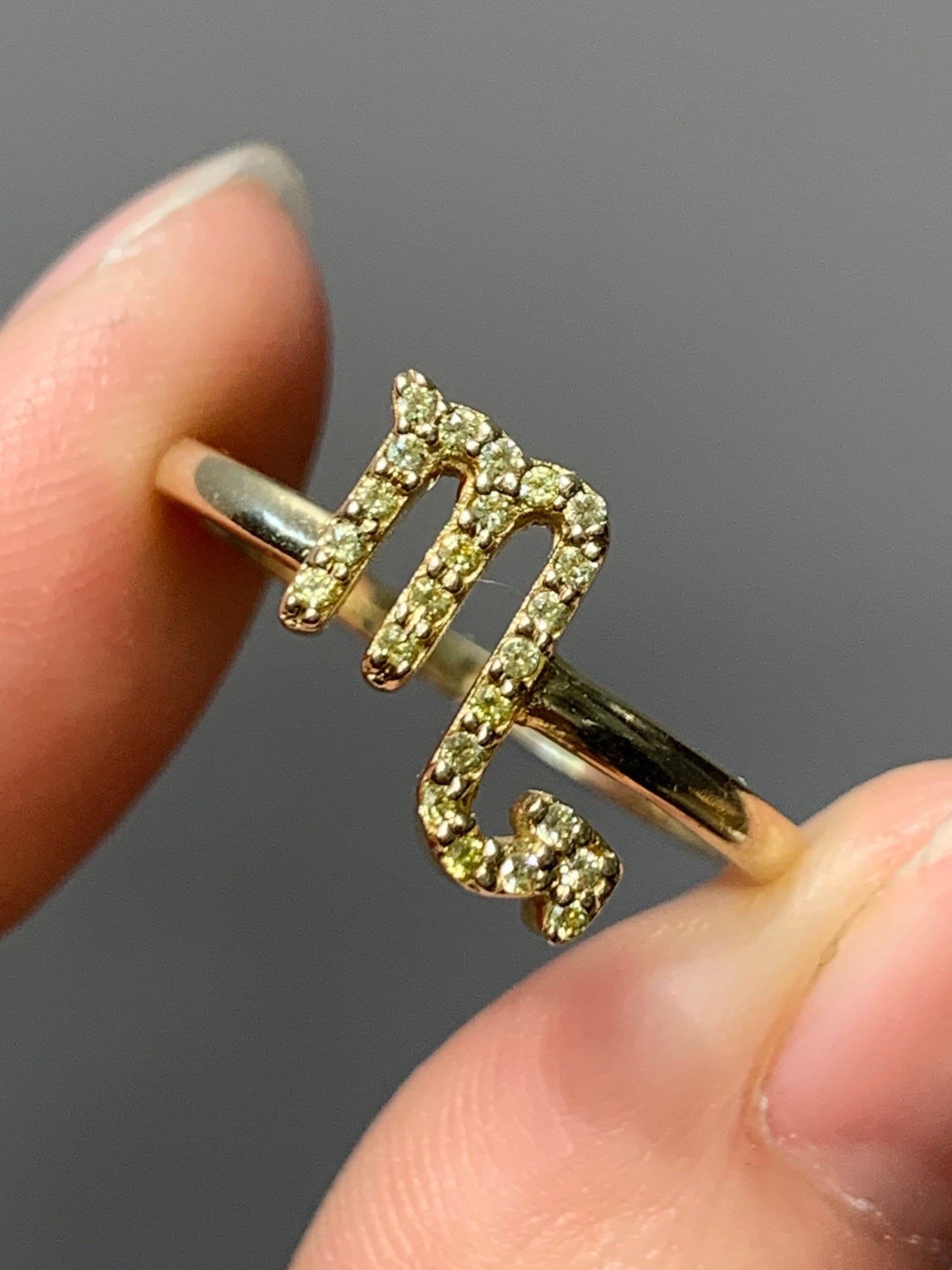 Bague horoscope Scorpion en or 14 carats et diamant jaune