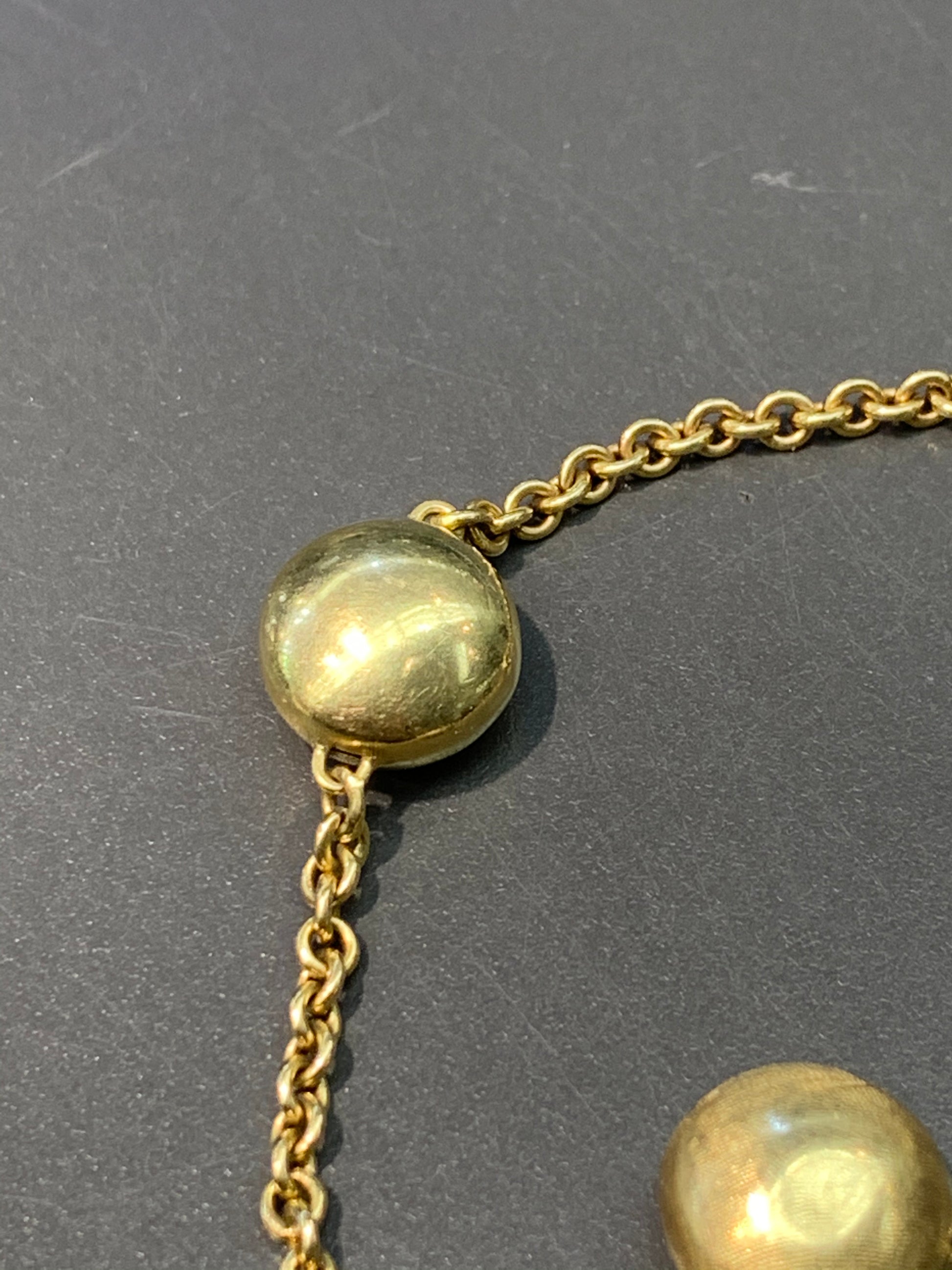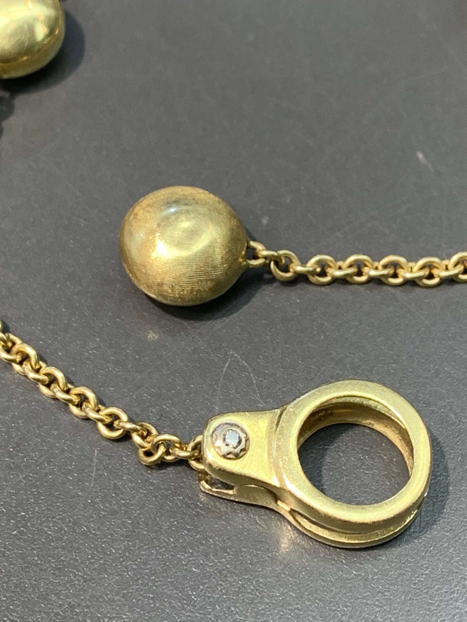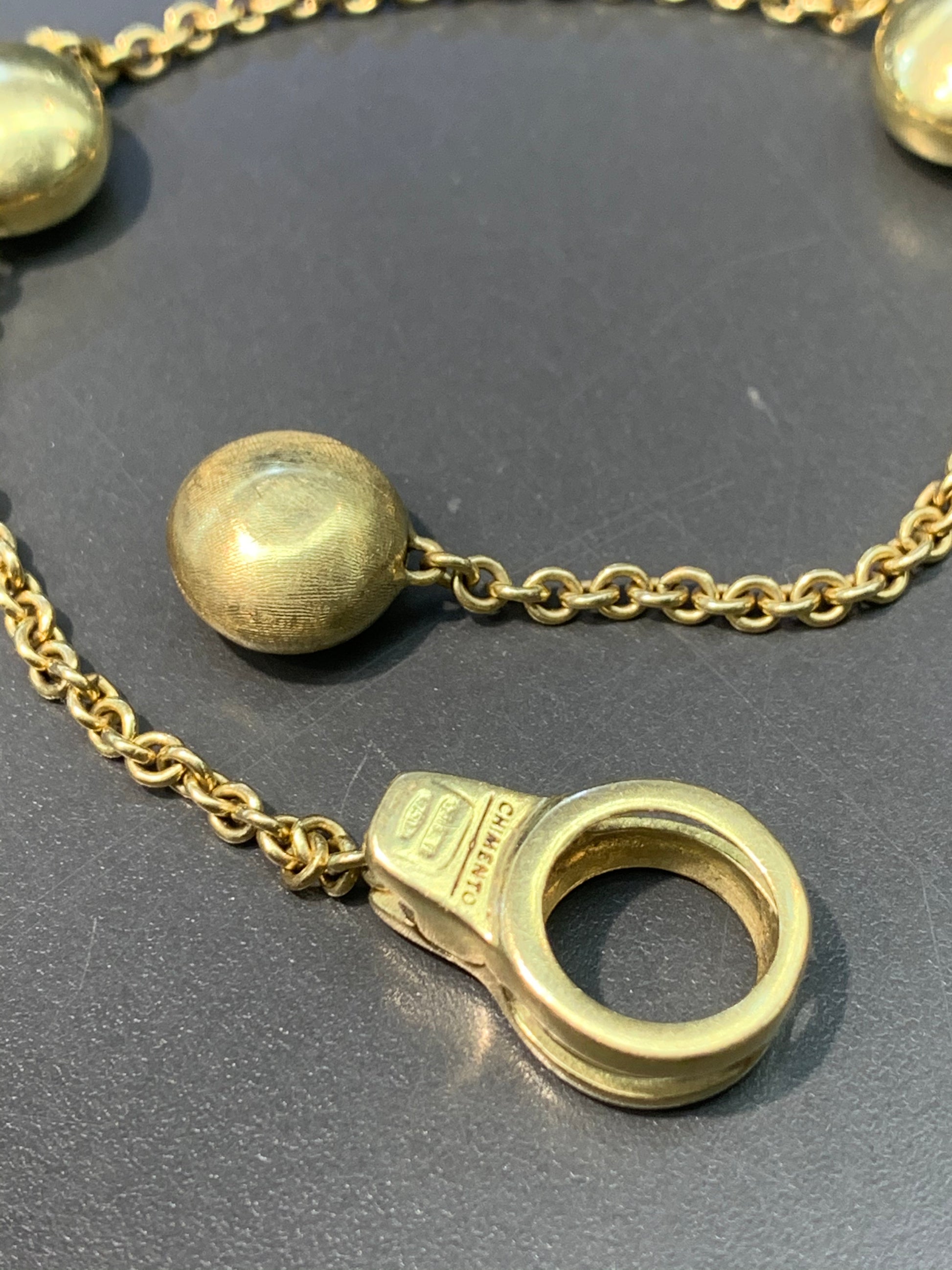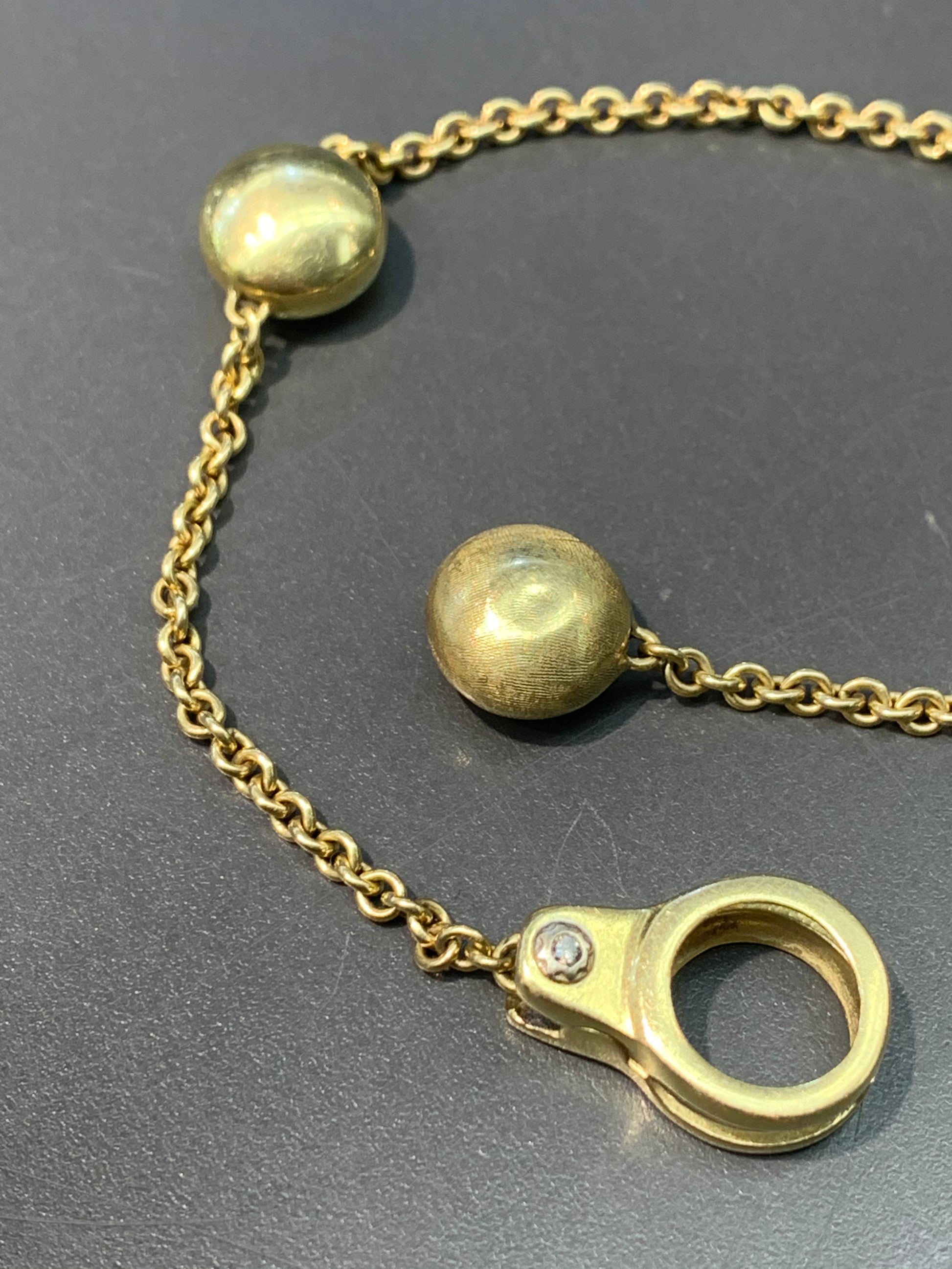 Signé Chimento, ce bracelet stationné en or beurre est confectionné en or beurre 18 carats, stationné avec des boutons en or massif entre les deux. Le fermoir est orné d'une griffe incrustée d'un diamant cerclé.