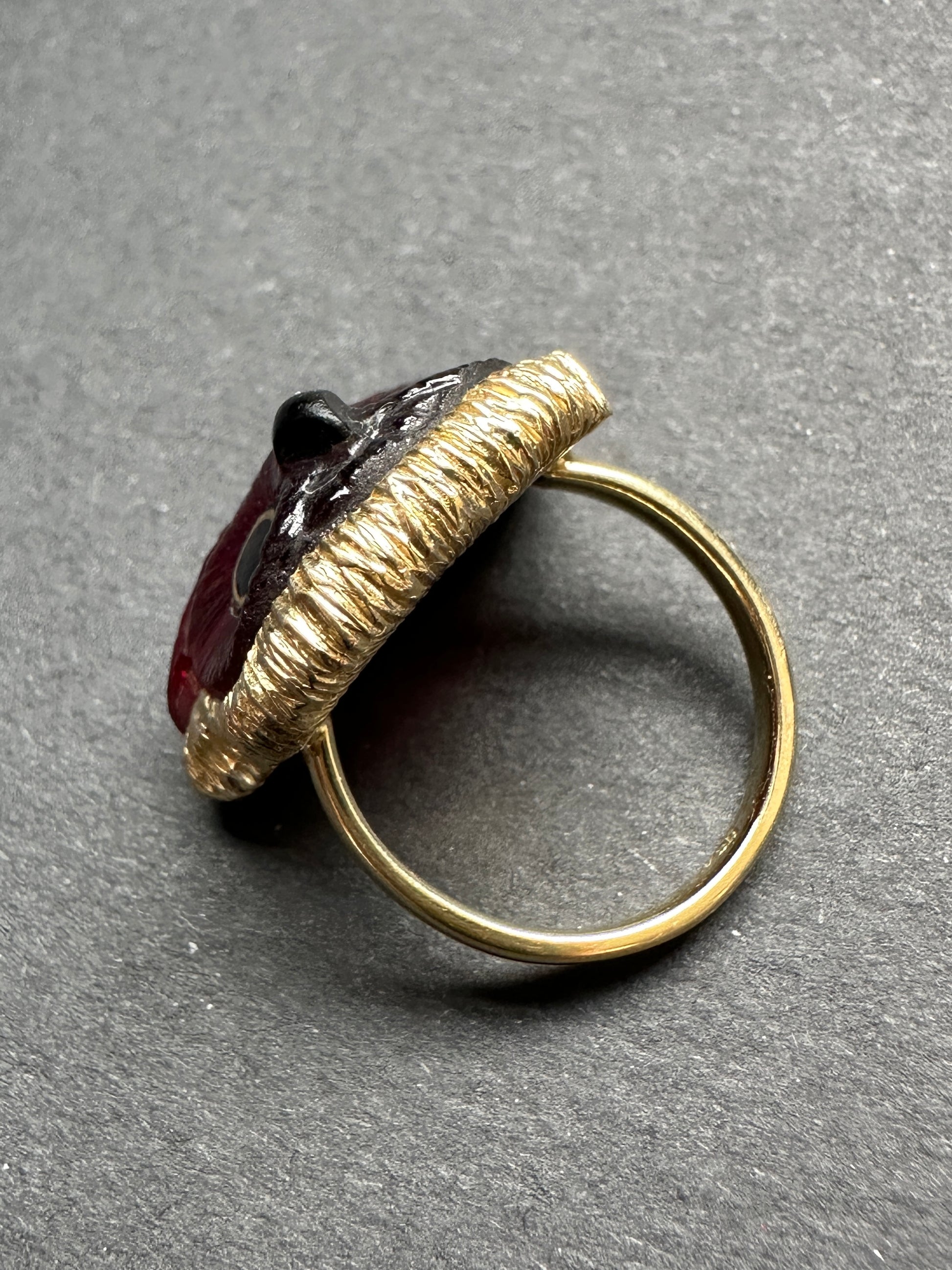 Diane Griswold 18K Yellow Gold Garnet Sculpted Owl Ring