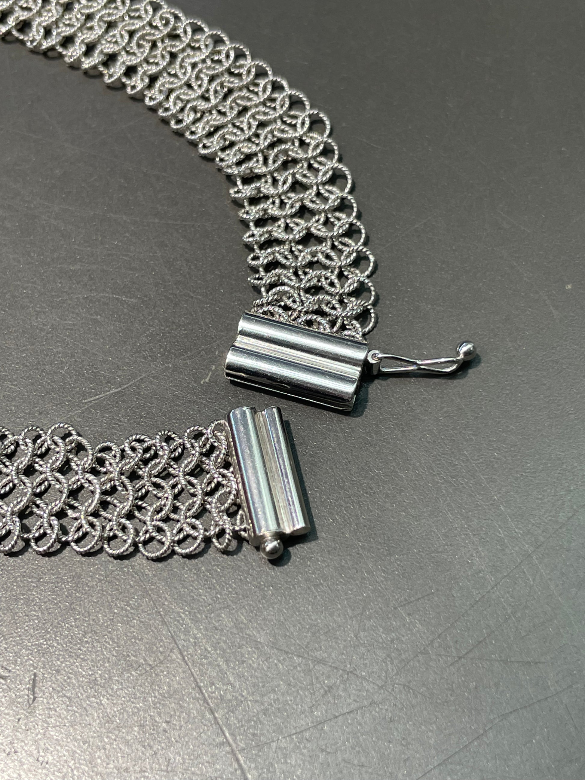 18K White Gold 0.18 CTW Diamond Mesh Collar Statement Necklace