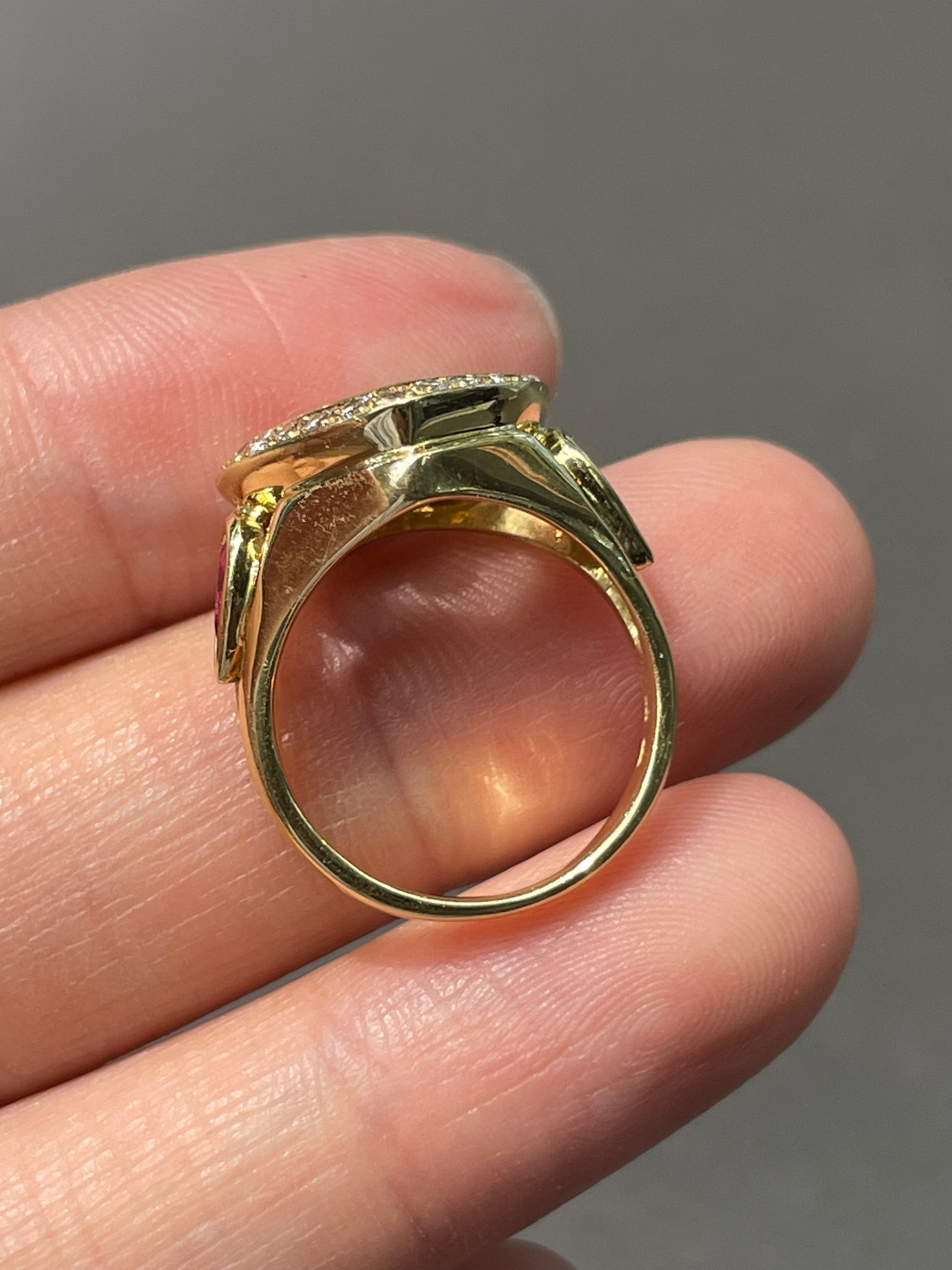 18K Yellow Gold Diamond Sapphire Ruby Floating Heart Ring