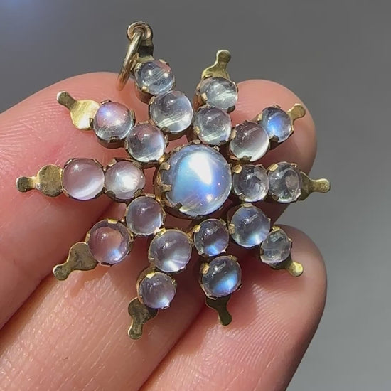 Antique 14K Gold Ceylon Moonstone Starburst Pendant