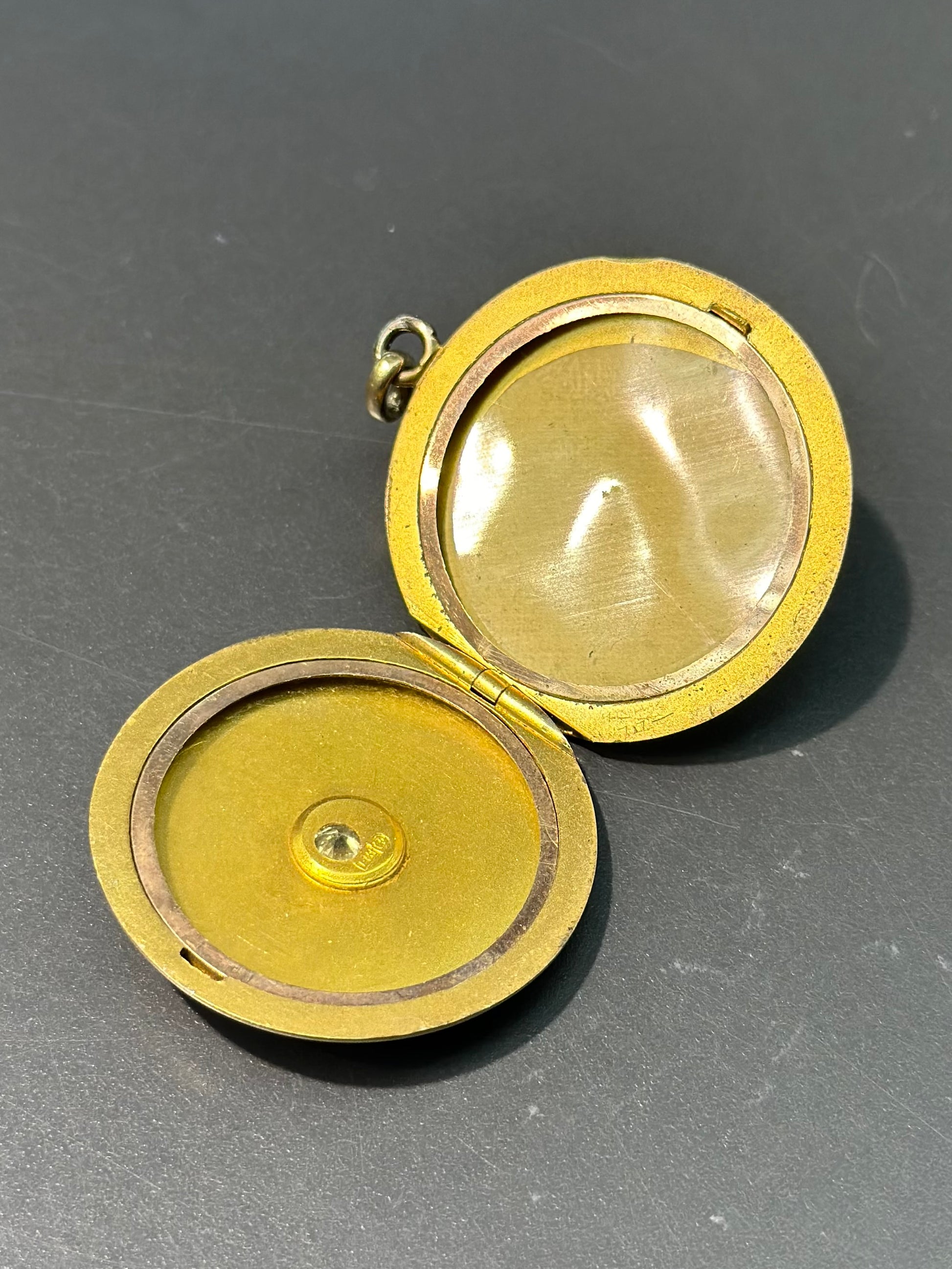 [ON RESERVE] Antique 14K Gold 0.38 CTW Diamond Starburst Circle Locket