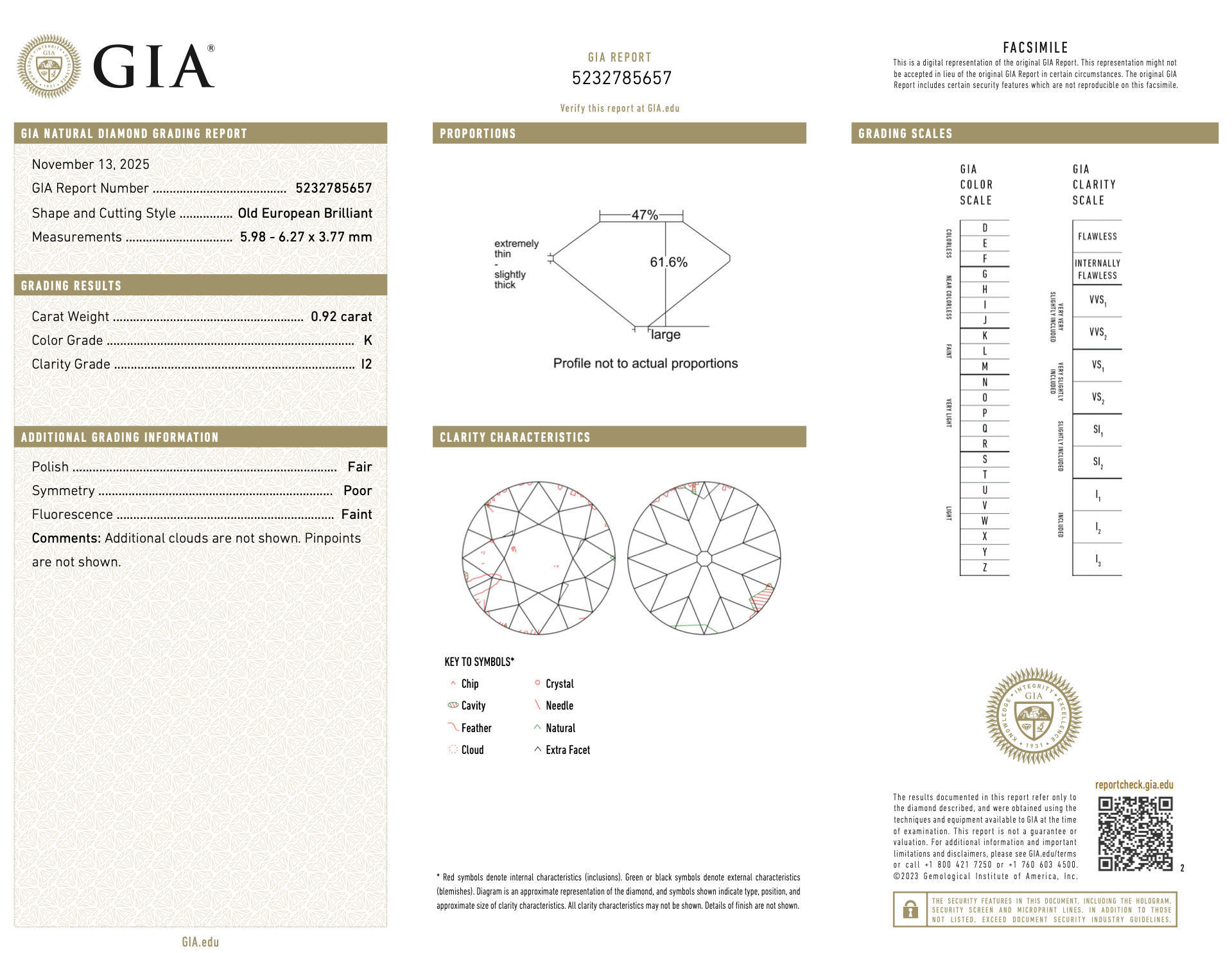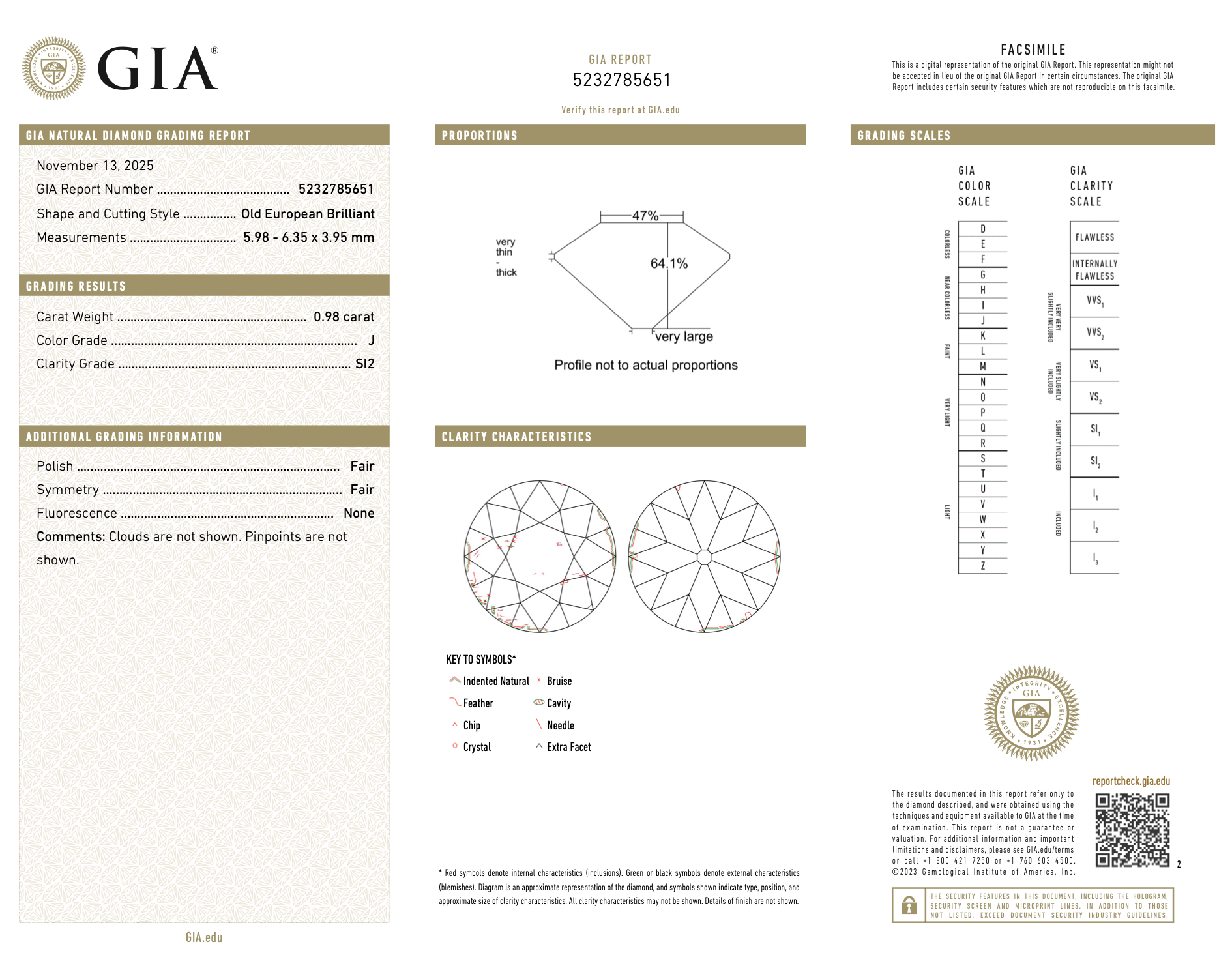 - Carat Weight of Side Diamonds: 0.91 carats (VS clarity, J-K color), 0.98 carats (SI clarity, J-K color) (6.0 mm by 6.0 mm)