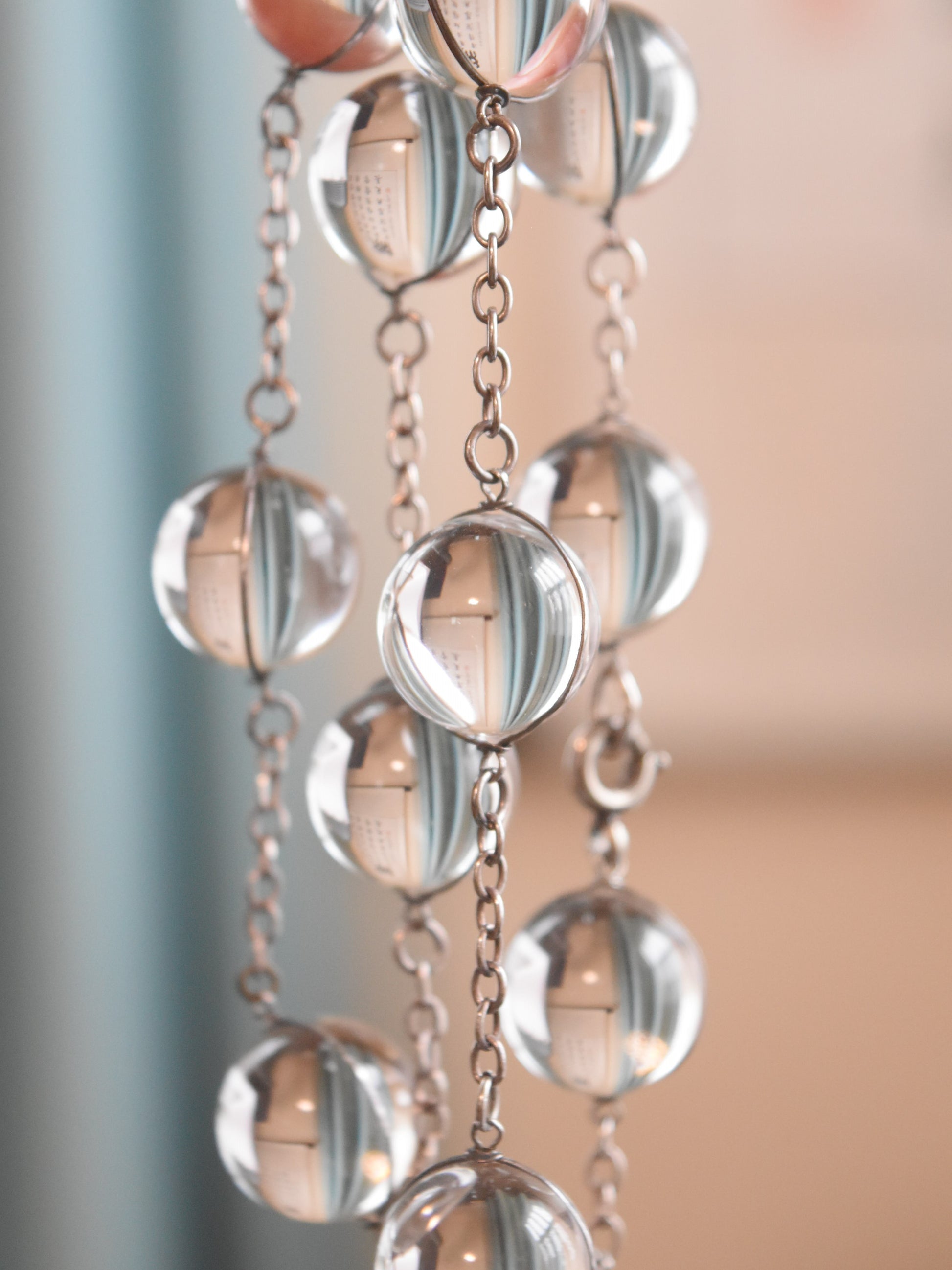 12 orbes lumineux magiques placés sur une chaîne en argent sterling mesurant 16 pouces autour du cou. Chaque orbe mesure 14,0 mm.