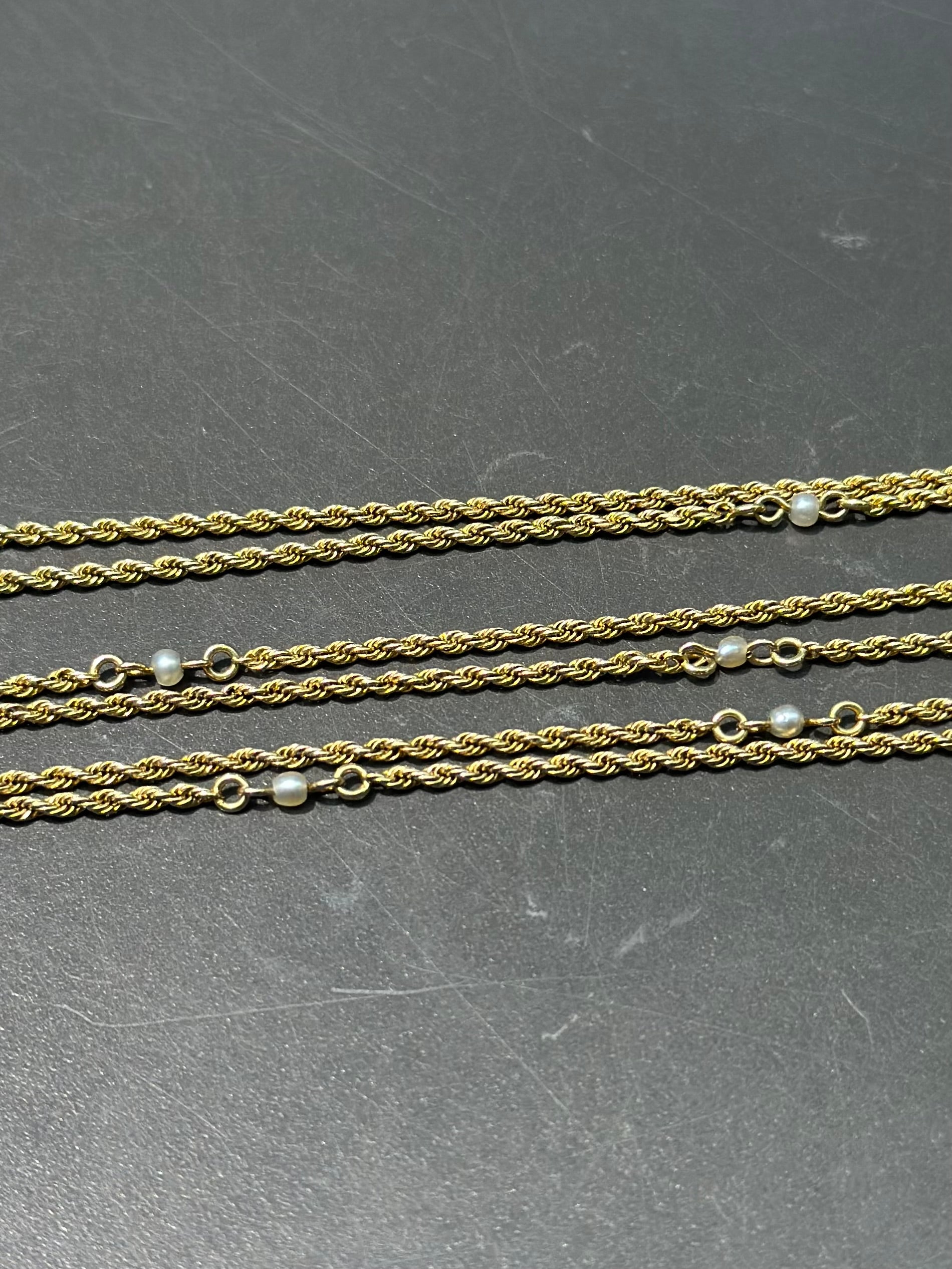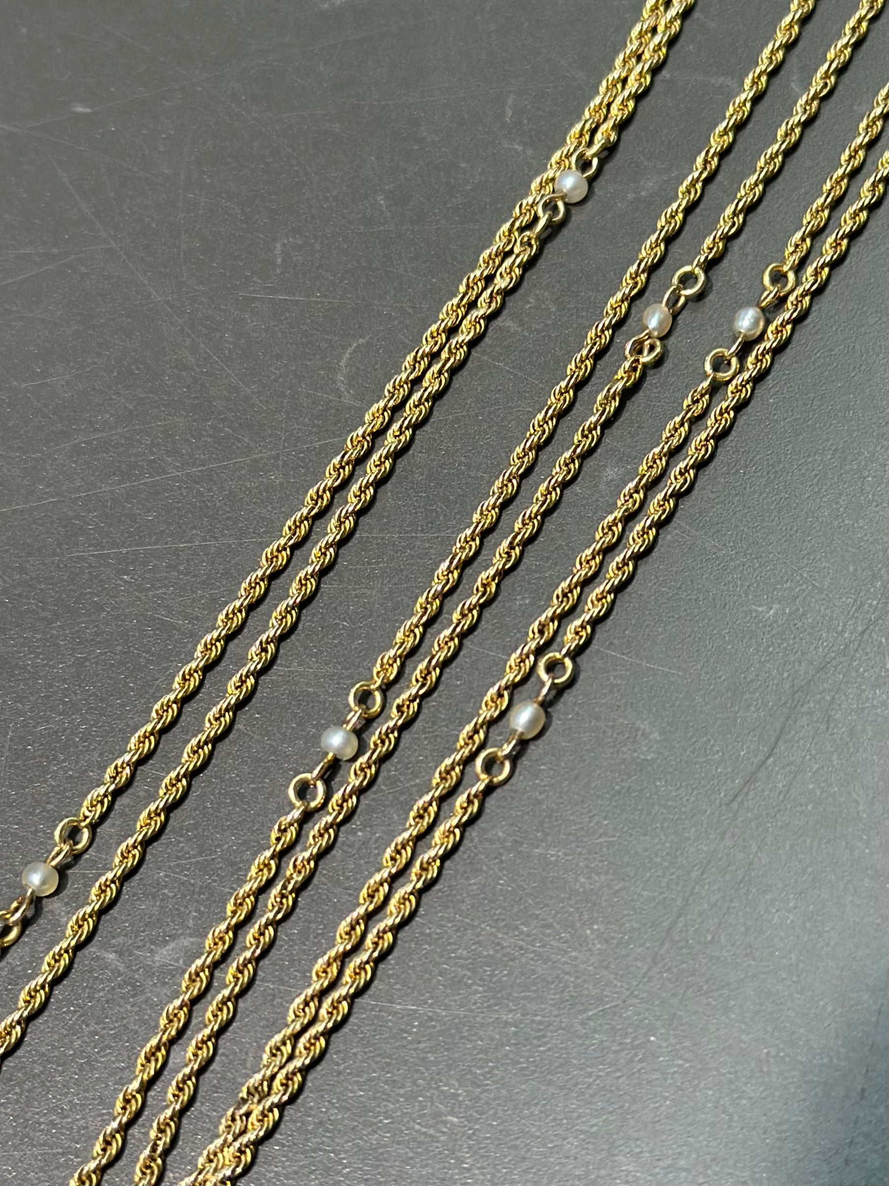 Art Nouveau 14K Gold Seed Pearl Chain Necklace