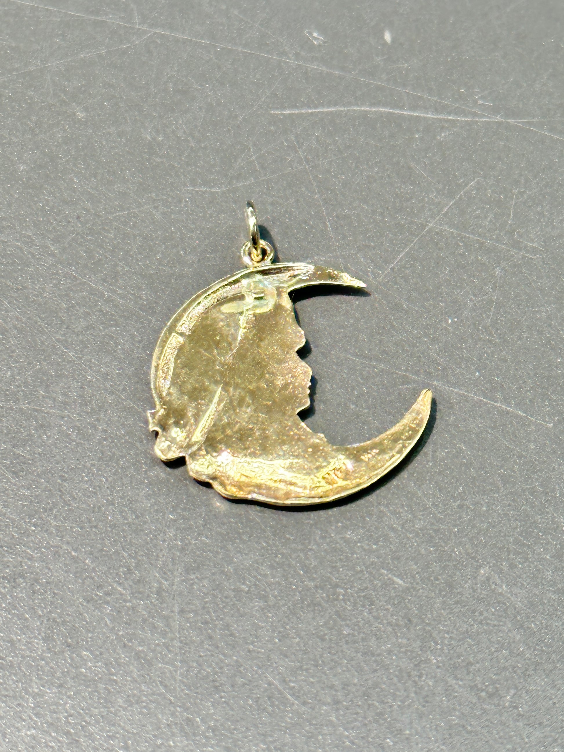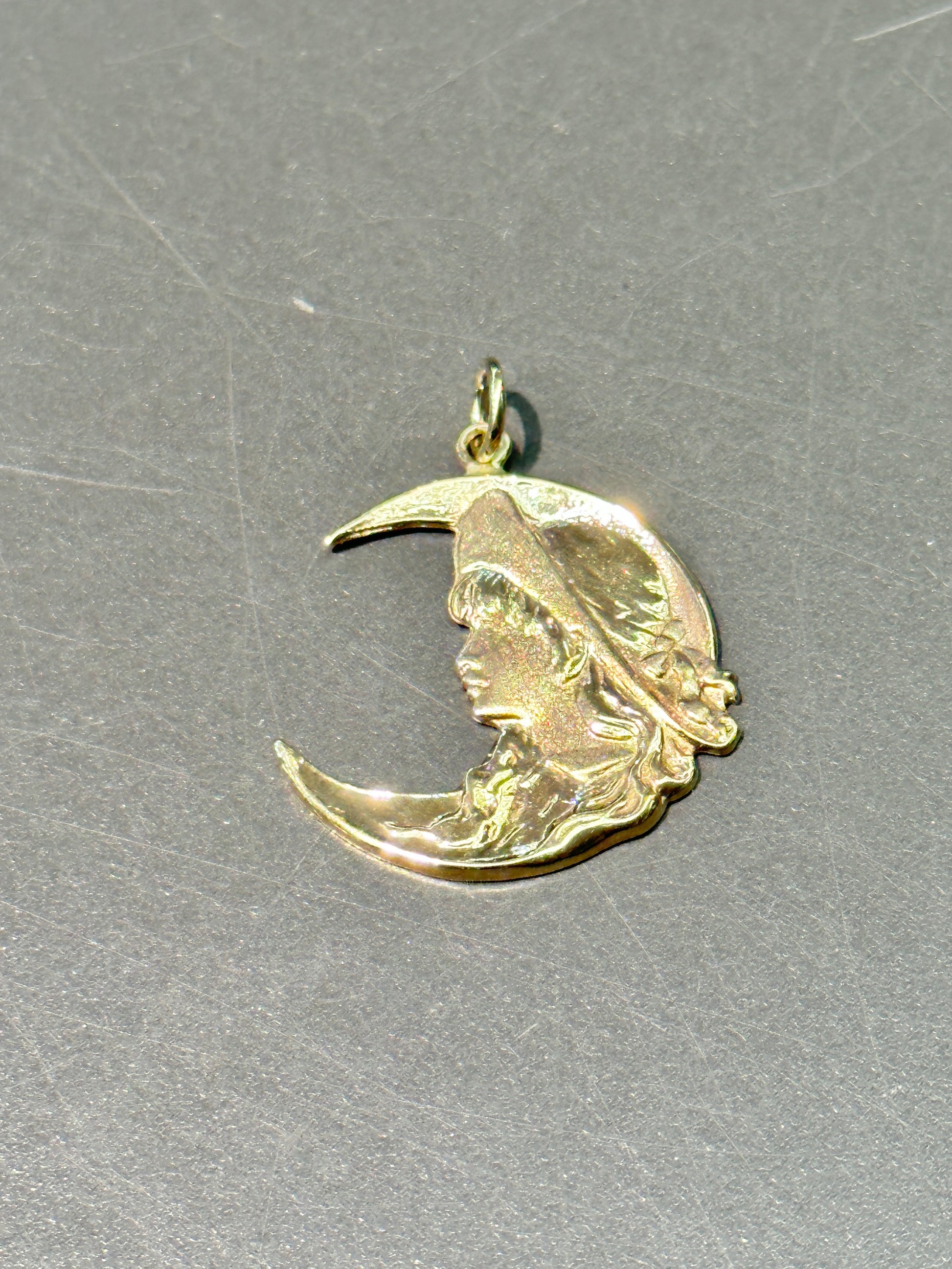 Pendentif femme et croissant Art Nouveau en or 14 carats