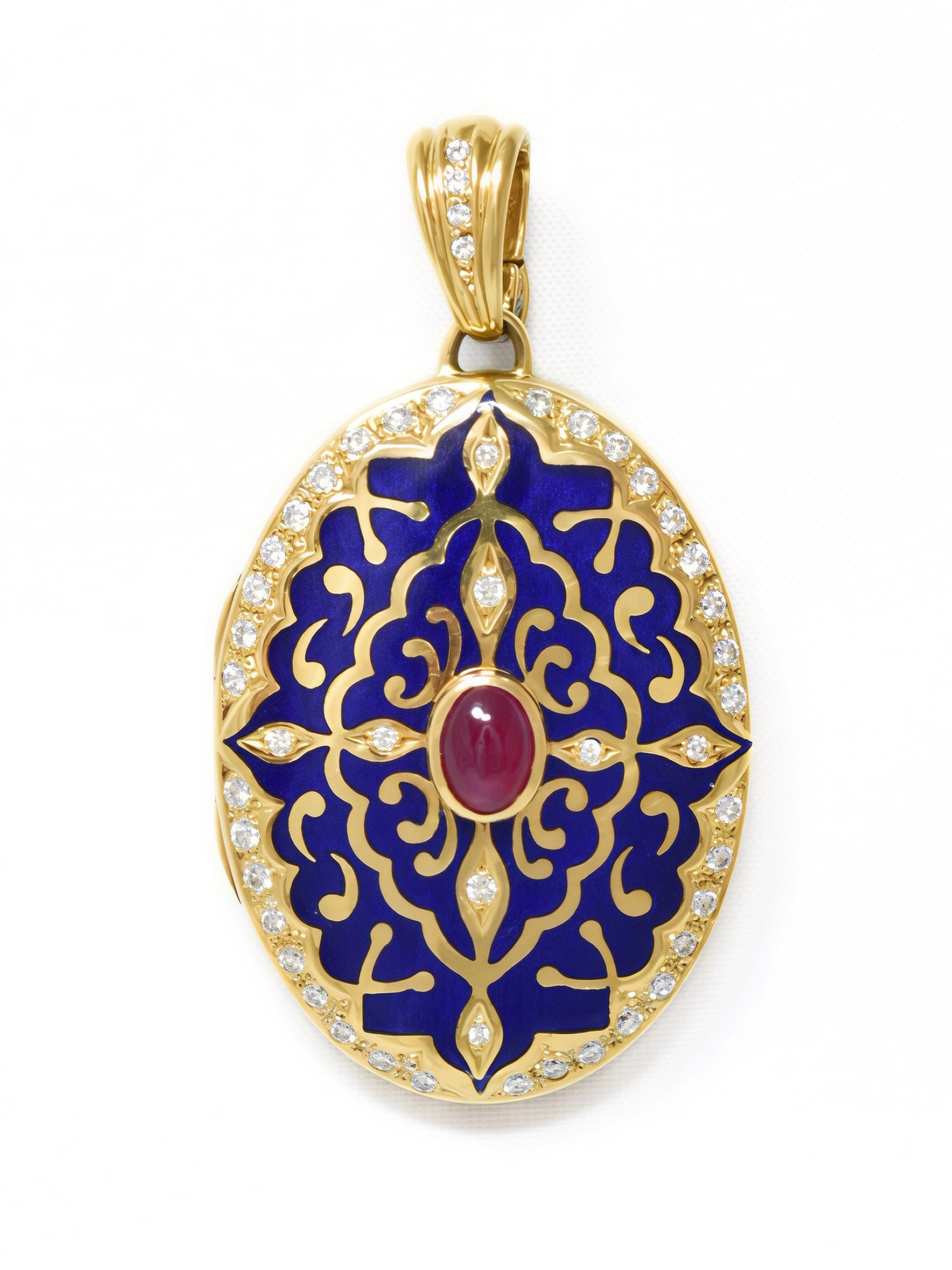 Fabergé 18K Yellow Gold Ruby Diamond Enamel Locket Pendant