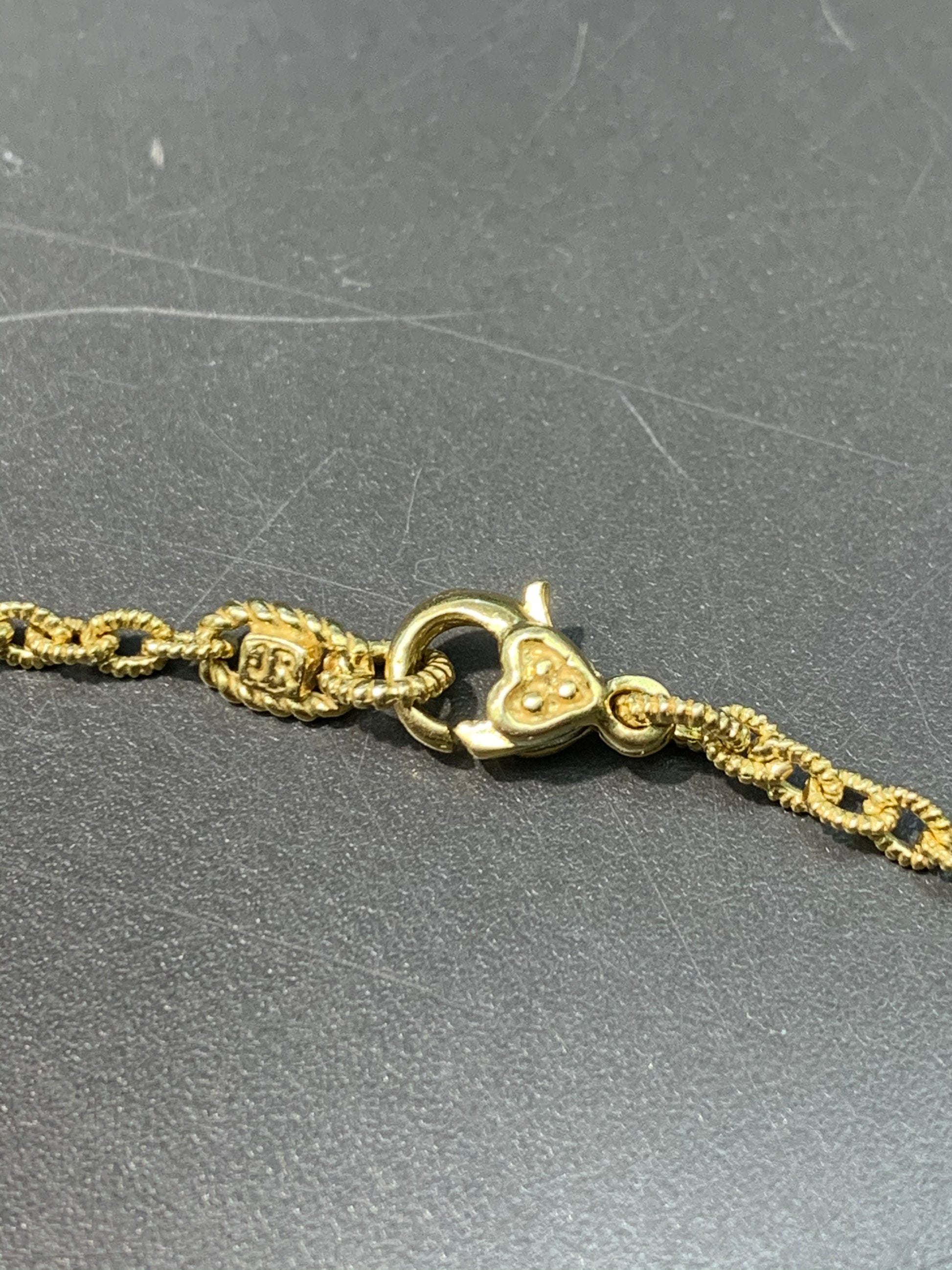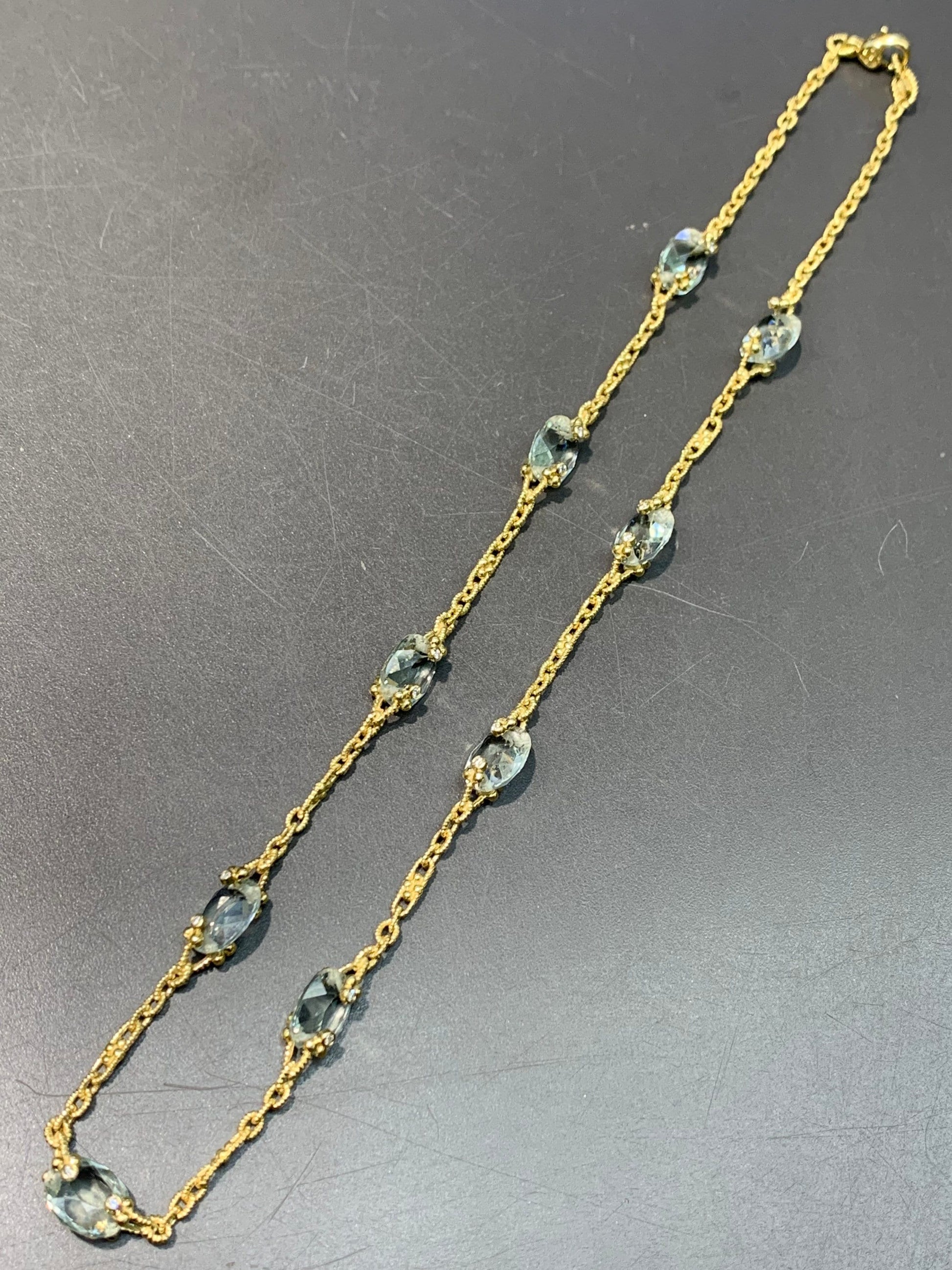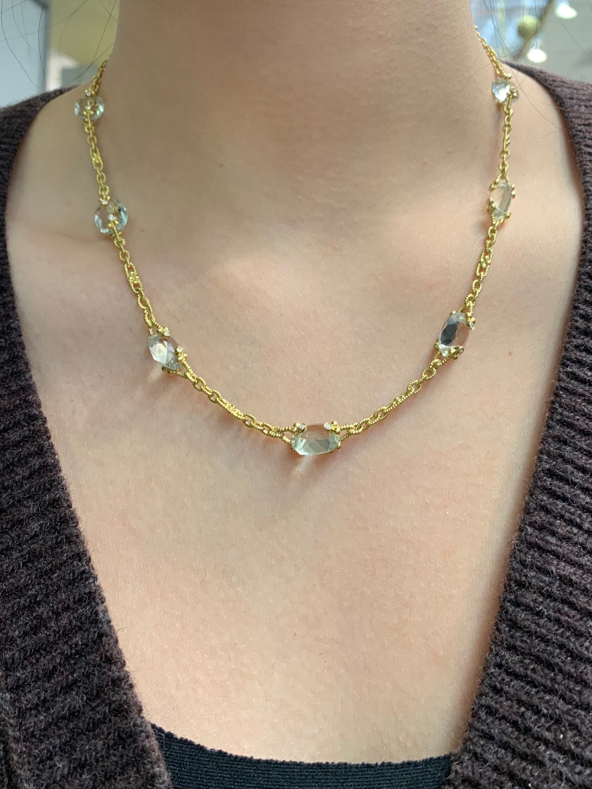 Signé Judith Ripka, un collier brillant stationné 18 carats avec des cascades de priolite facettée, entouré de diamants blancs scintillants des deux côtés mesurant environ 0,40 carats. Mesure 17,0 pouces autour du cou.