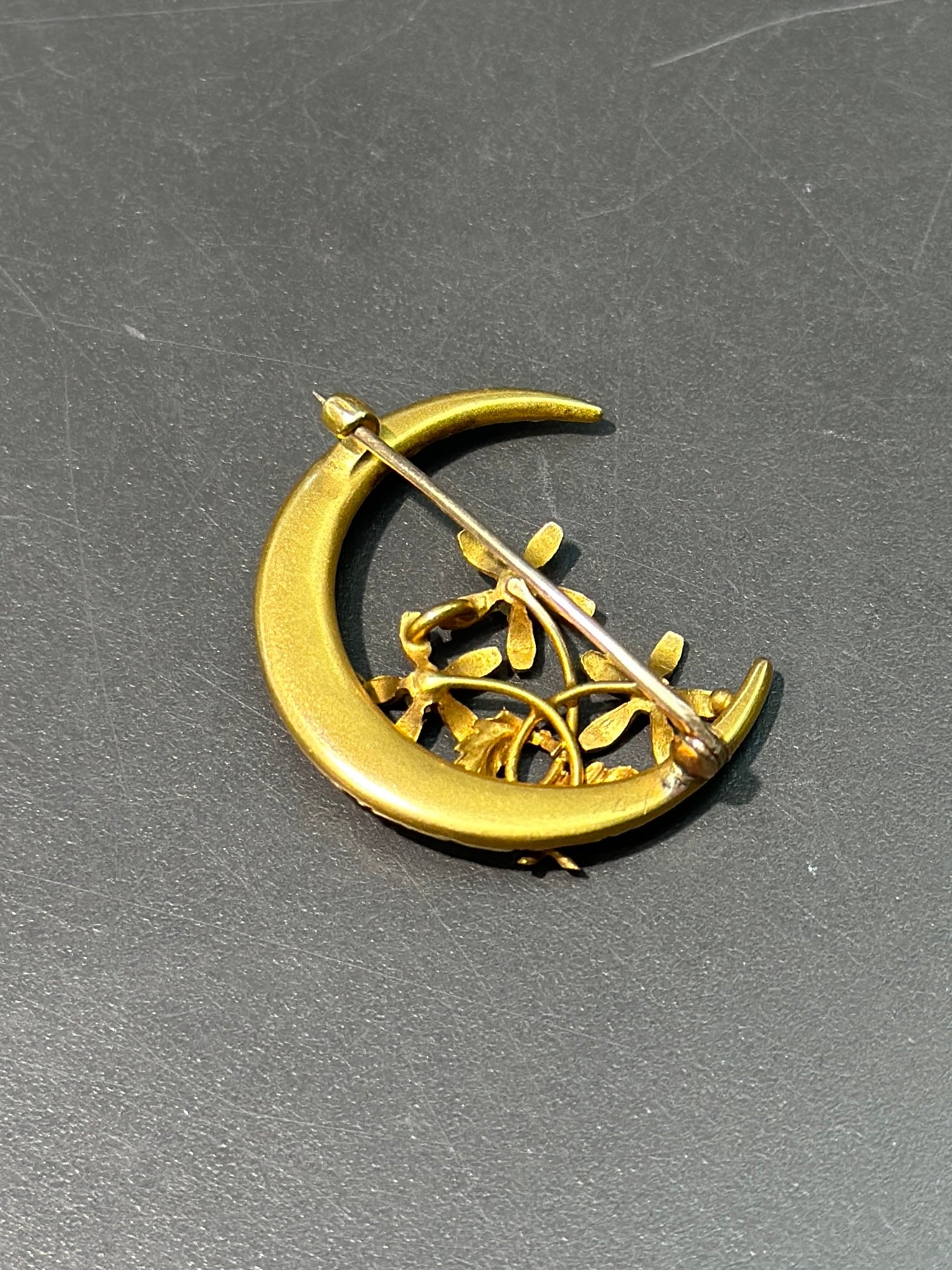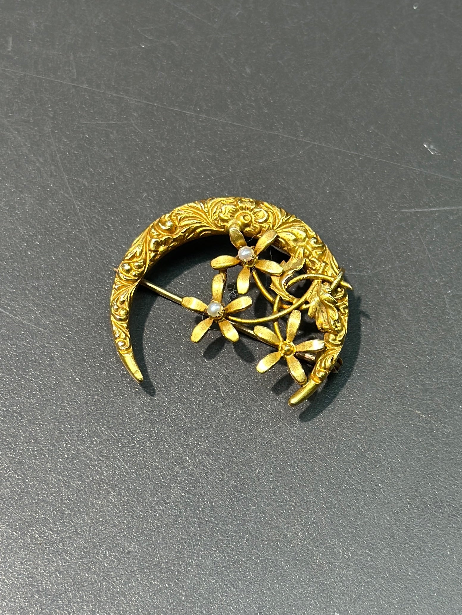 Broche florale en croissant à motif en or 10 carats Art Nouveau