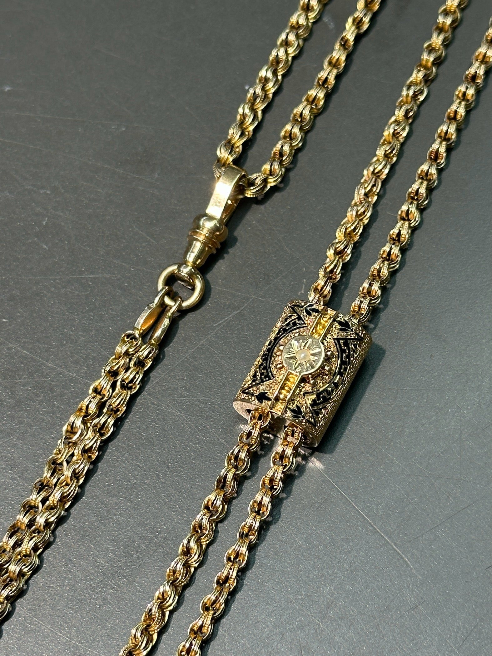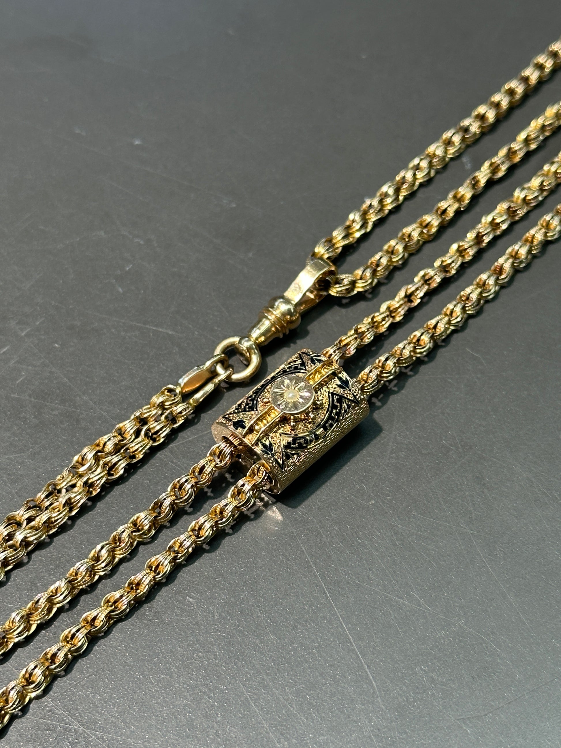 Victorian 14K Gold Enamel Longuard Watch Chain