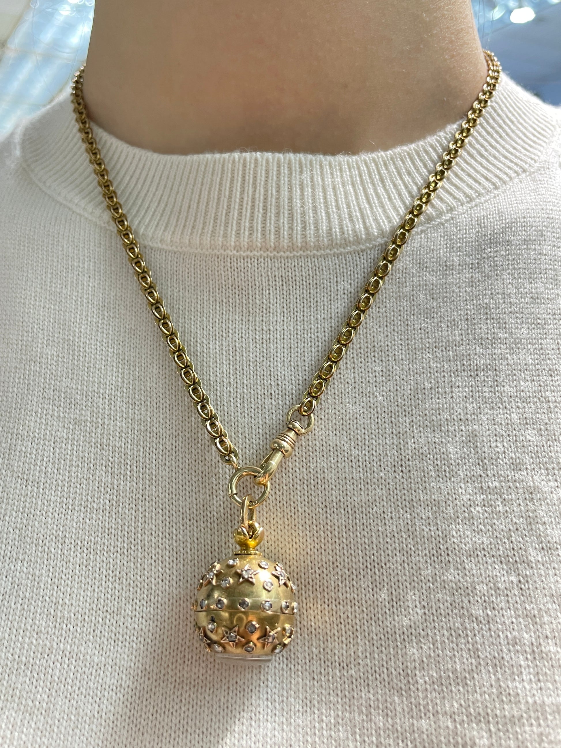 Antique French 18K Gold Diamond Celestial Orb Pendant Watch