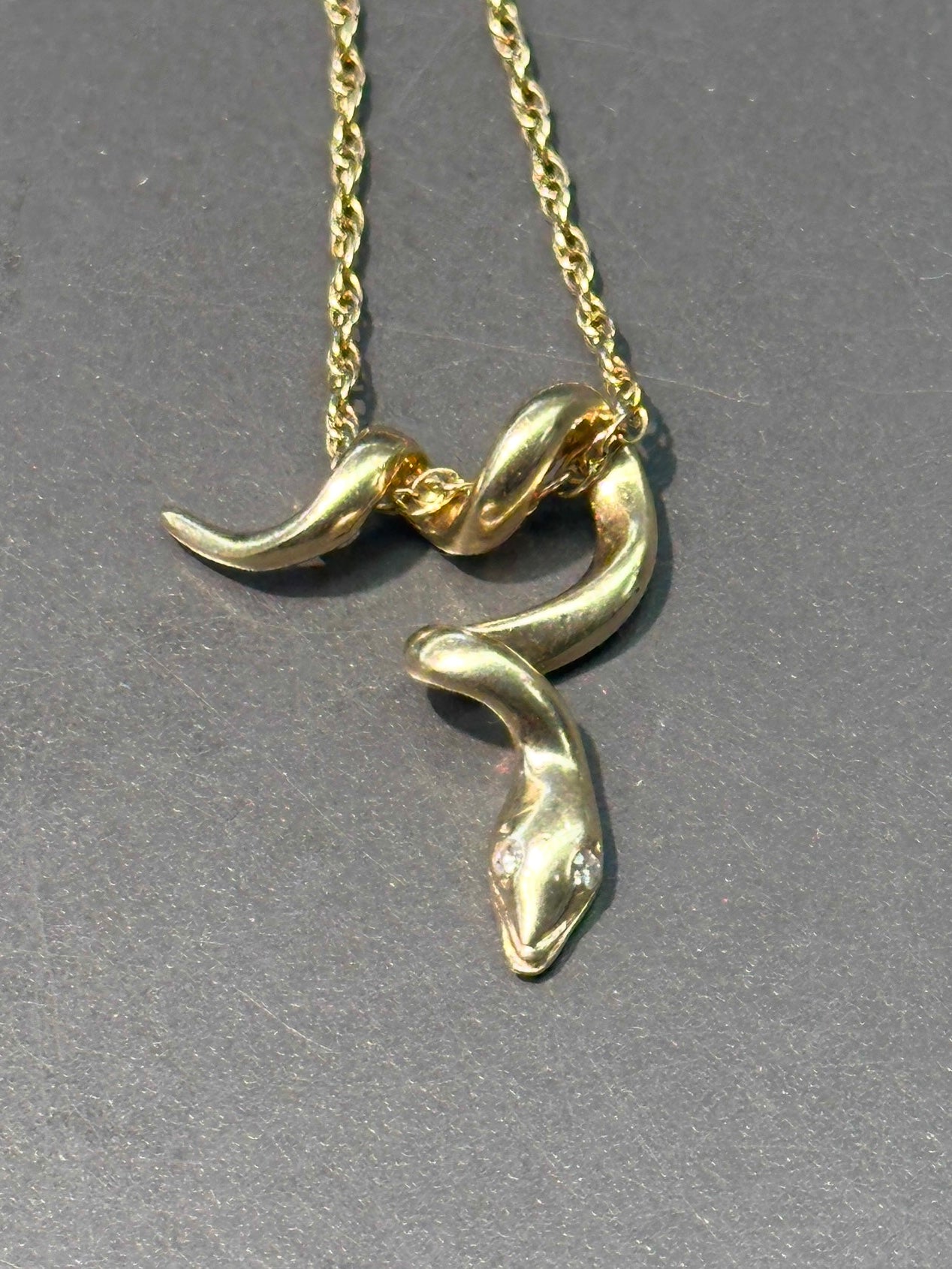 Vintage 14K Gold 0.02 CTW Diamond Snake Pendant
