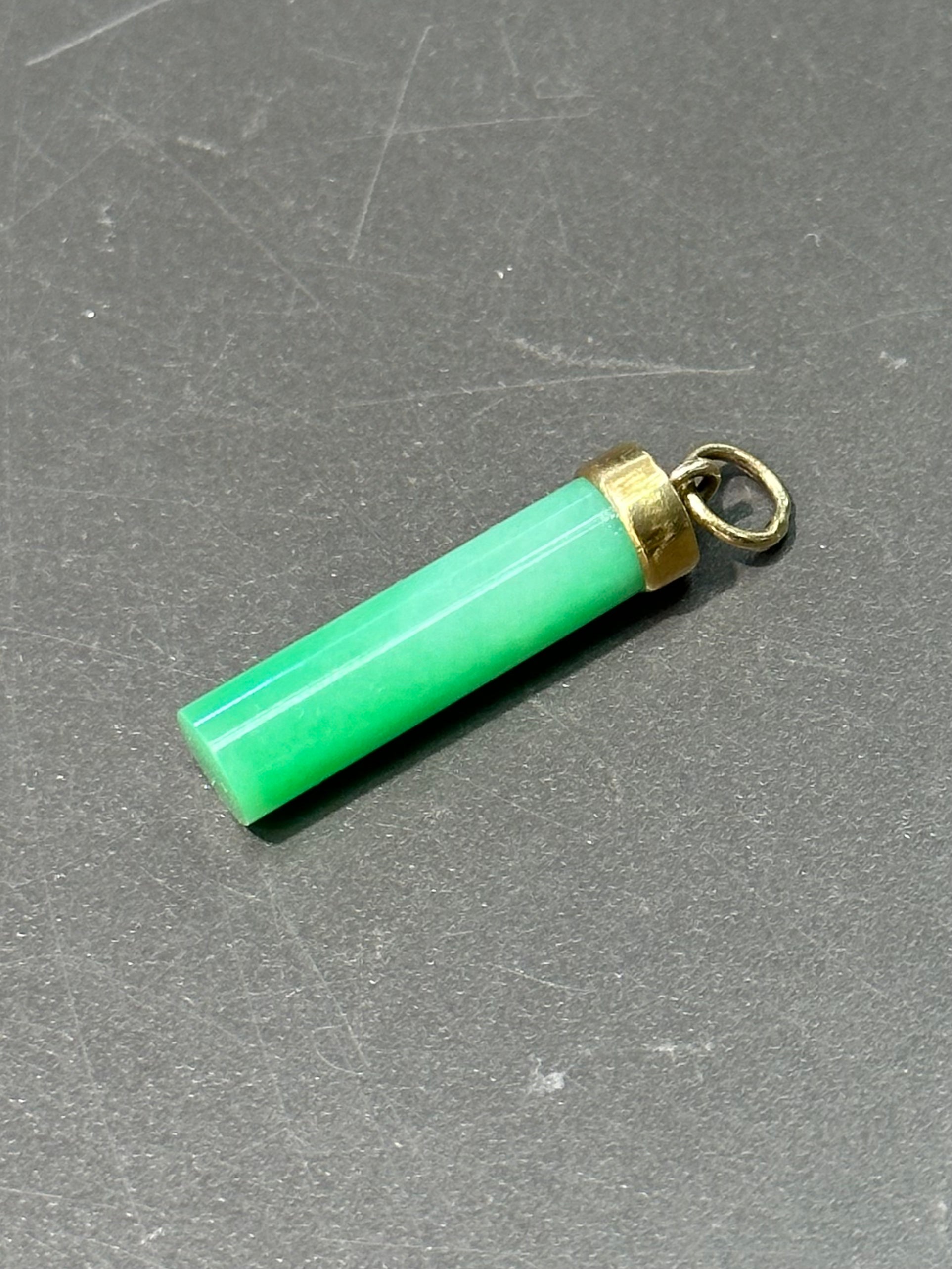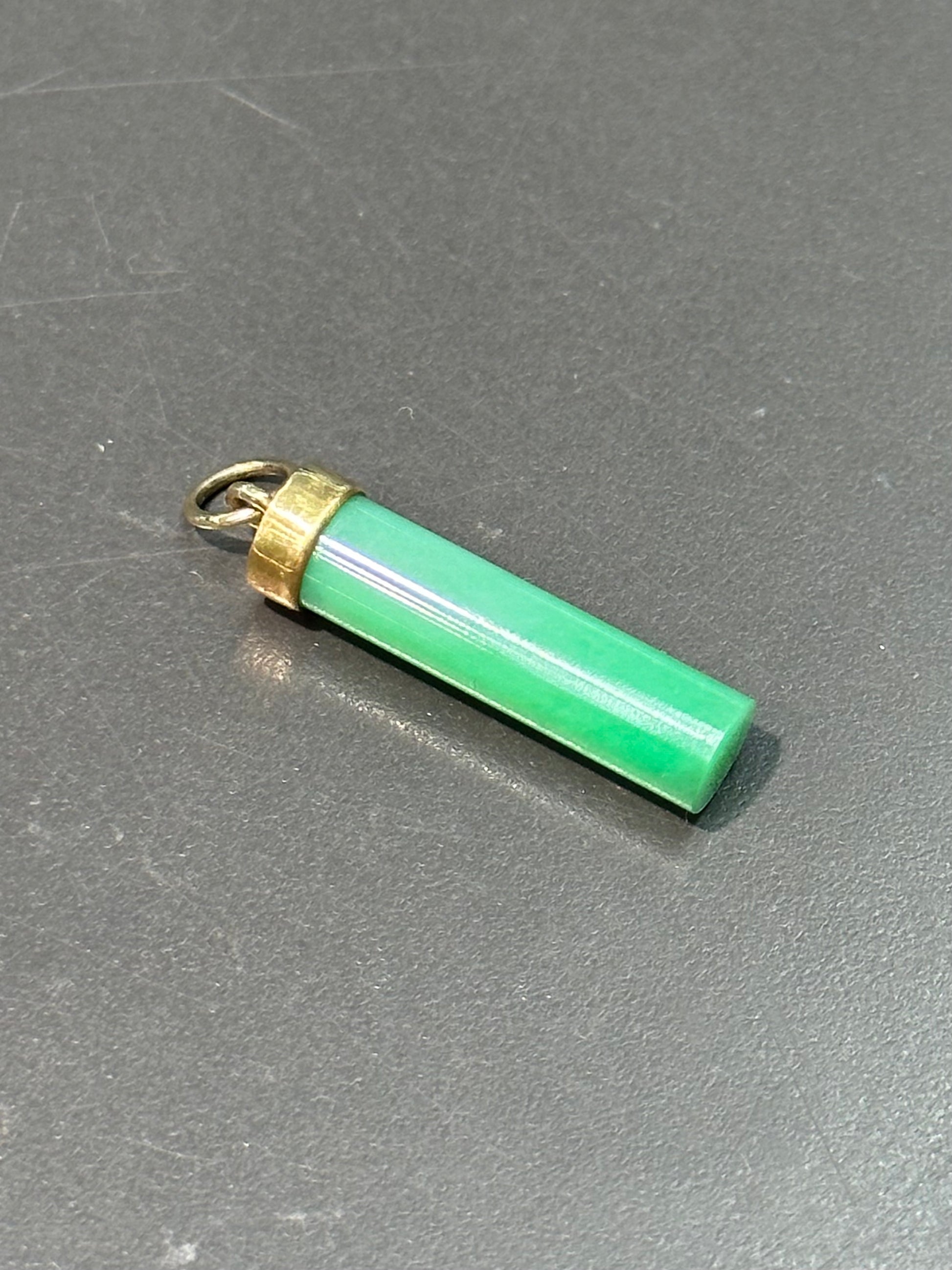 Charme de barre de cylindre de jade naturel en or 14 carats vintage