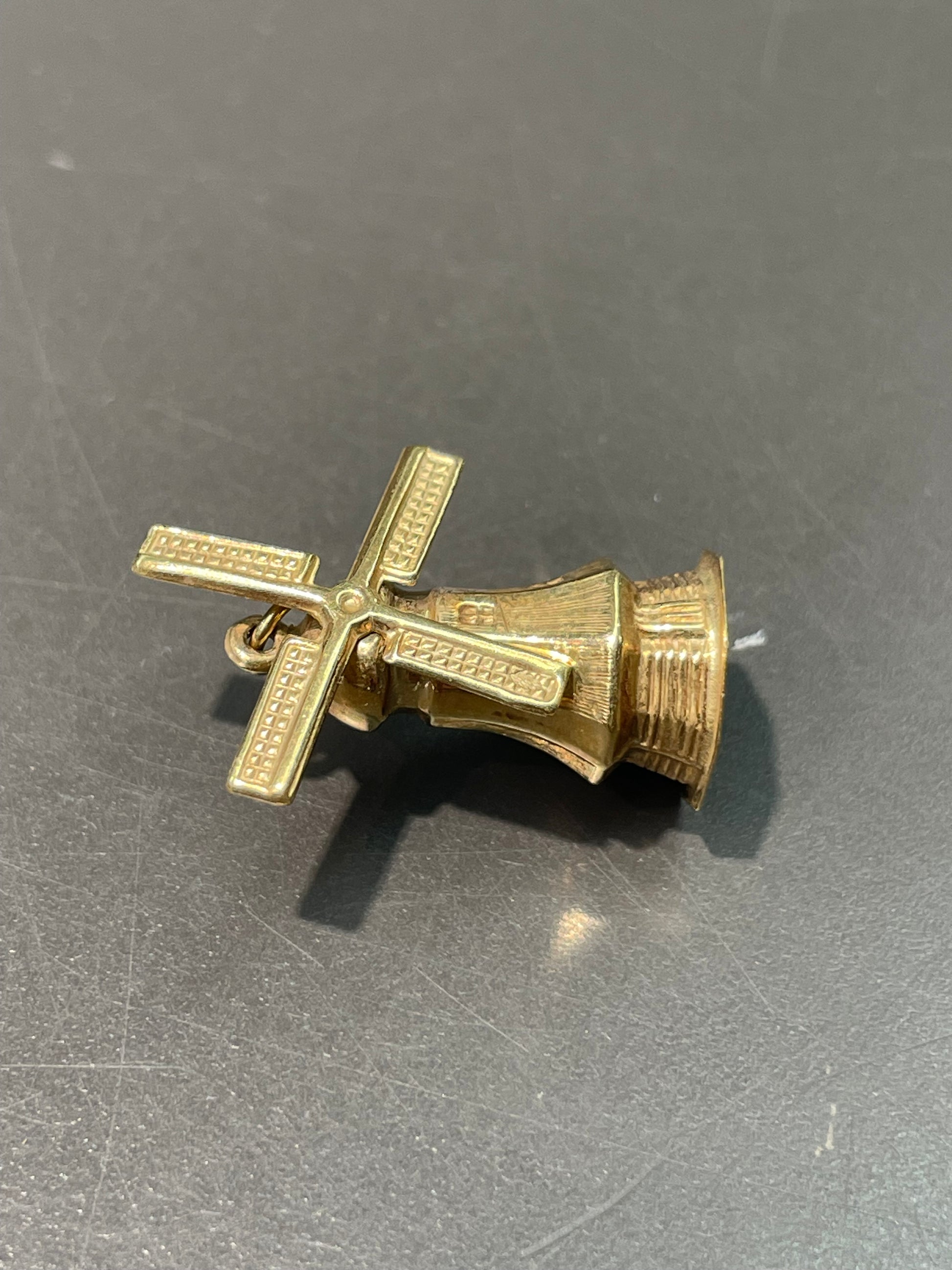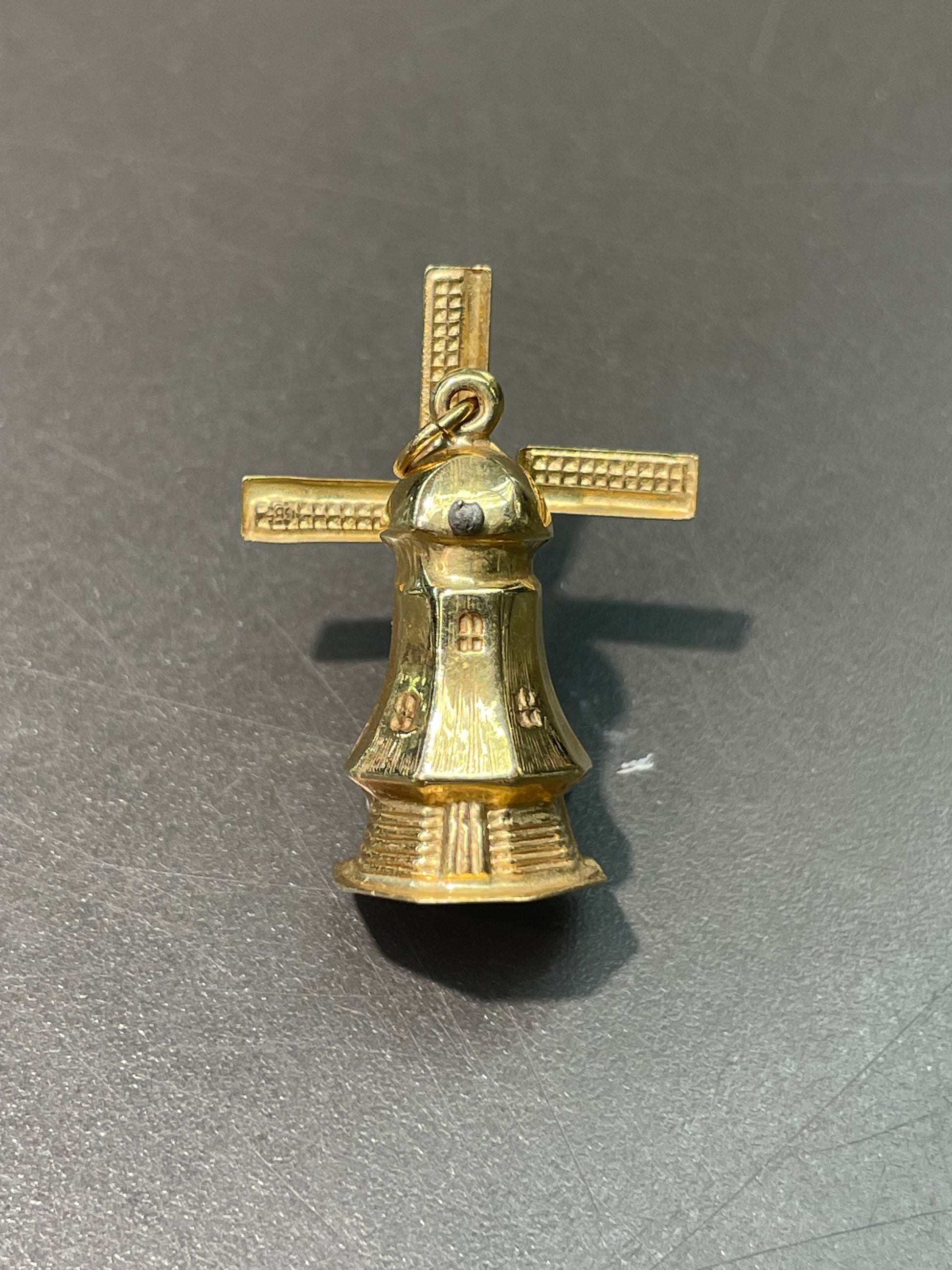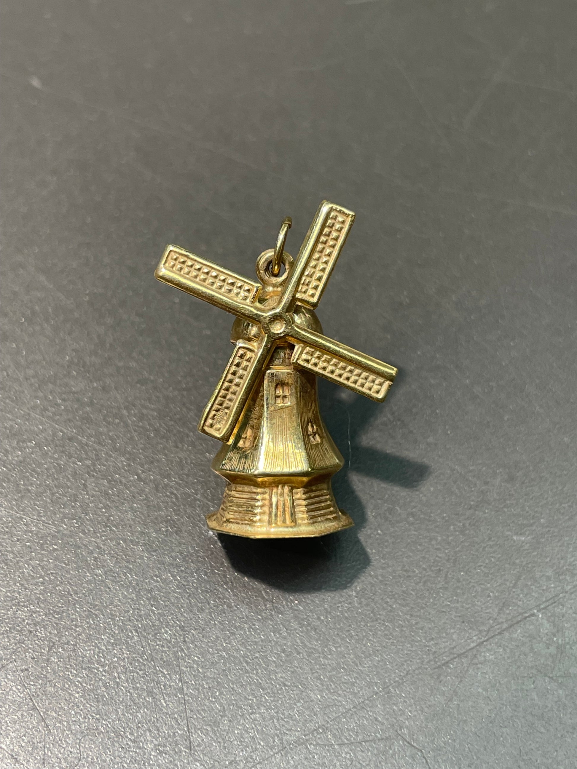 Vintage 14K Yellow Gold Articulating Dutch Windmill Charm Pendant
