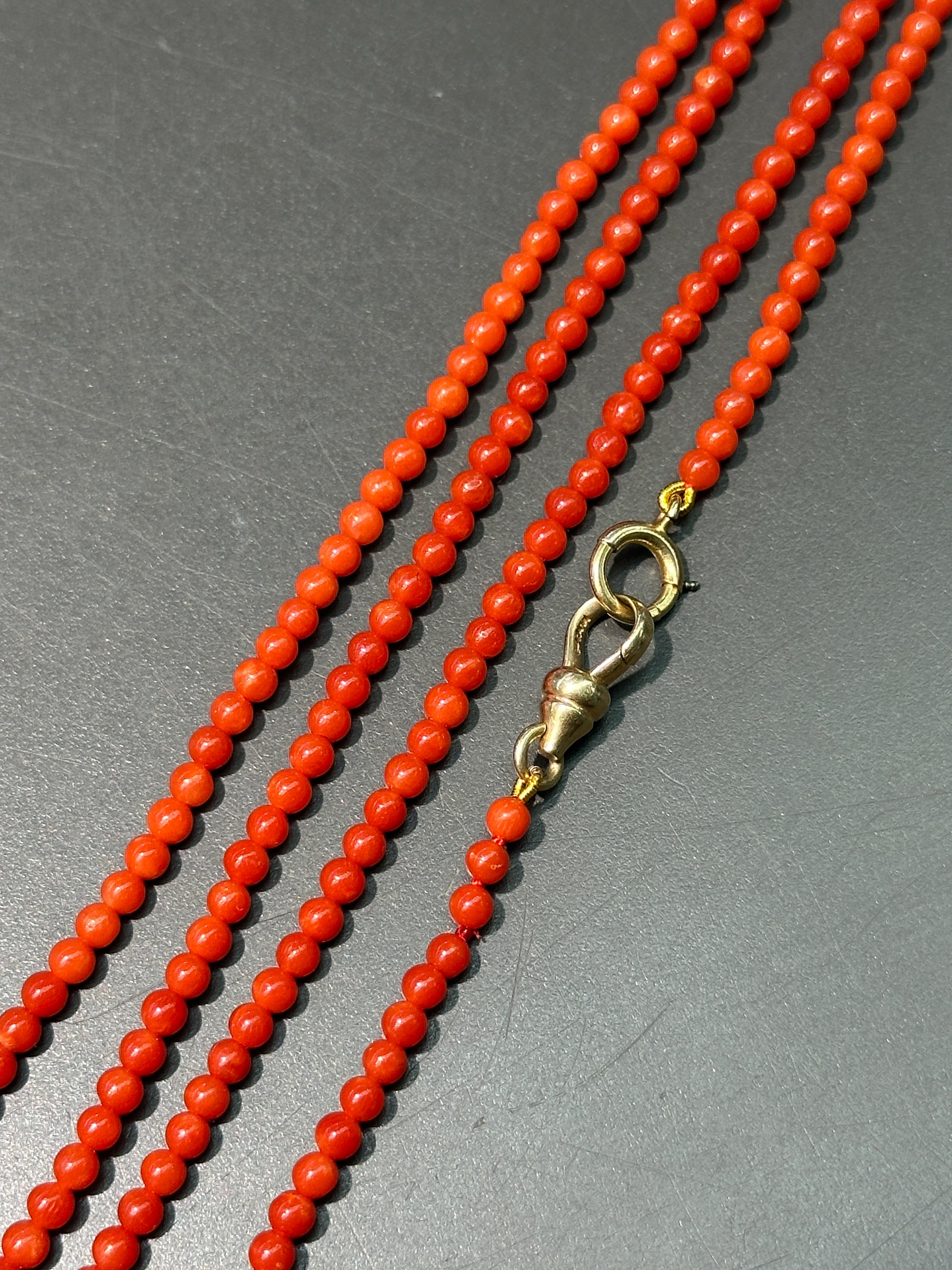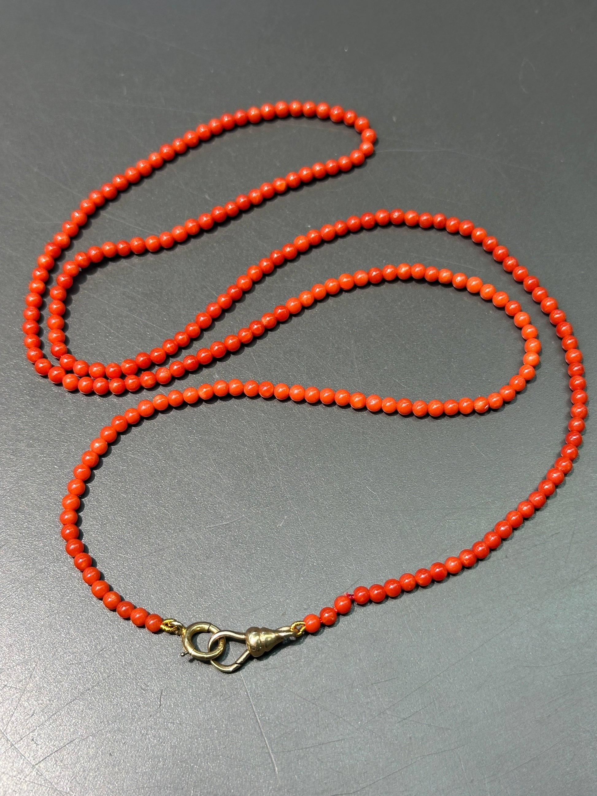 14K Gold Sardine Coral Bead Watch Chain Necklace 26.5 inch