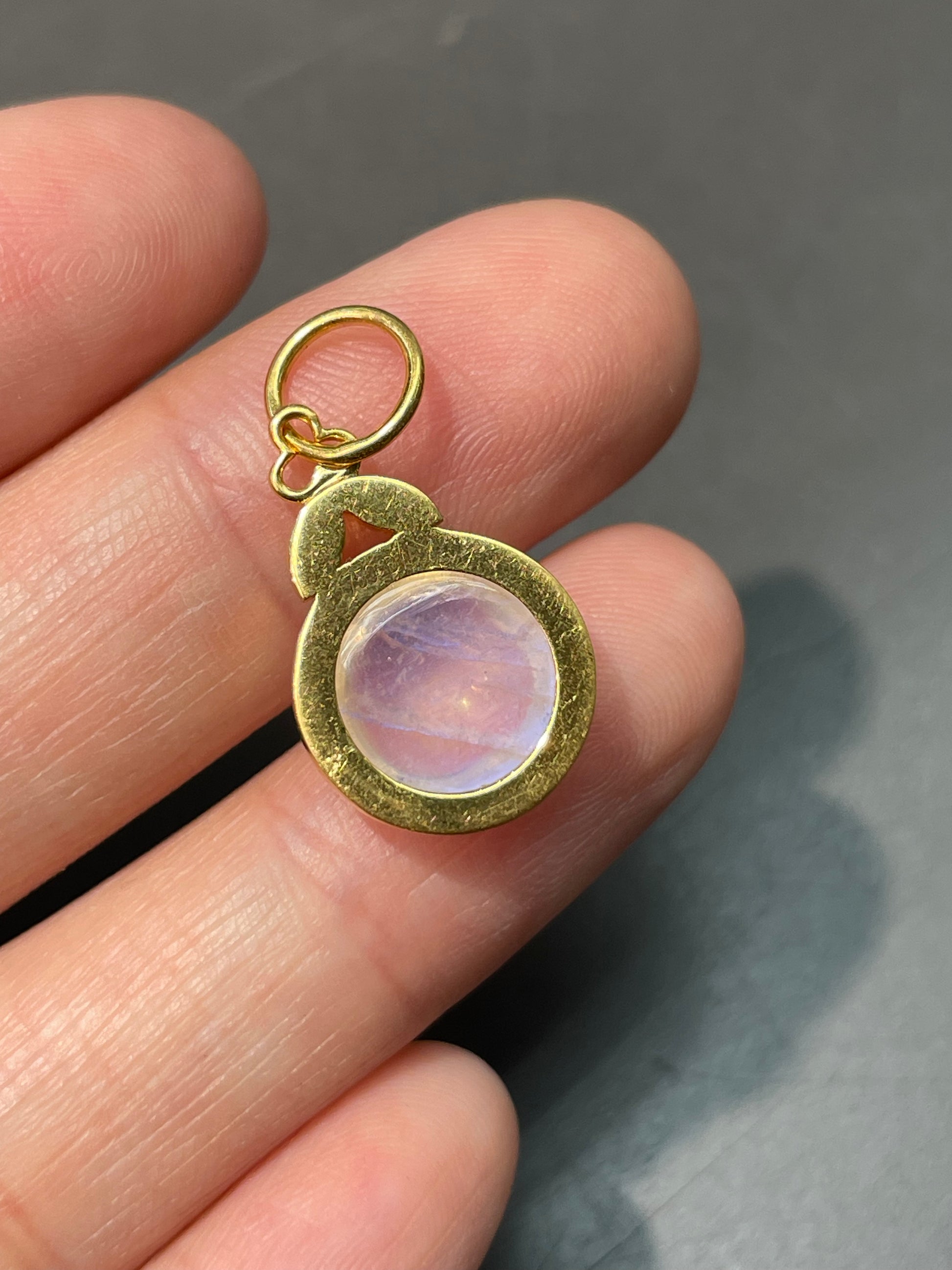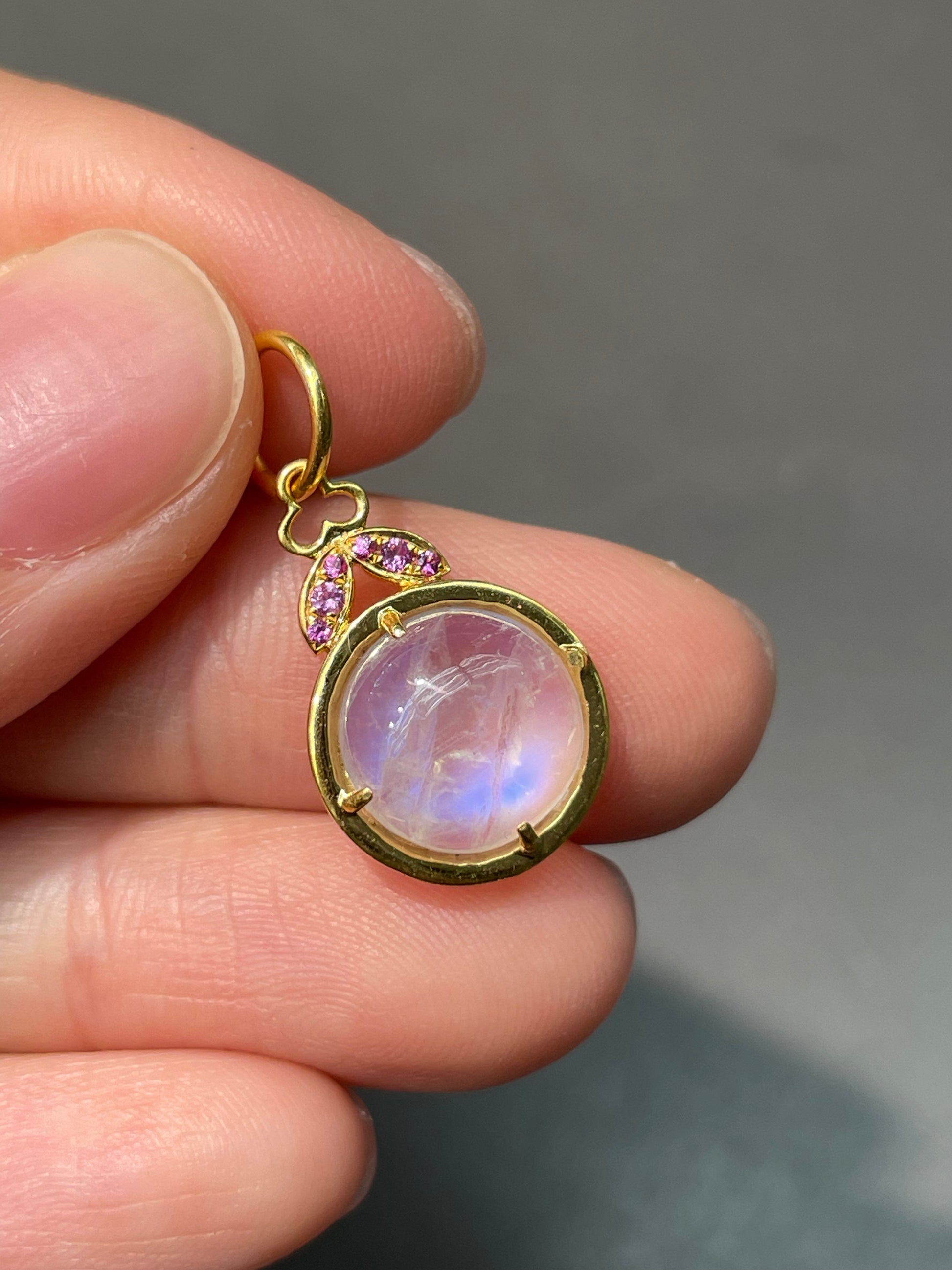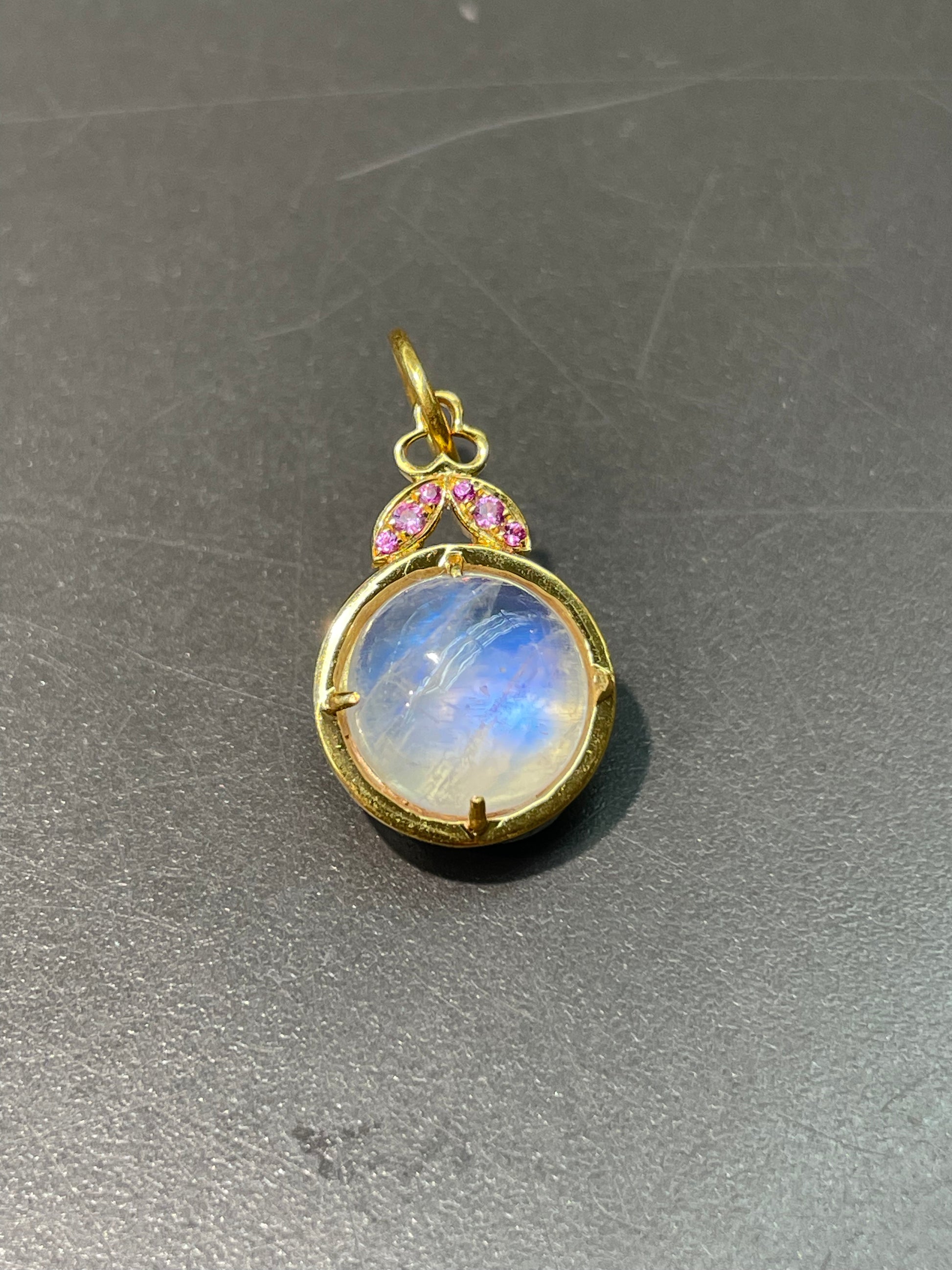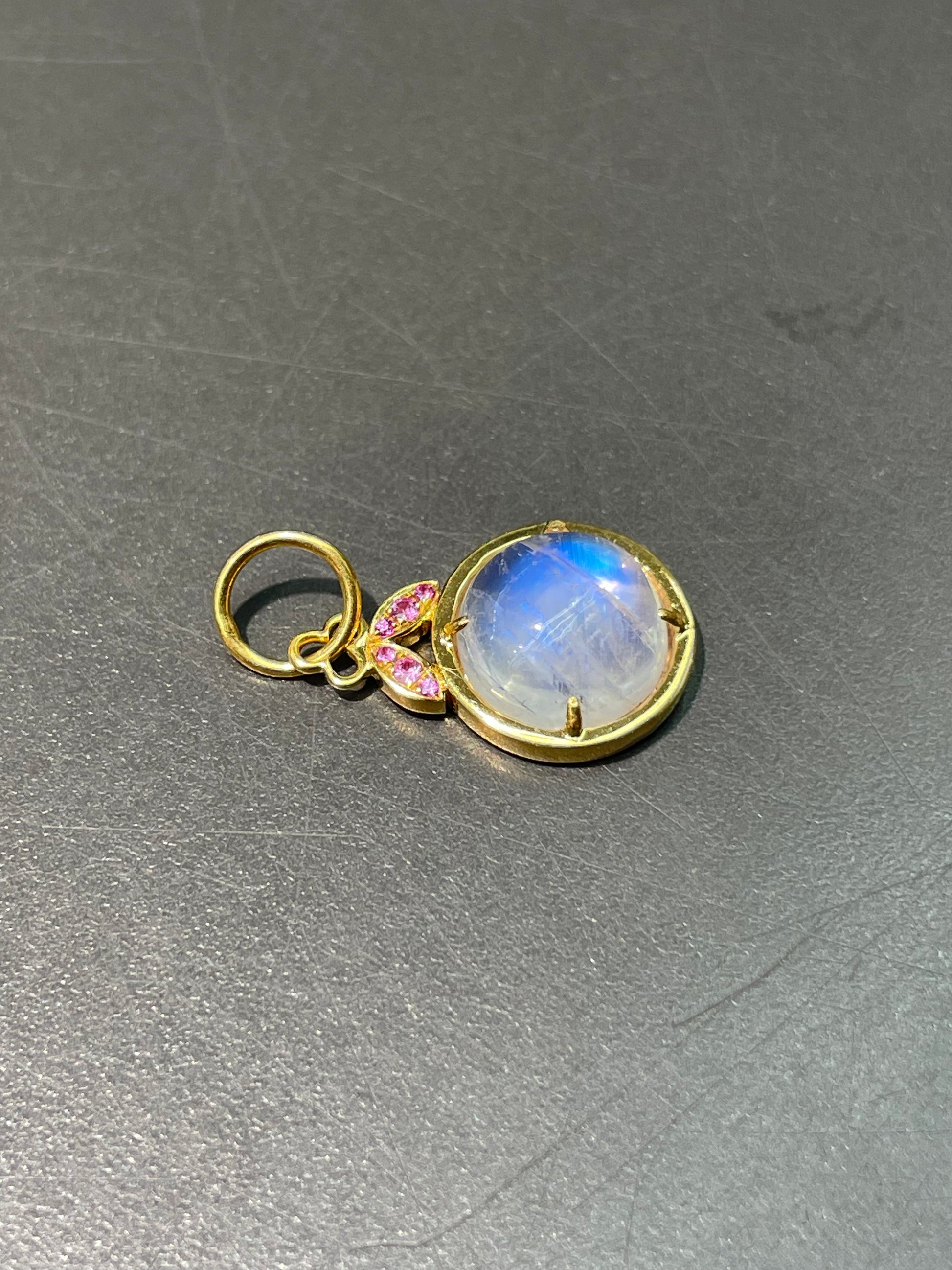 18K Yellow Gold Moonstone Pink Sapphire Motif Charm Pendant