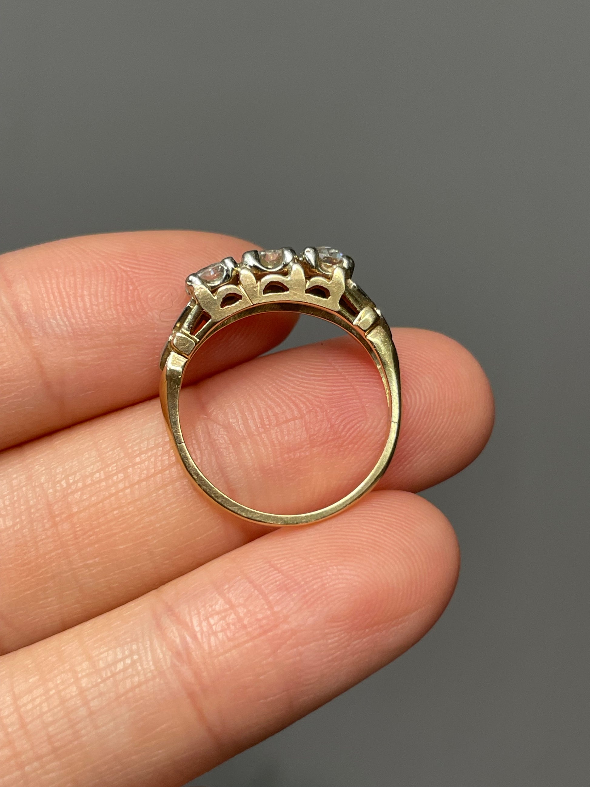 Antique 14K Bi-Tone Gold 0.65 CTW Three Stone Ring