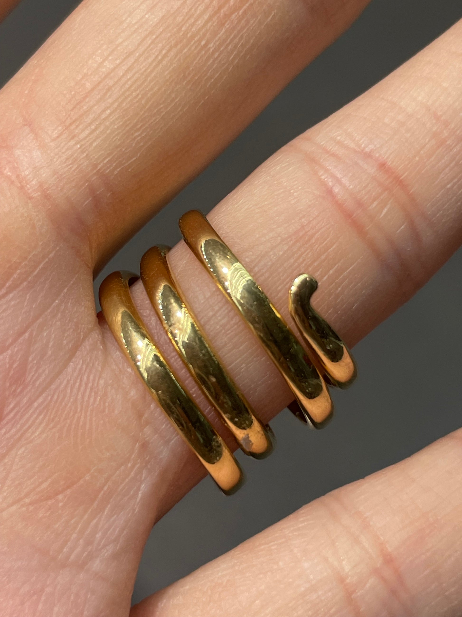 Antique Austro Hungarian 14K Gold 1.08 CTW Diamond Coiled Snake Ring