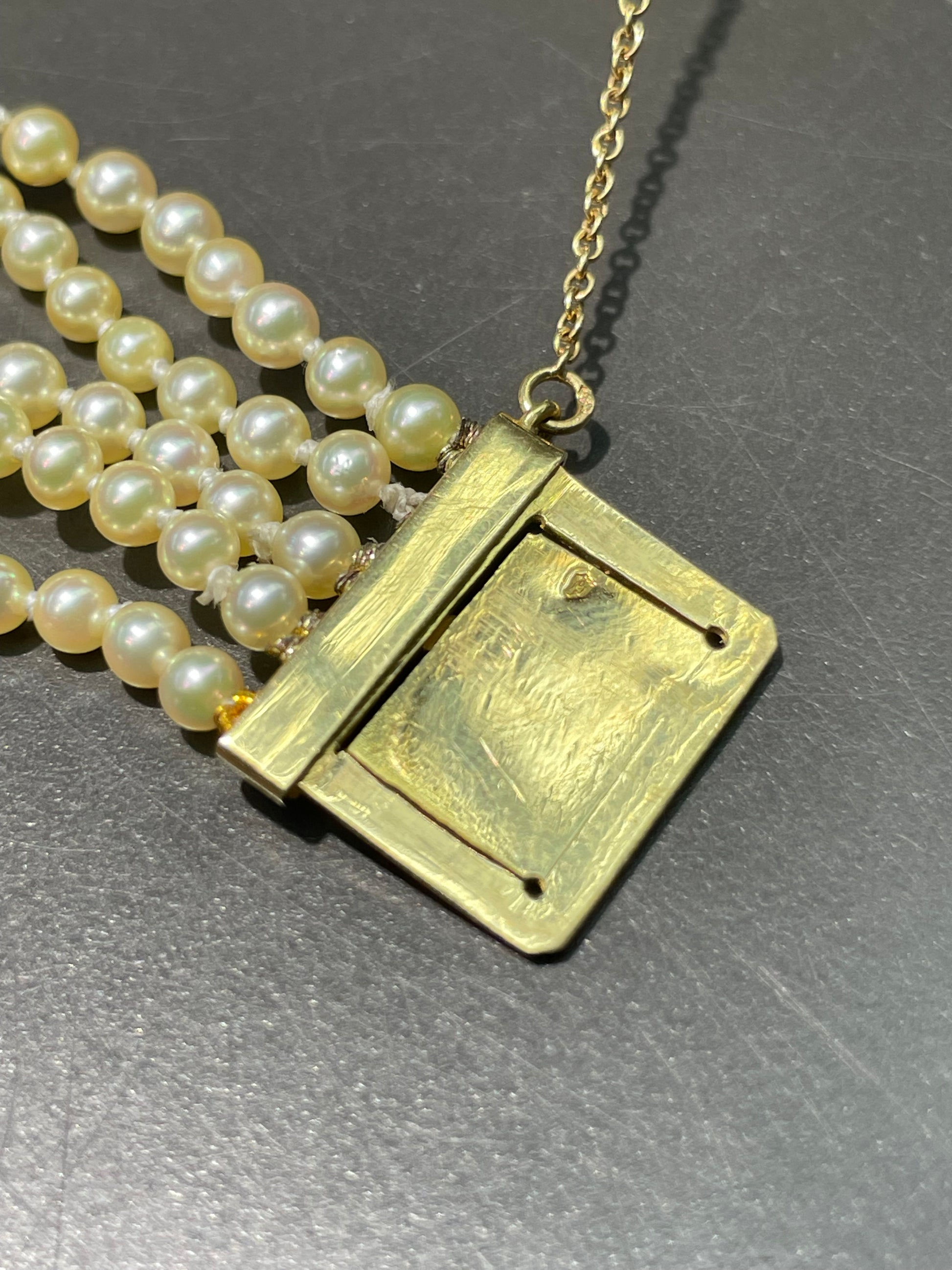 Antique French Victorian 18K Yellow Gold Opal Diamond Multi-Strand Pearl Guilloche Enamel Bracelet