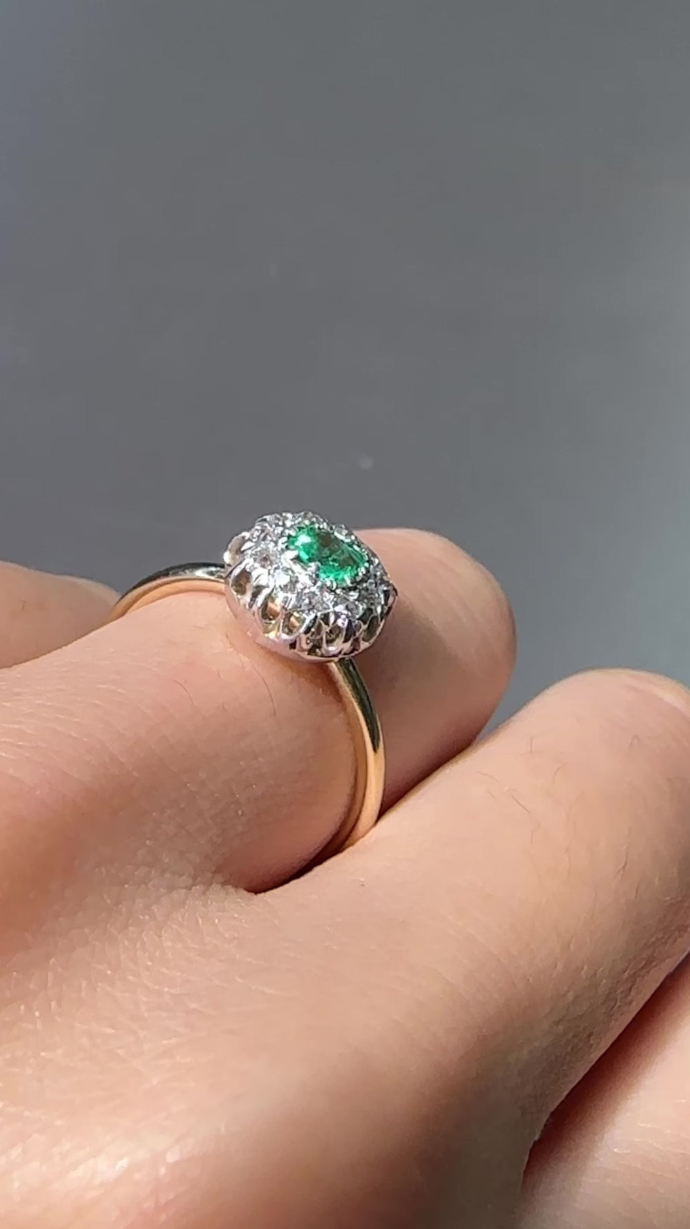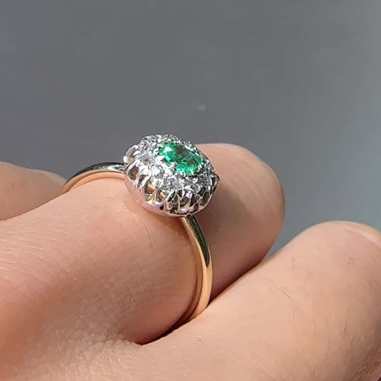 Antique Platinum 14K Yellow Gold 0.38 CTW Colombian Emerald Diamond Halo Ring