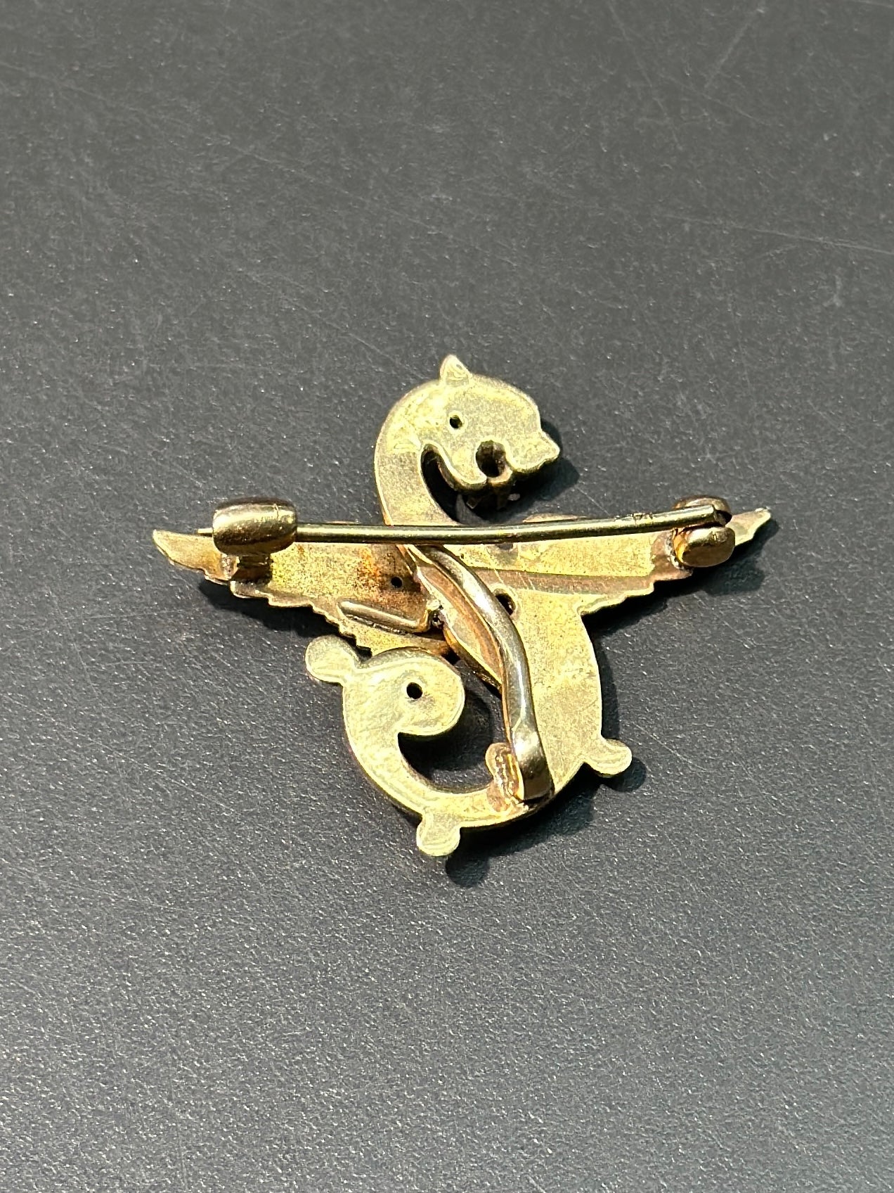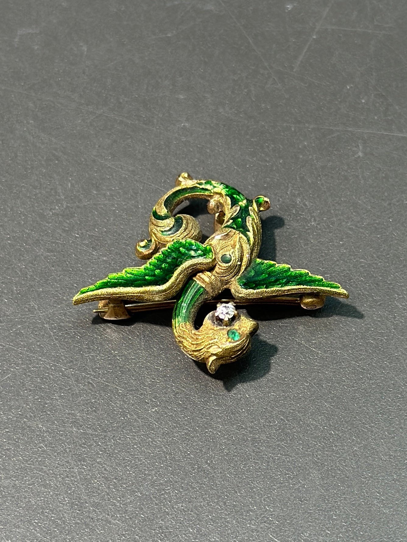Art Nouveau 14K Gold Enamel Dragon Griffin Brooch