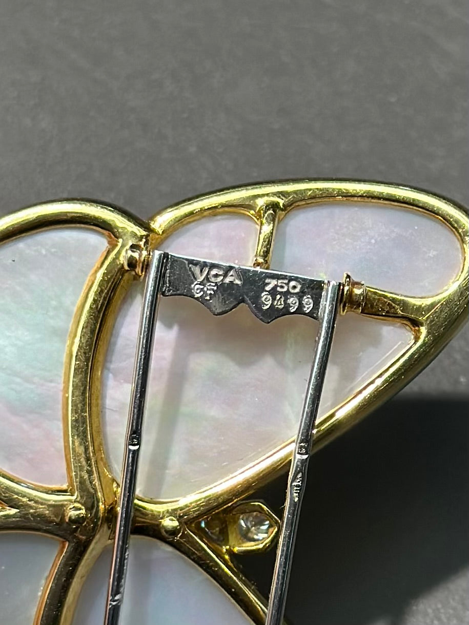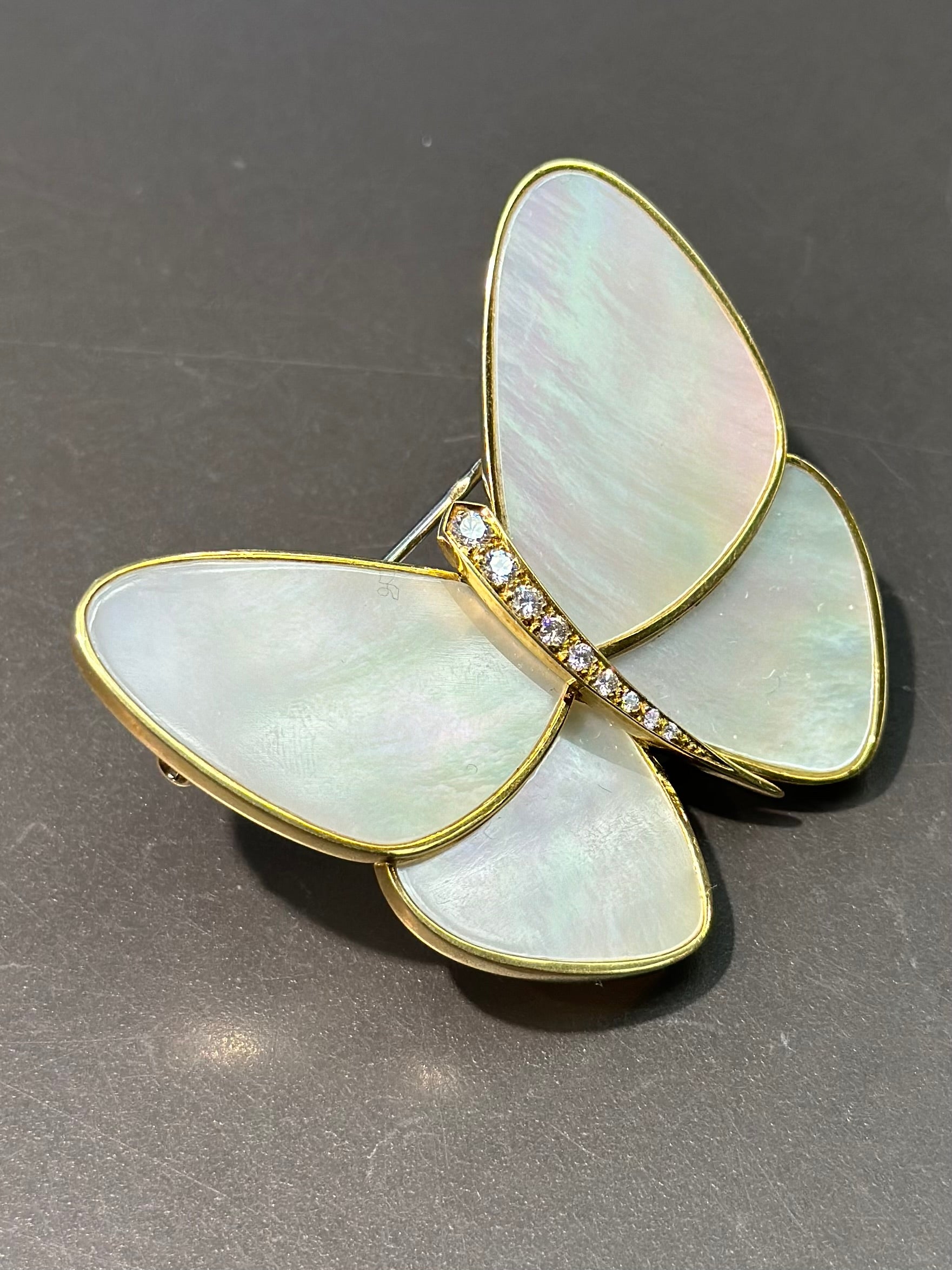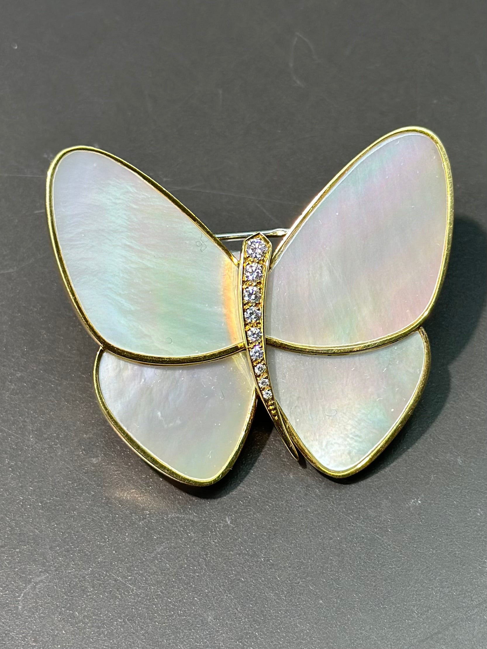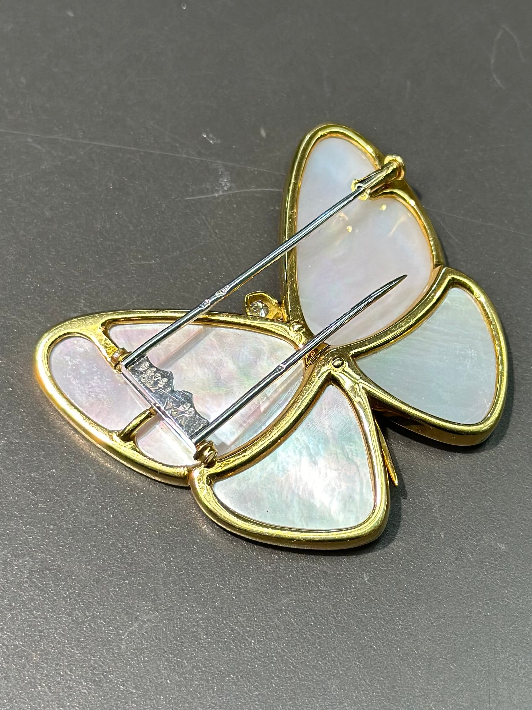 French Van Cleef Arpels 18K Gold Mother of Pearl Diamond Butterfly Brooch