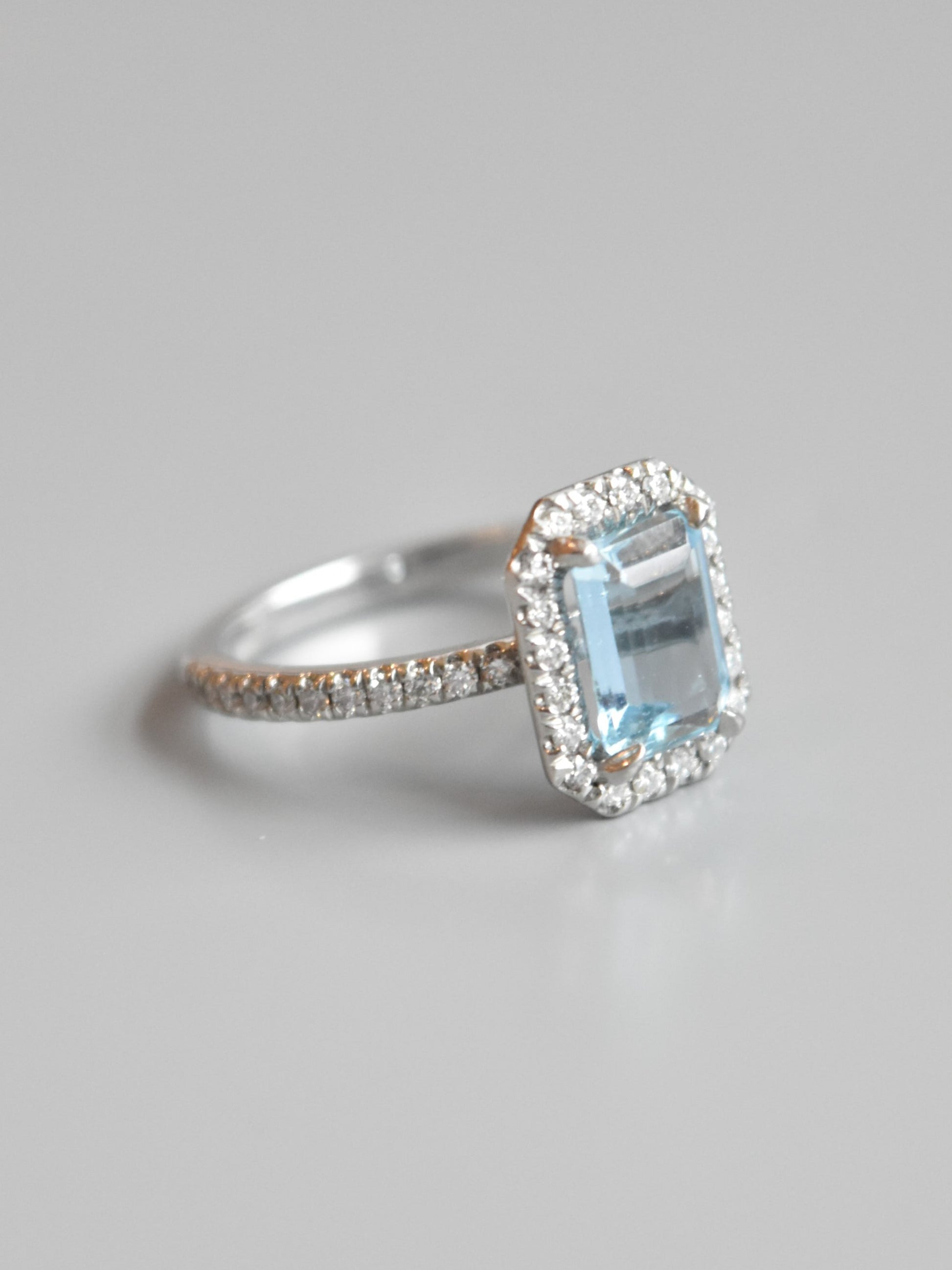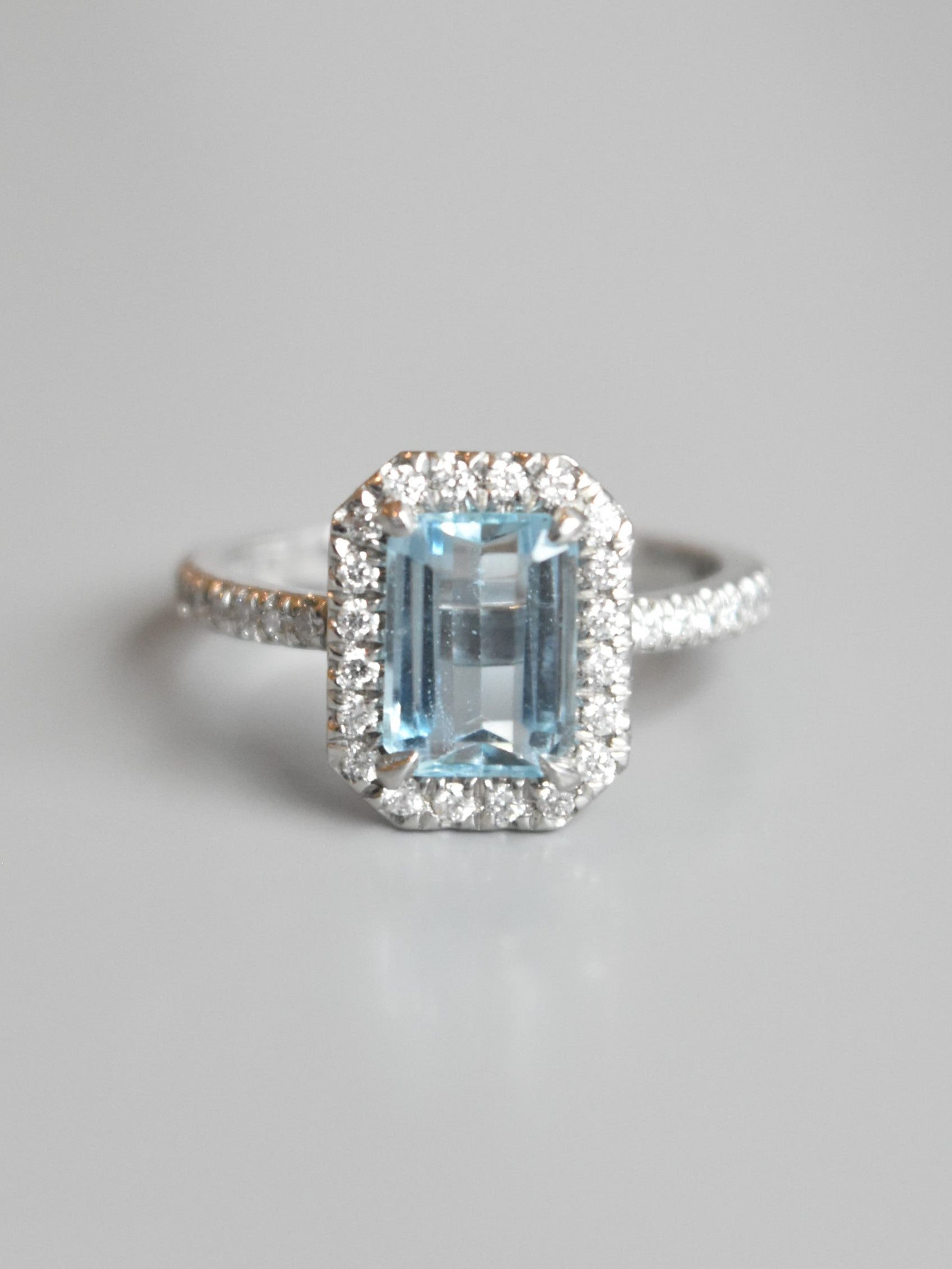 Platinum Aquamarine Diamond Pavé Halo Ring