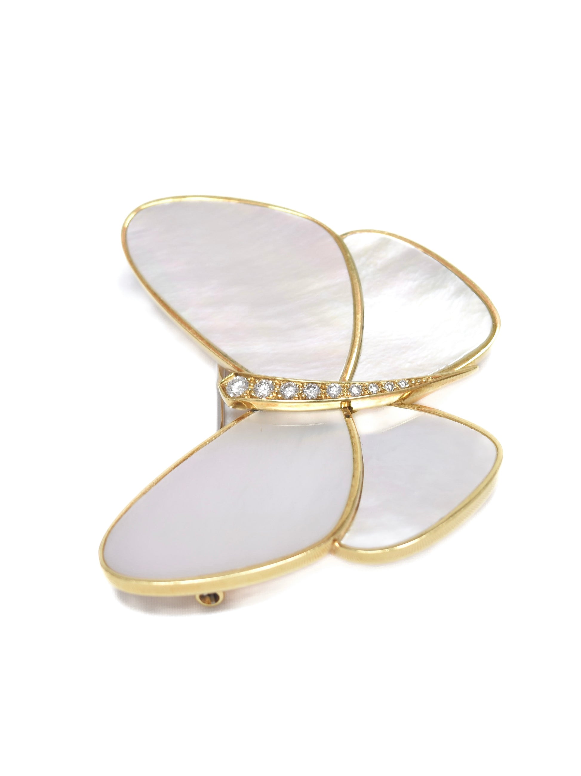 Van Cleef & Arpels 18K Gold Mother of Pearl Diamond Butterfly Brooch