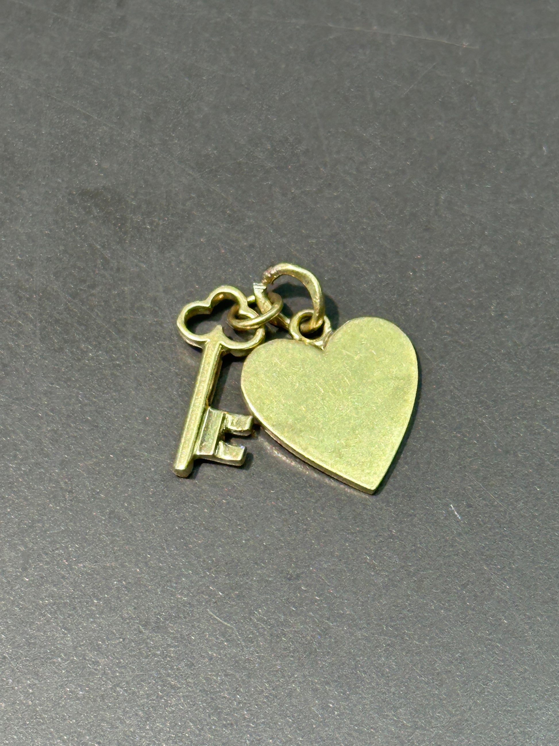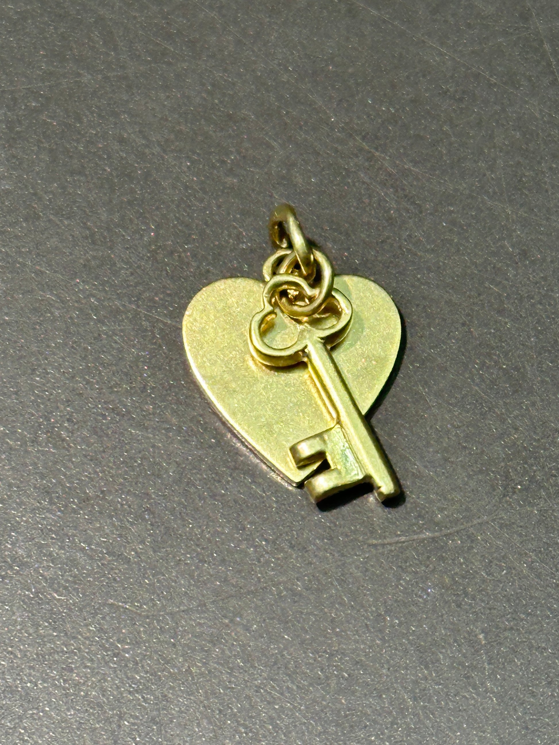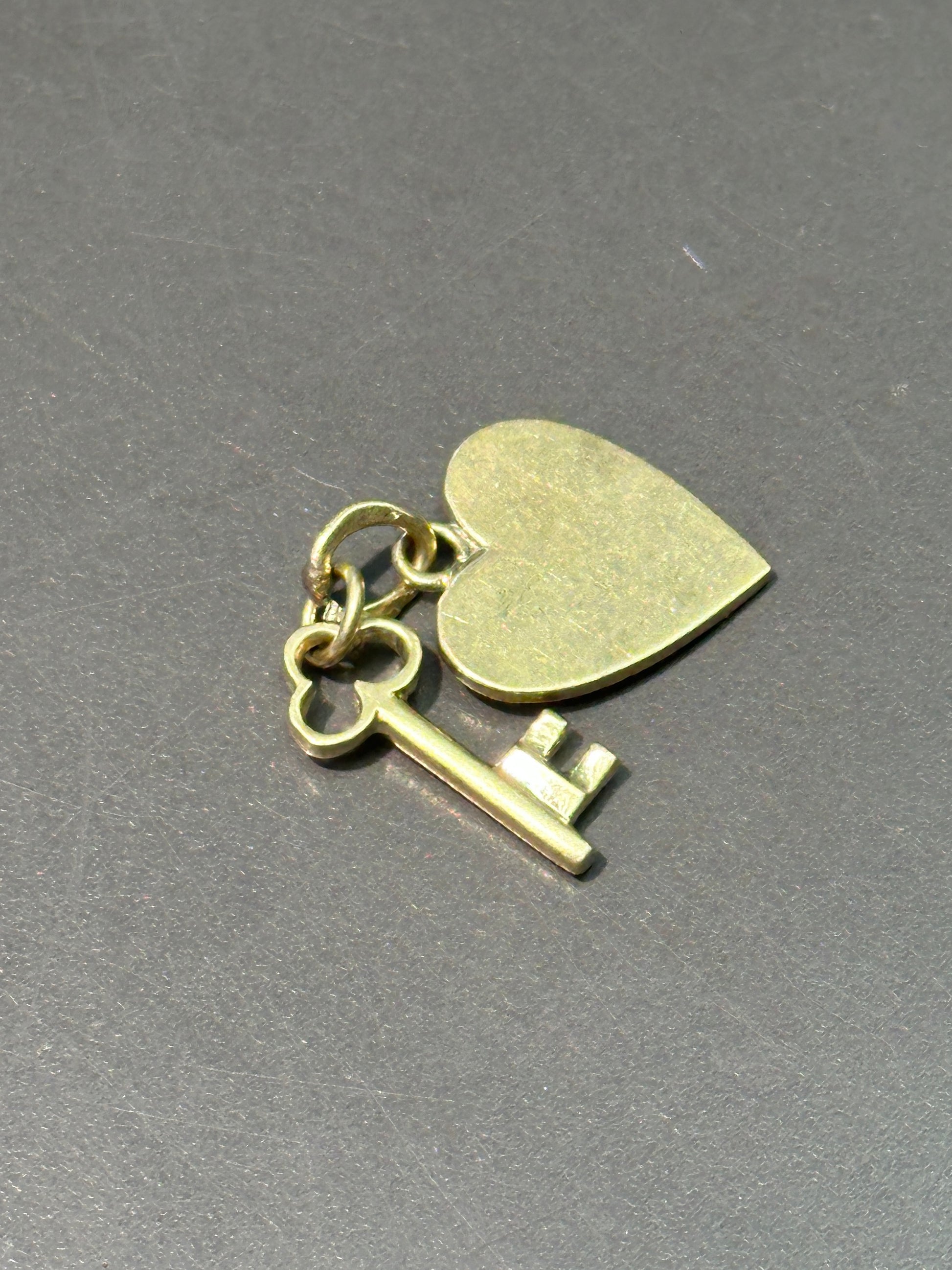 Vintage 14K Yellow Gold Heart Disc and Key Charm