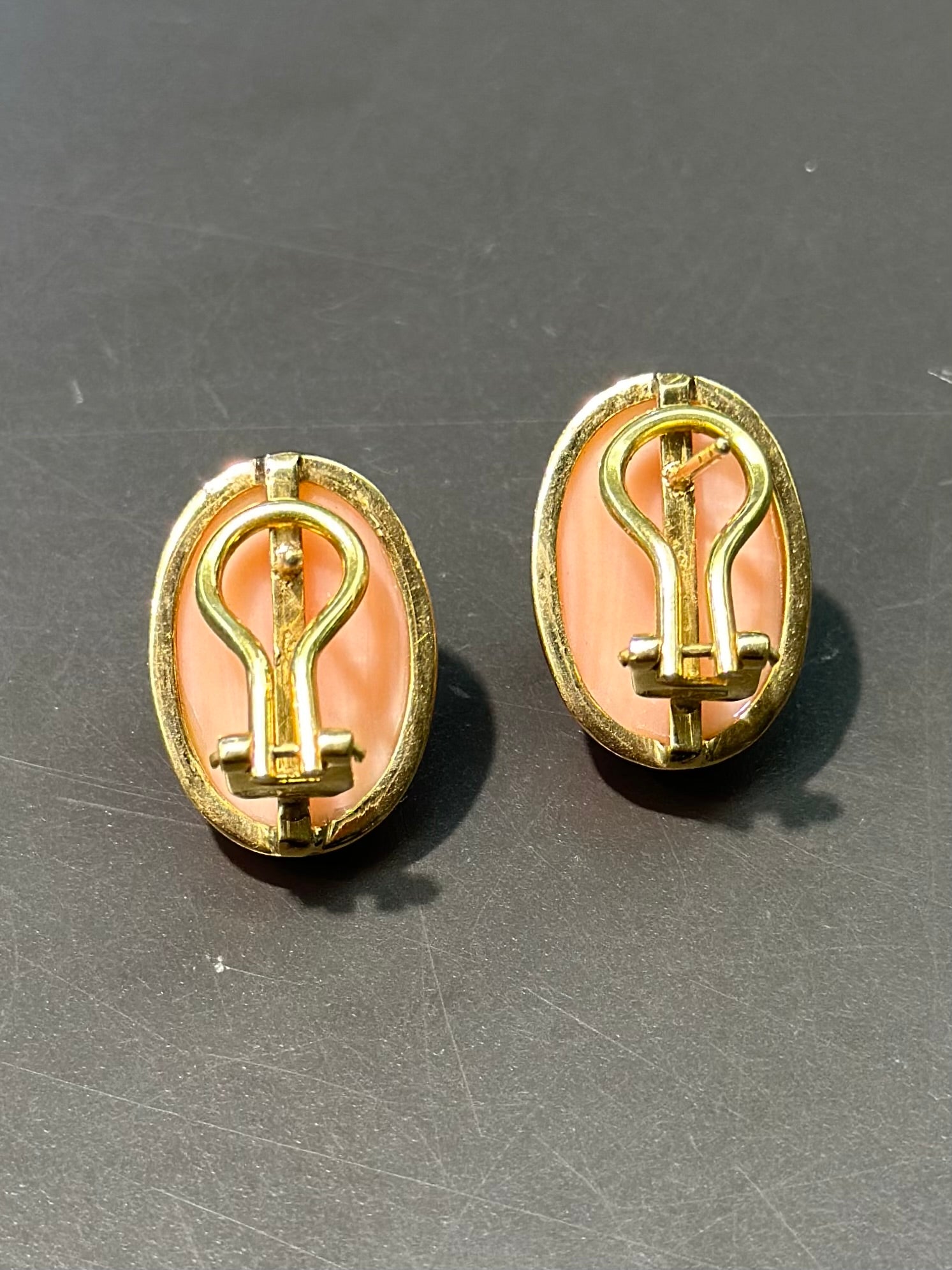 Vintage 18K Gold Angel Skin Coral Cabochon Earring