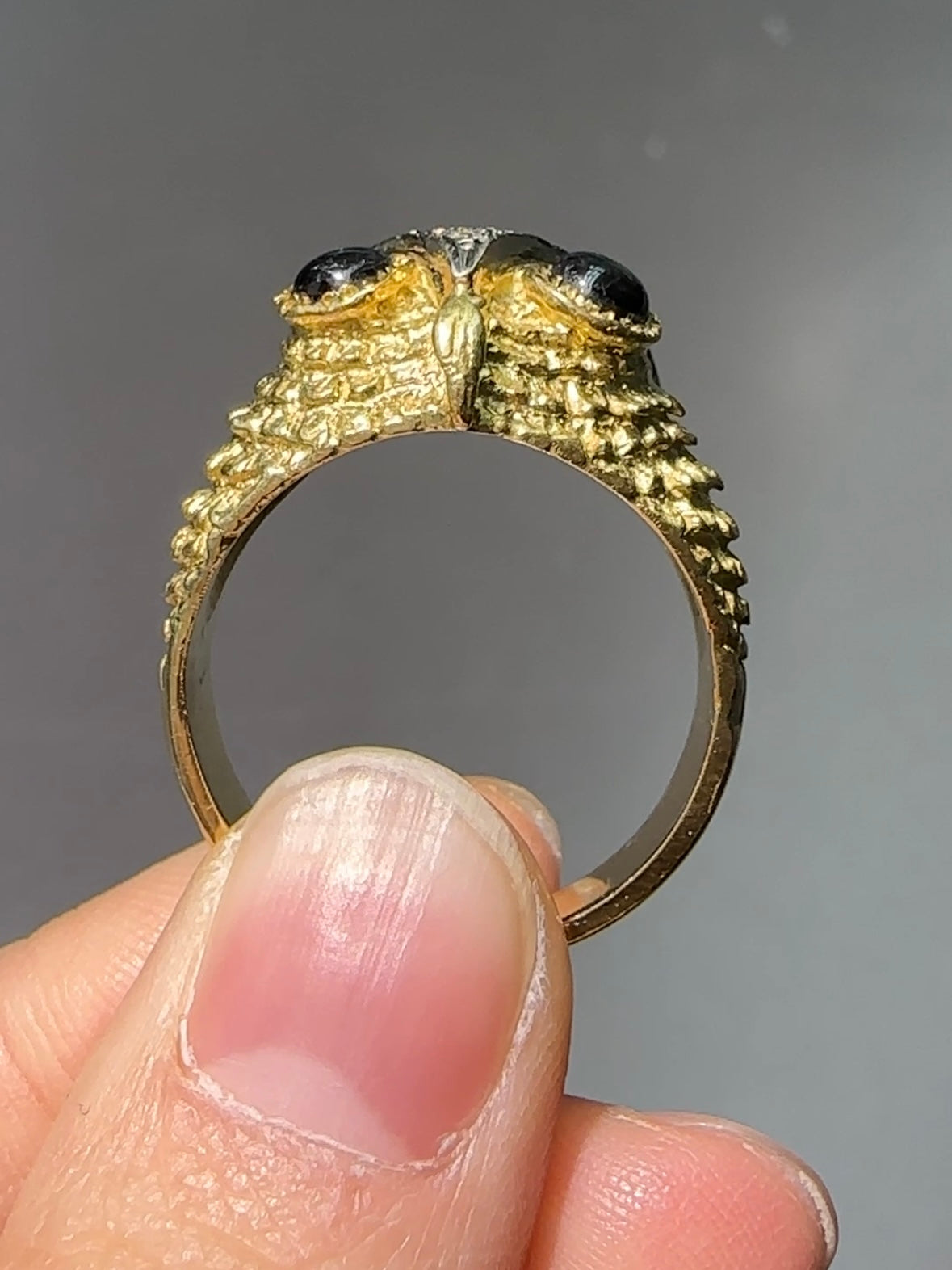Vintage 18K Yellow Gold Cat’s Eye 0.35 CTW Diamond Owl Ring