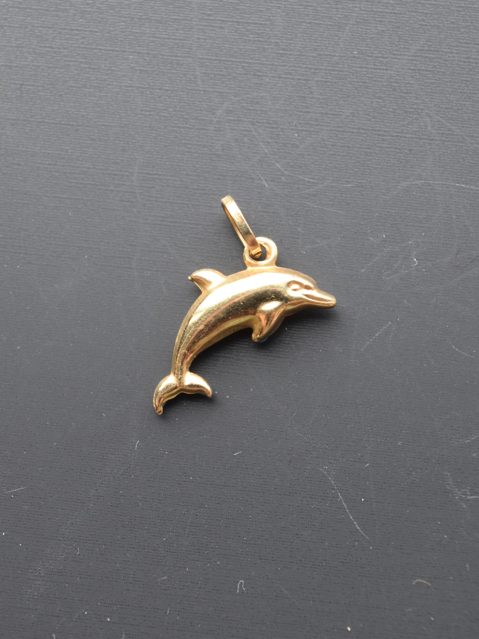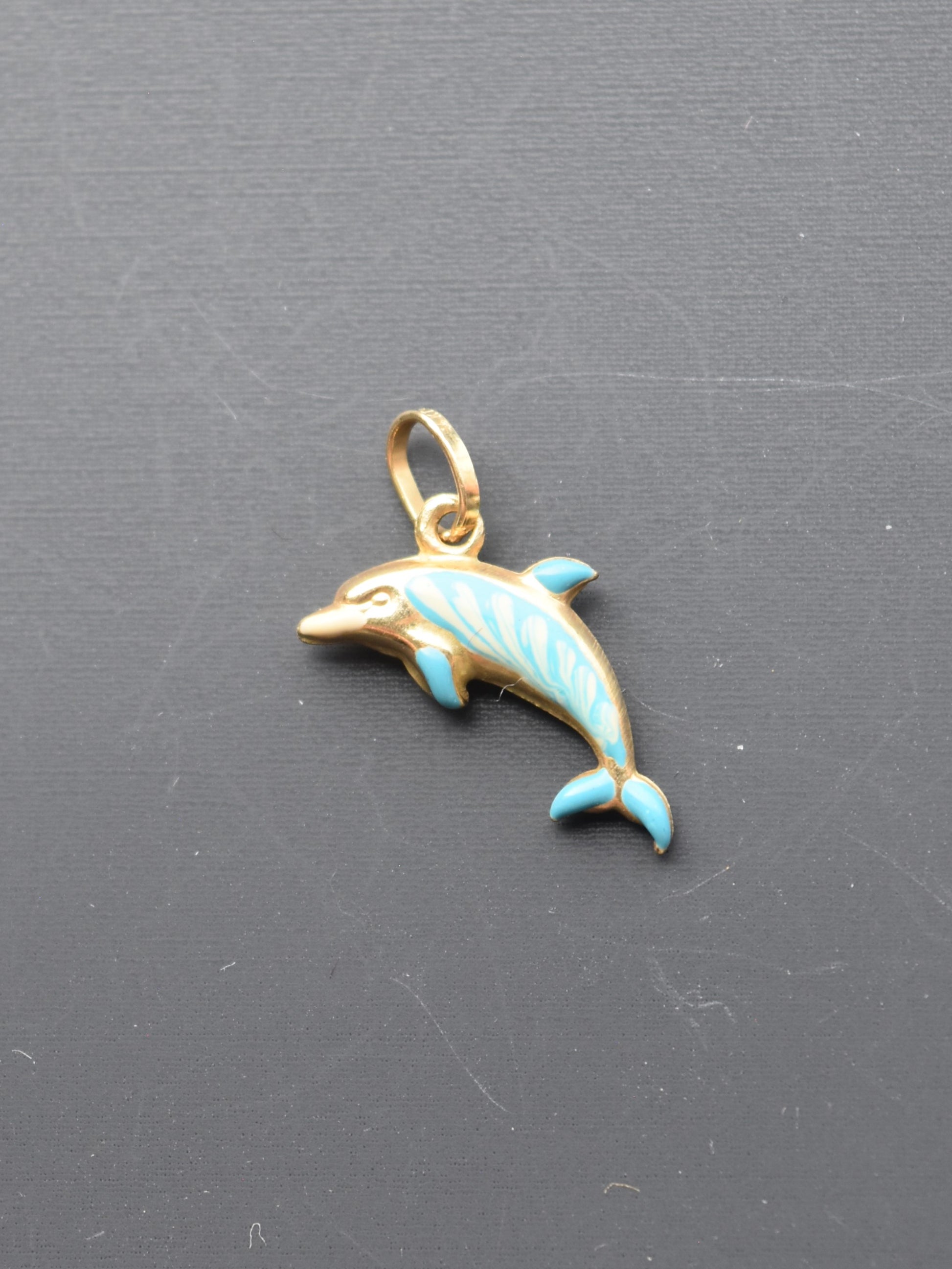 14K 金迷你空心蓝色珐琅海豚吊坠