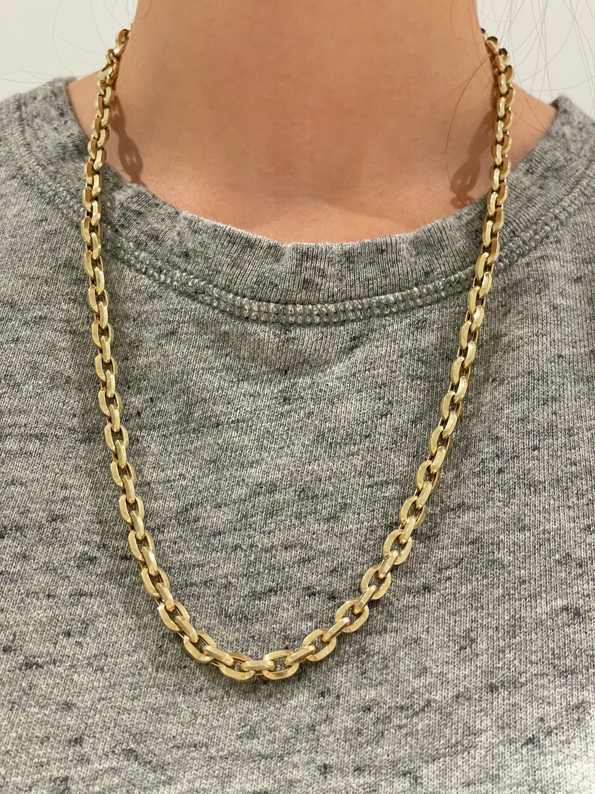 A bold and substantial 14K yellow gold biker link chain link necklace with semi-solid links. Great stacked or worn alone!