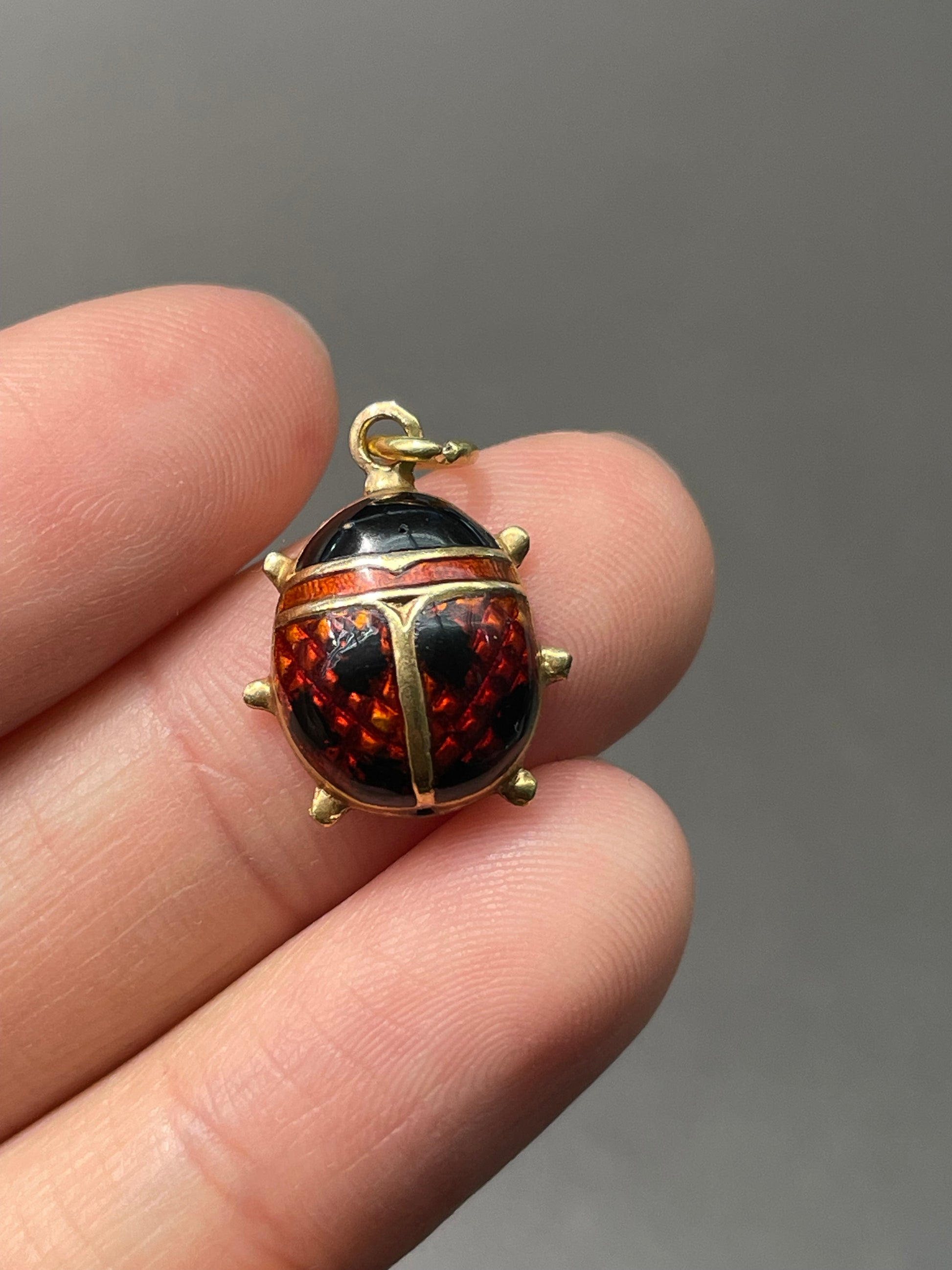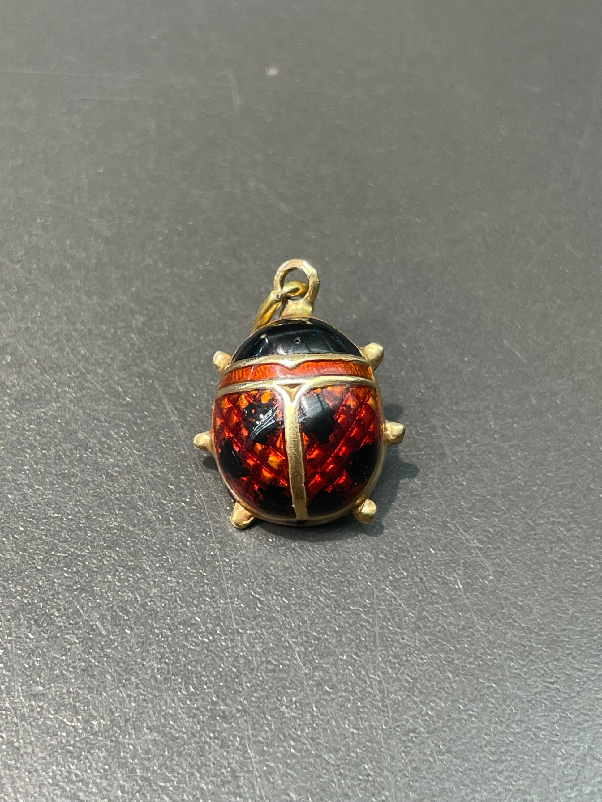 Vintage 18K Gold Enamel Ladybug Charm Pendant