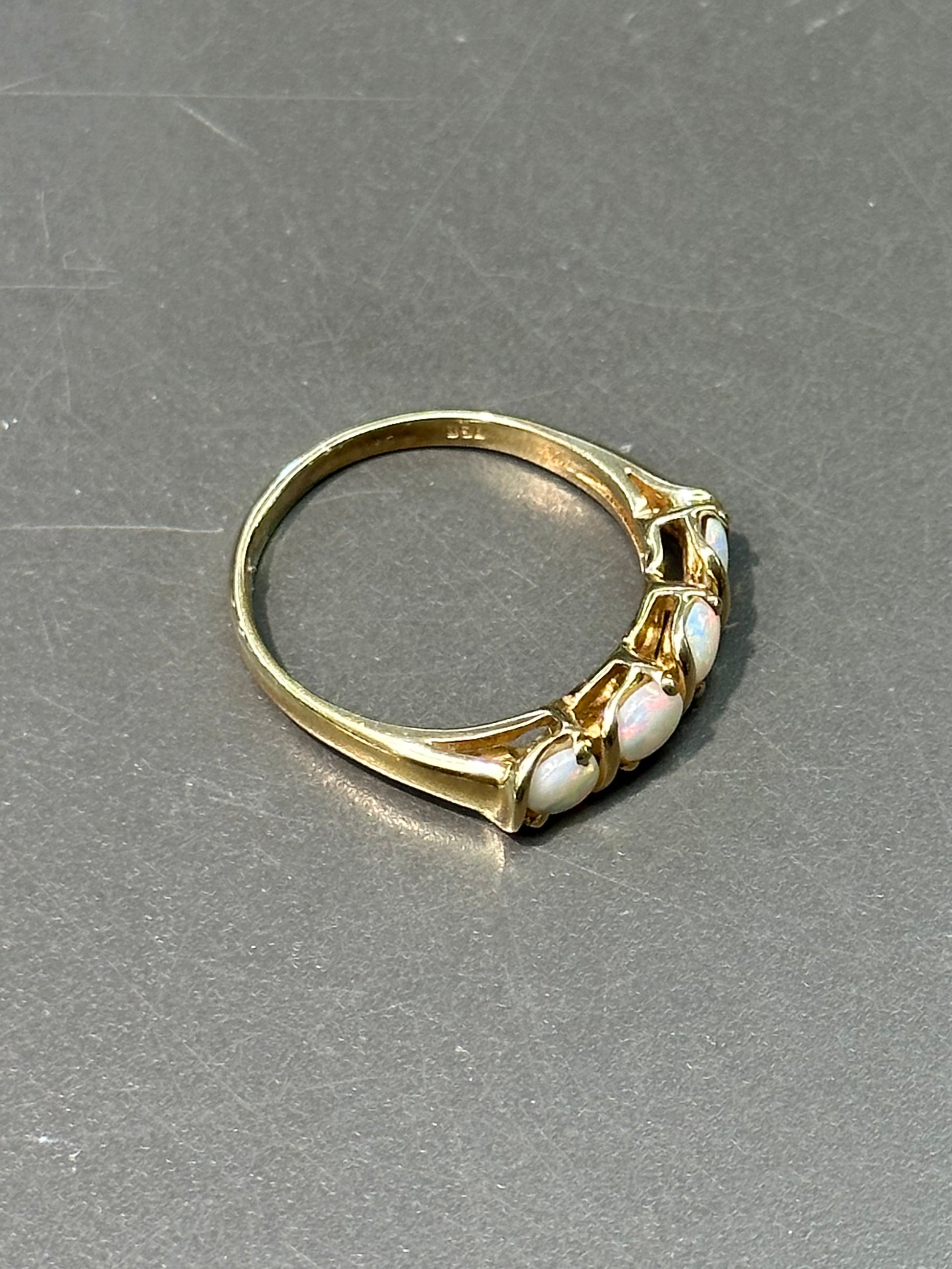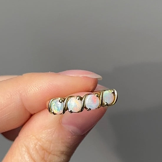 装饰有 4 颗生动活泼、色彩鲜艳的凸圆形蛋白石,外面包裹着 18K 金。