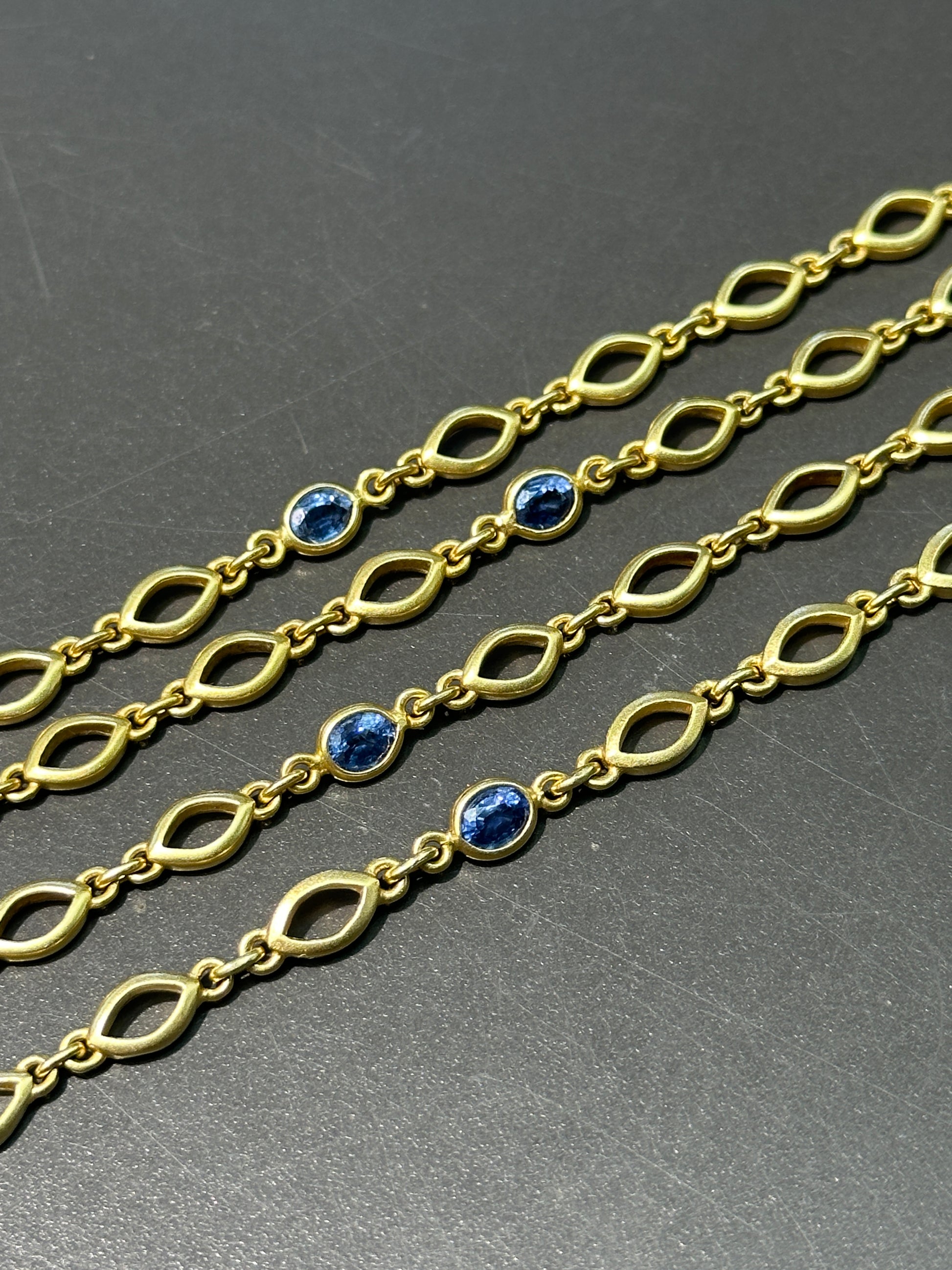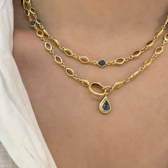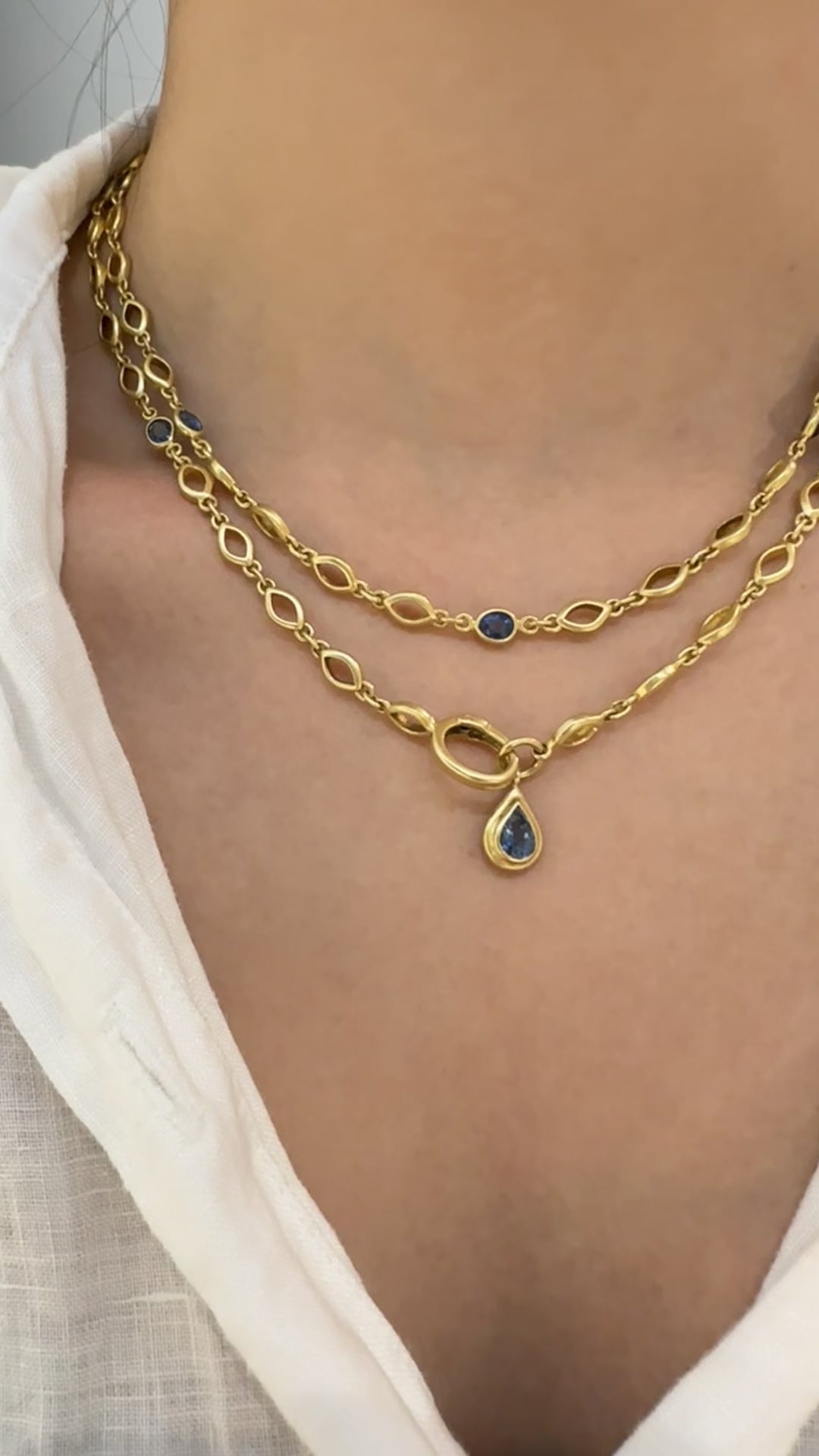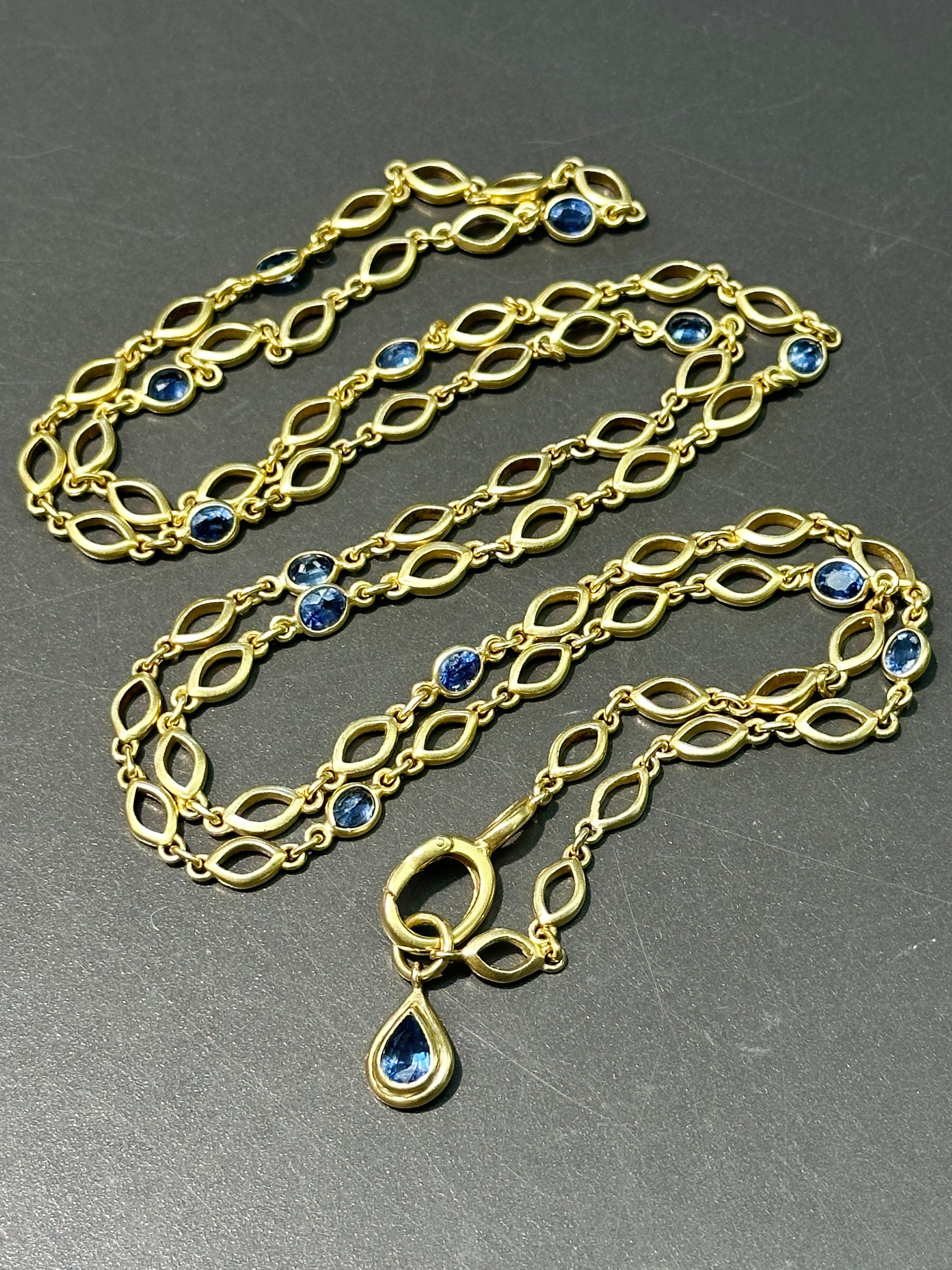 18K 金天然蓝宝石镶链项链 33.5 英寸