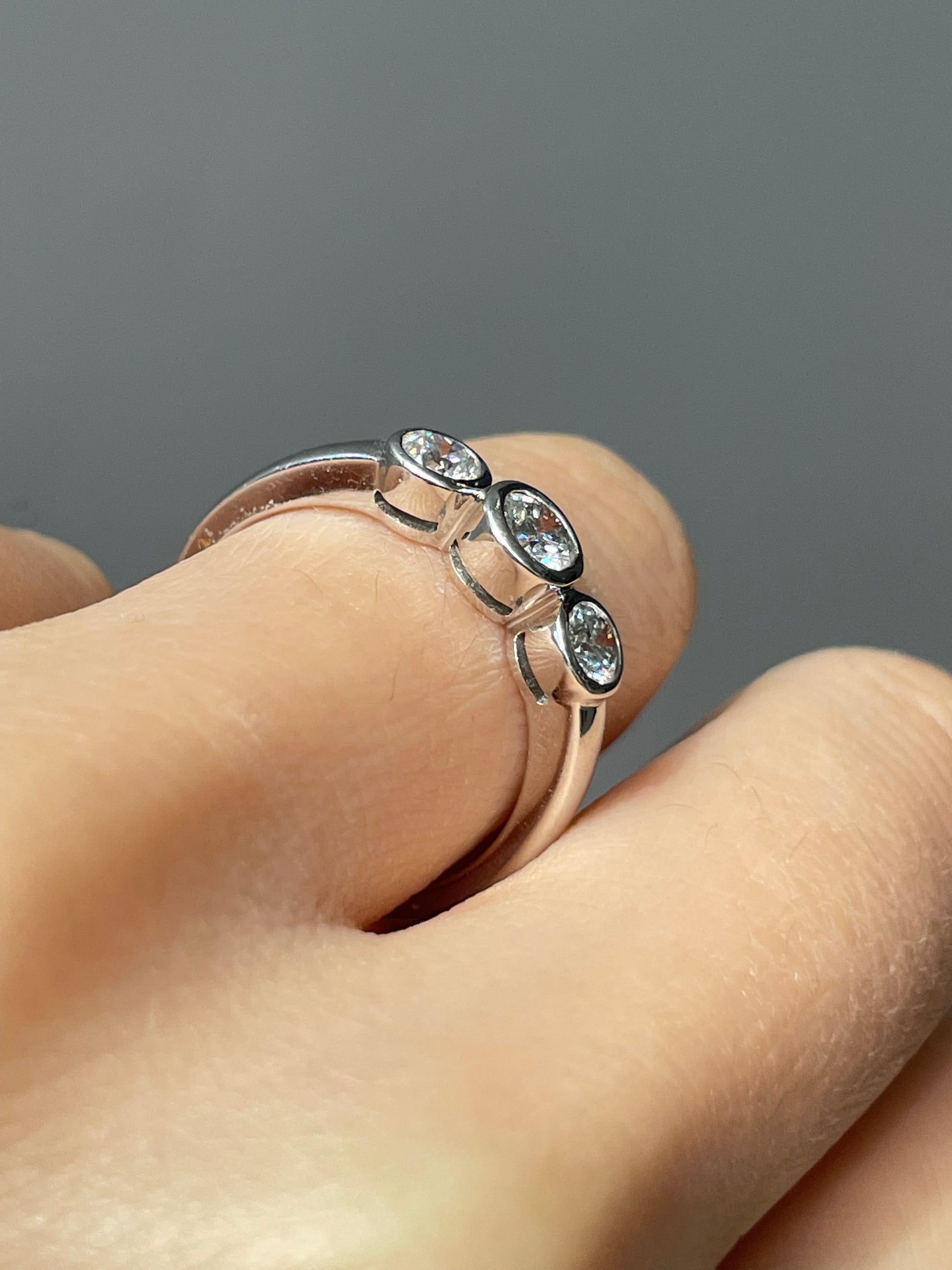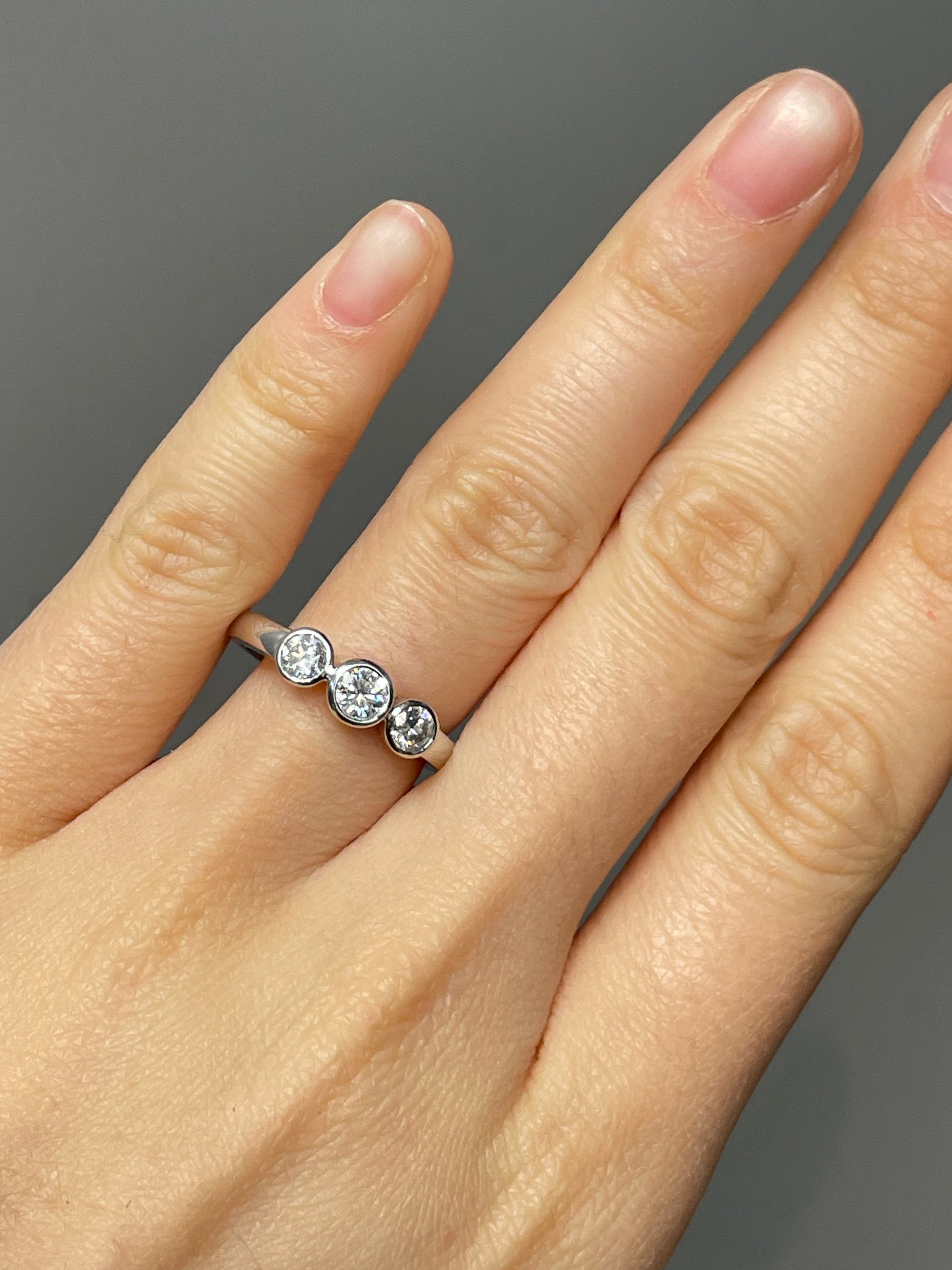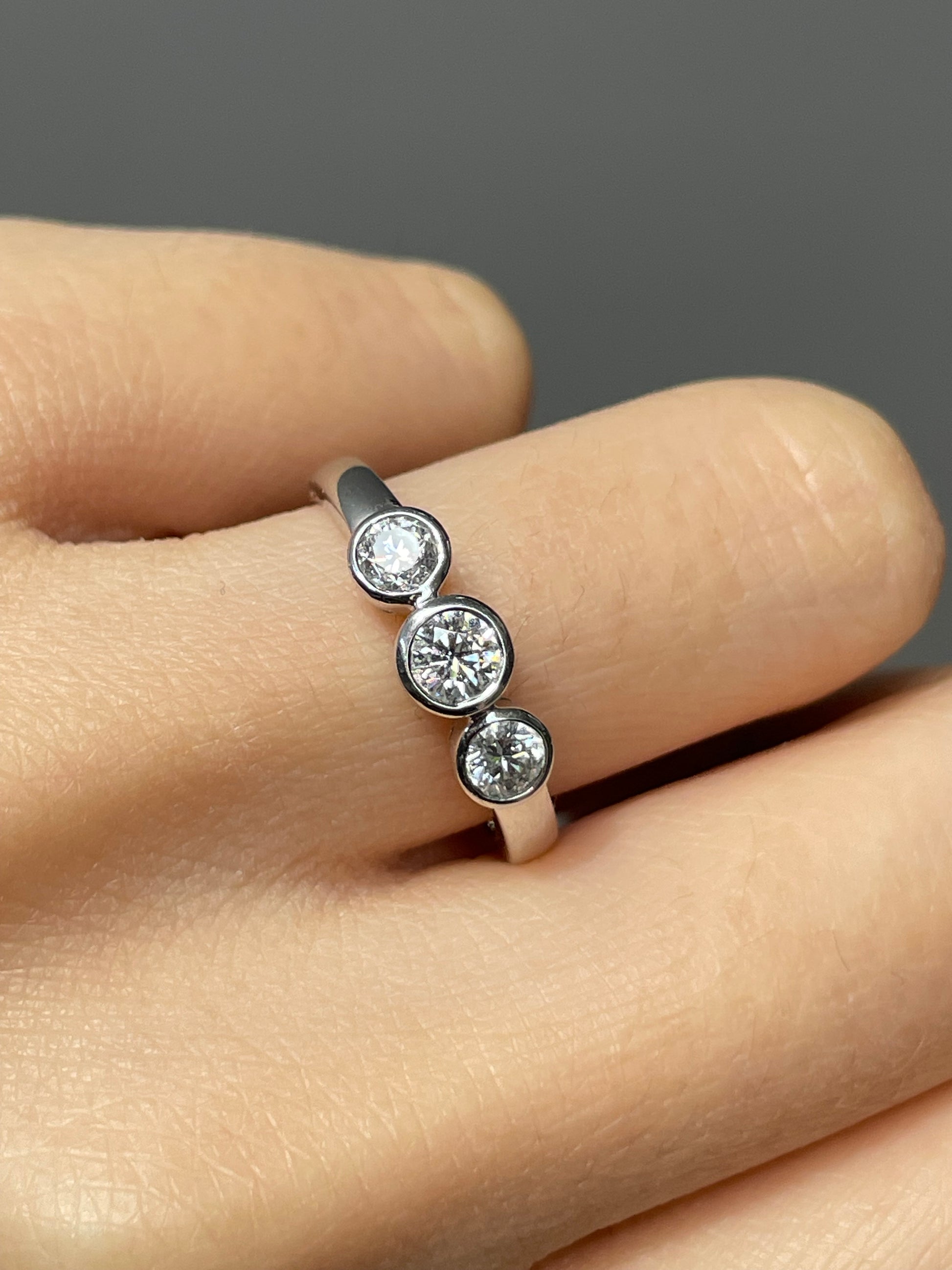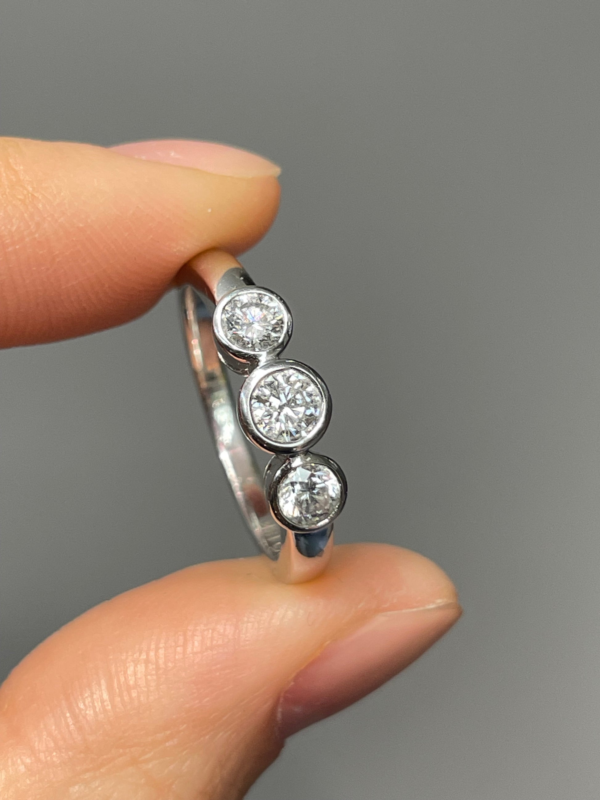 18K White Gold 0.60 CTW Diamond Bezel Trilogy Ring