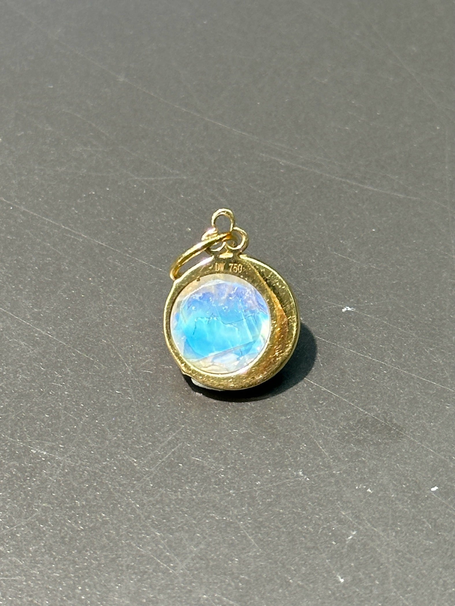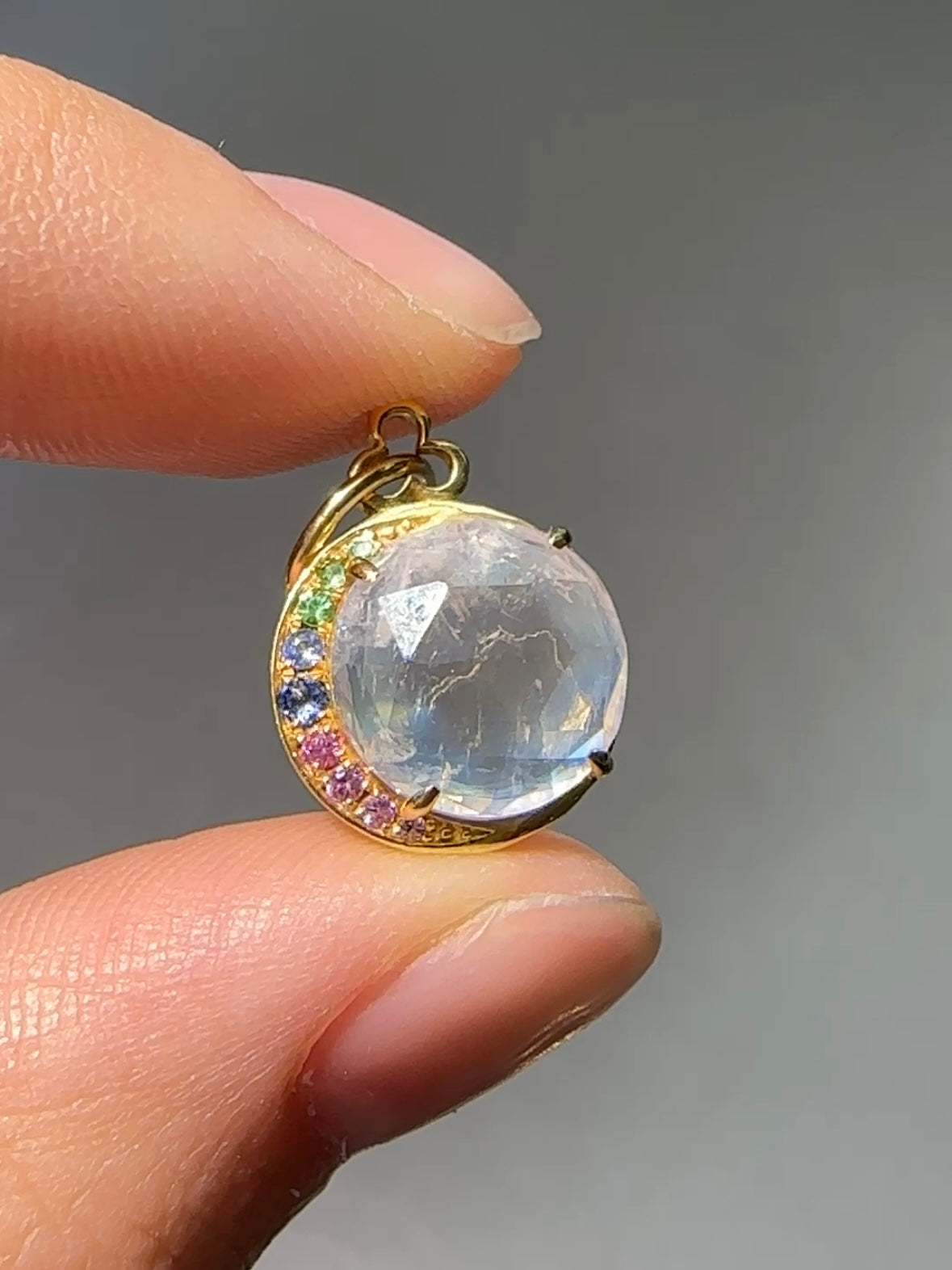 18K 黄金刻面月光石蓝宝石新月吊坠