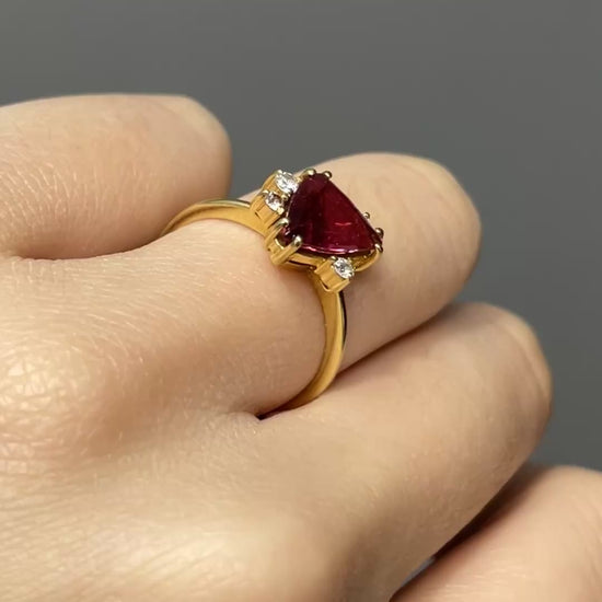 18K Yellow Gold Triangle Pink Tourmaline Diamond Ring