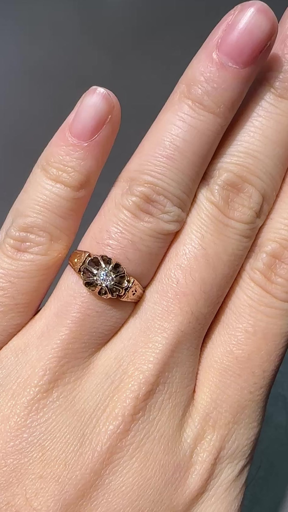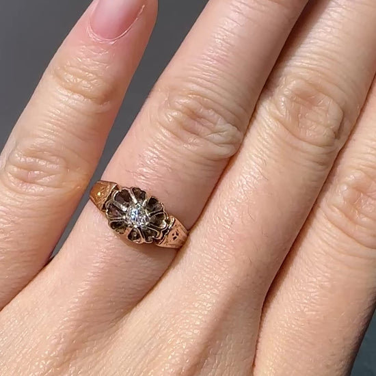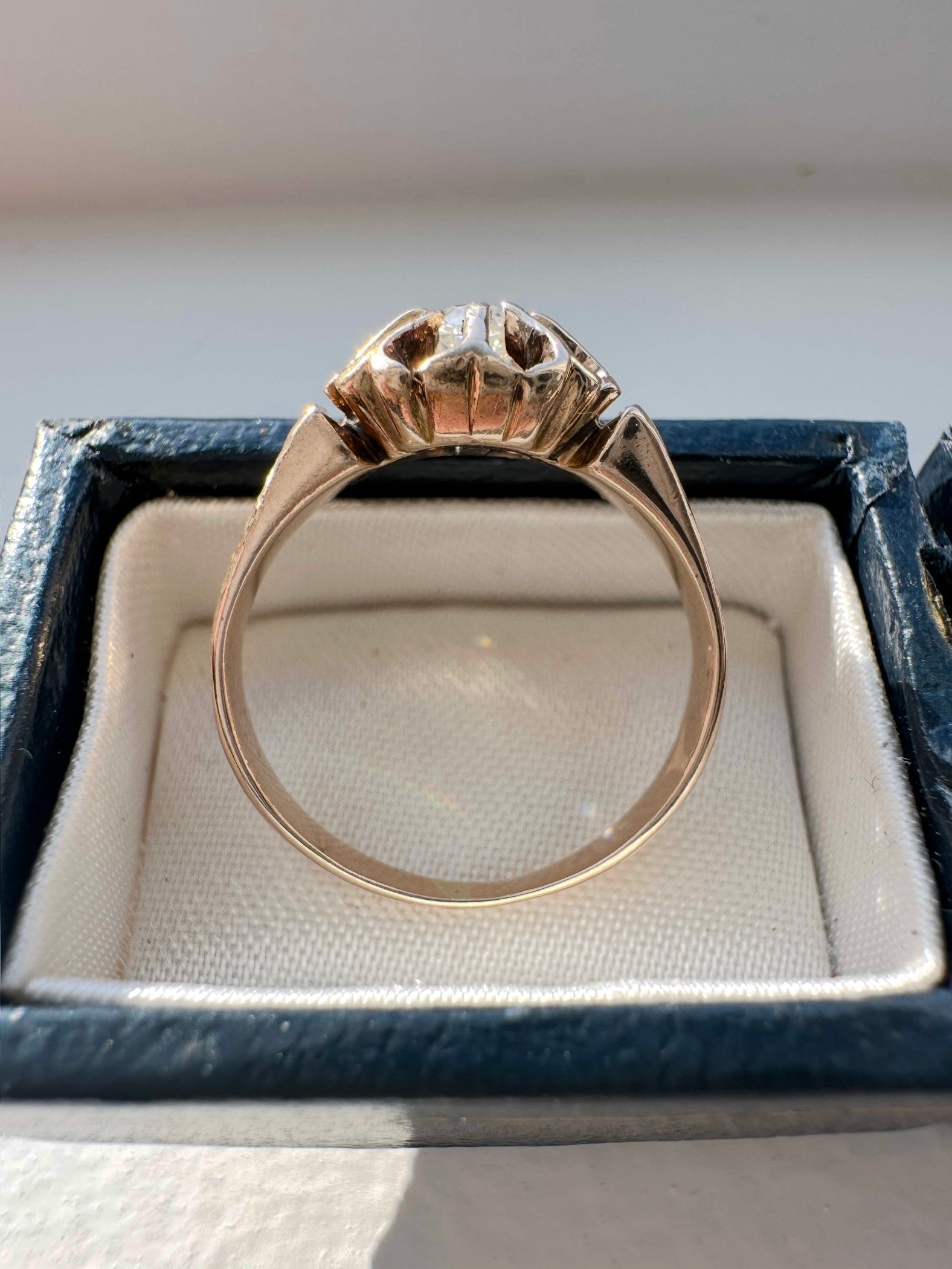 古董 14K 金 0.22 CTW 老矿切割 Belcher 图案戒指