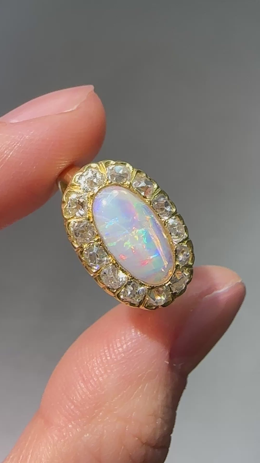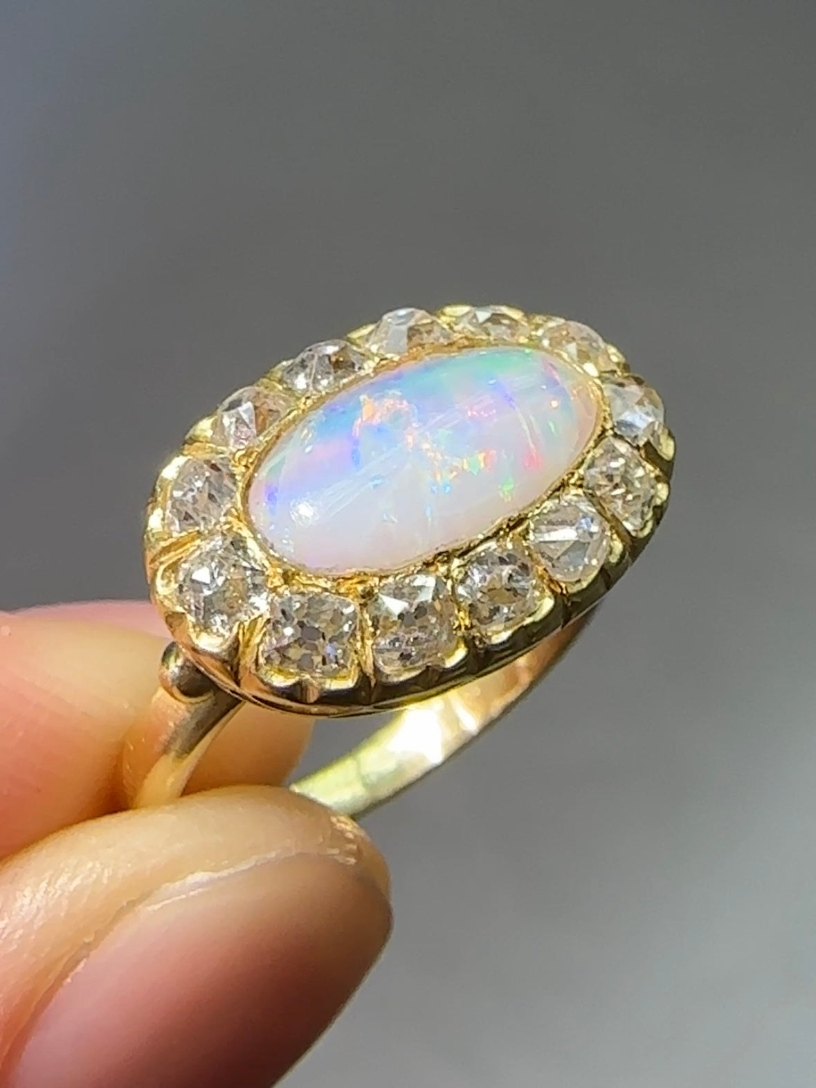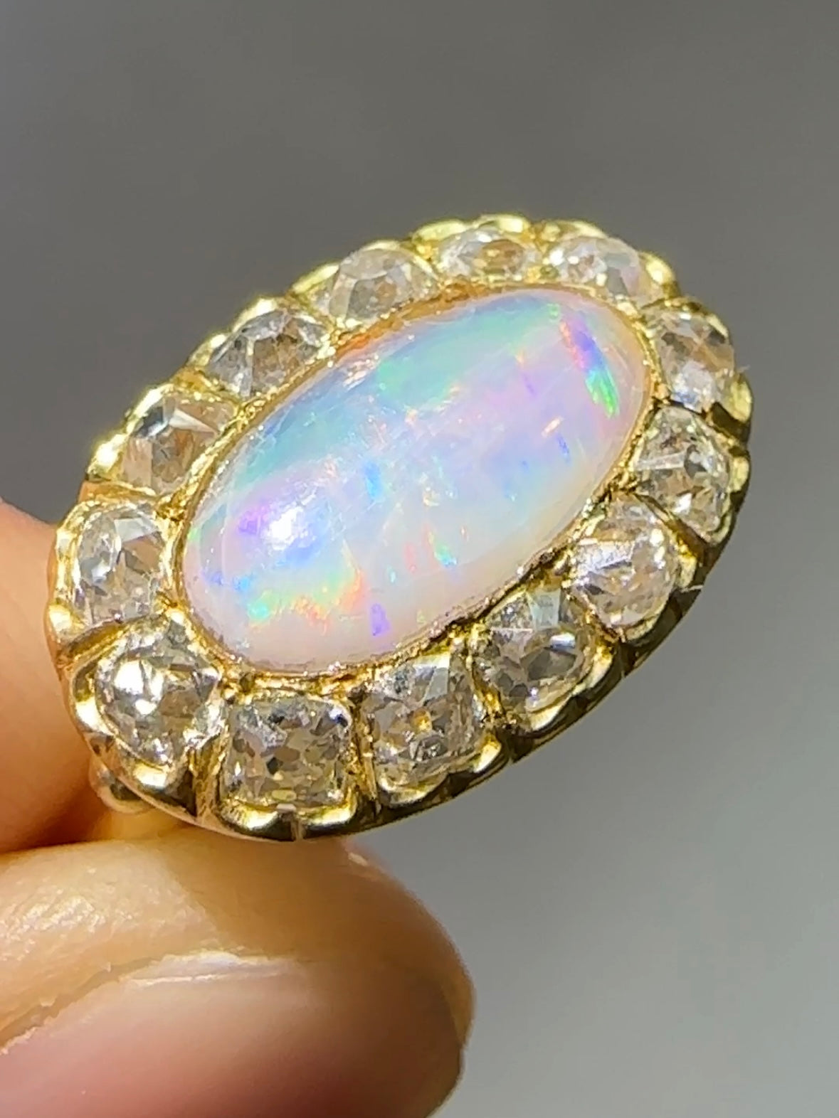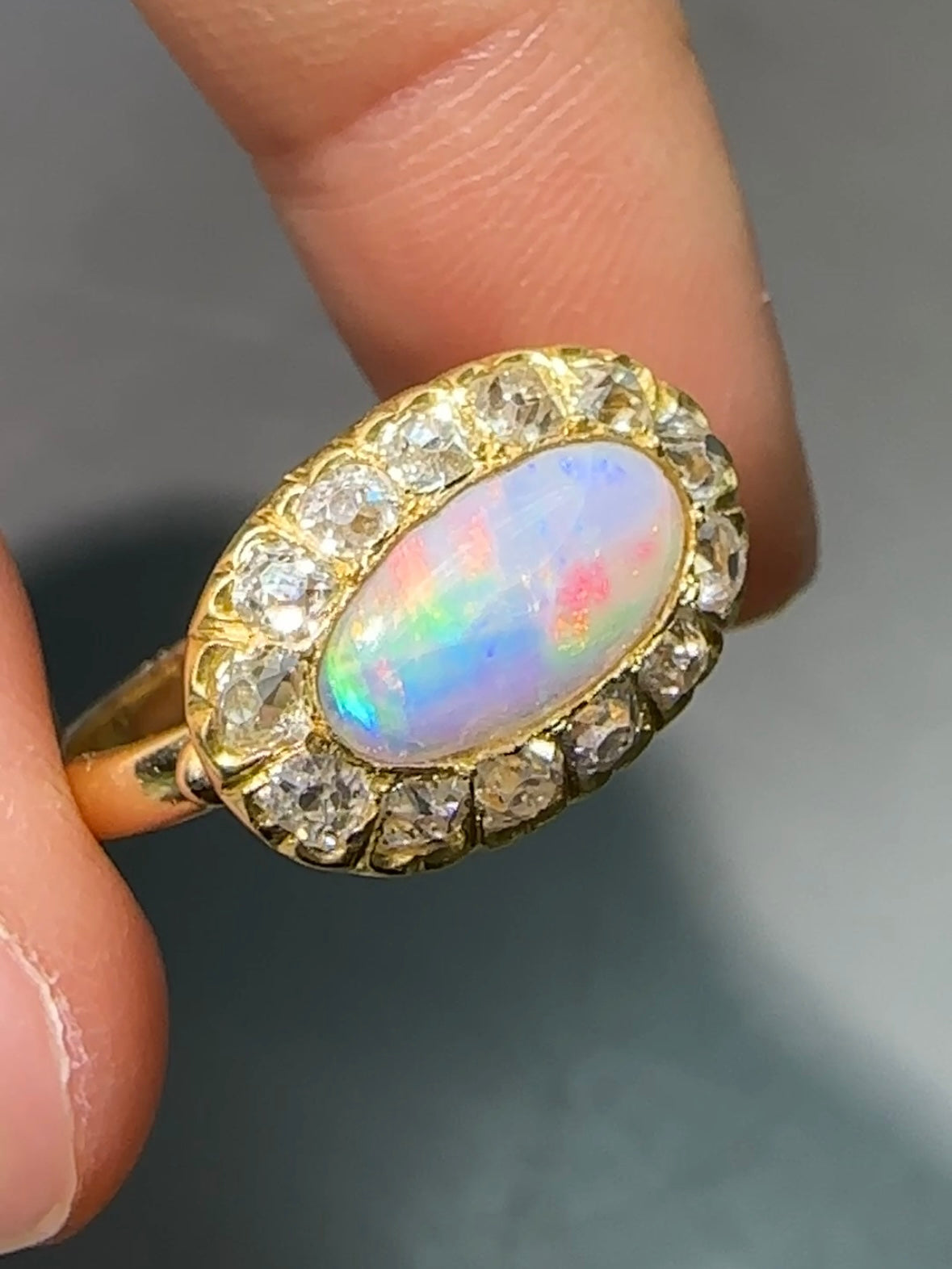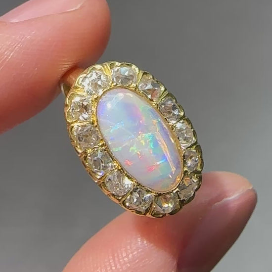 古董 14K 金 1.04 CTW 蛋白石钻石光环东向西戒指