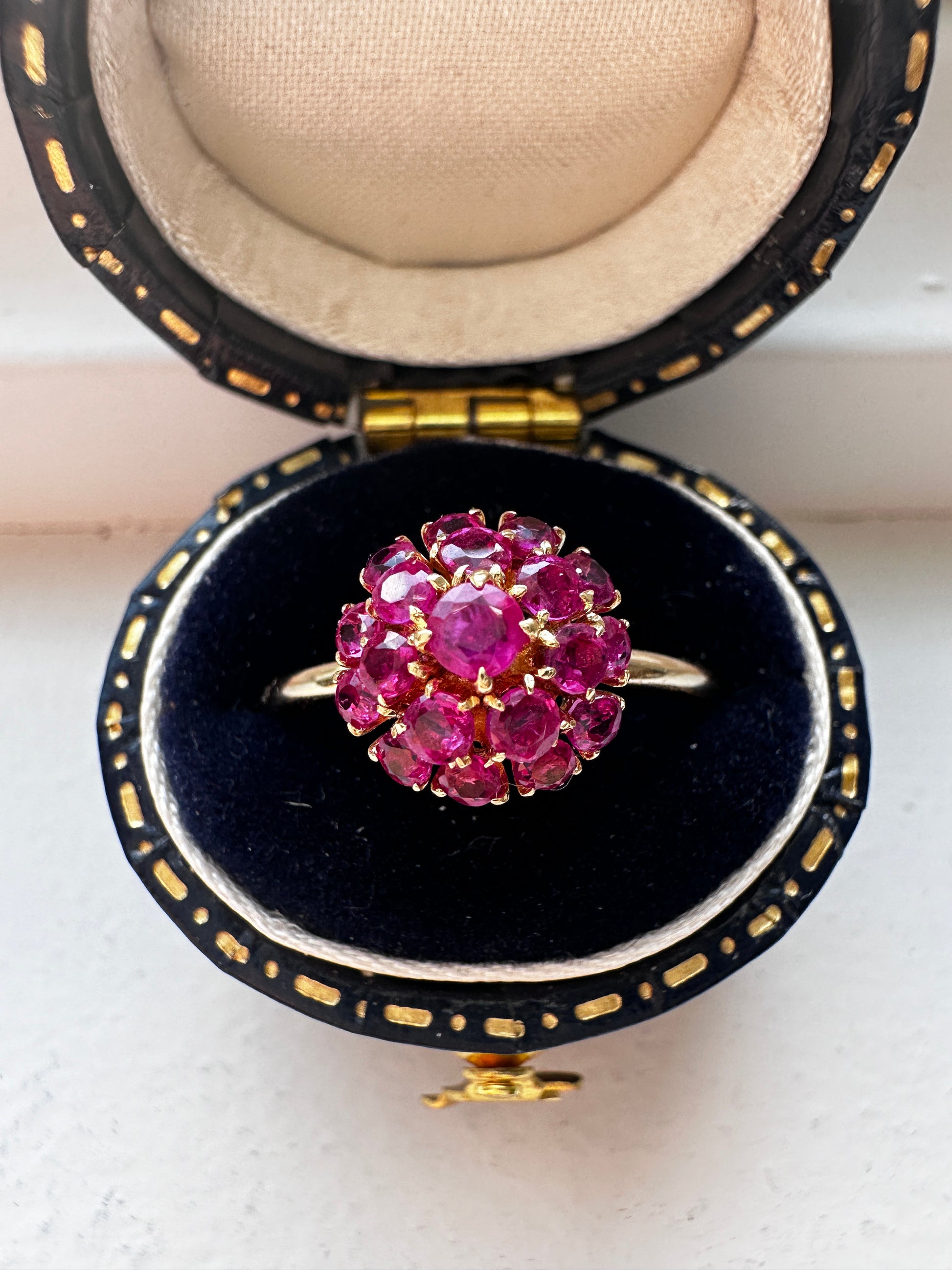 古董 14K 金 1.61 CTW 红宝石簇转换戒指