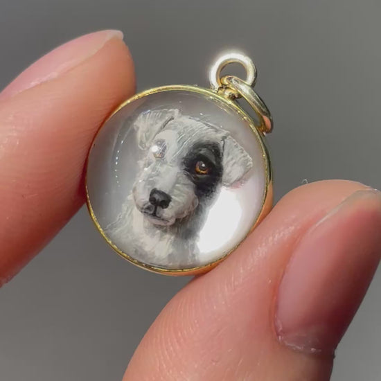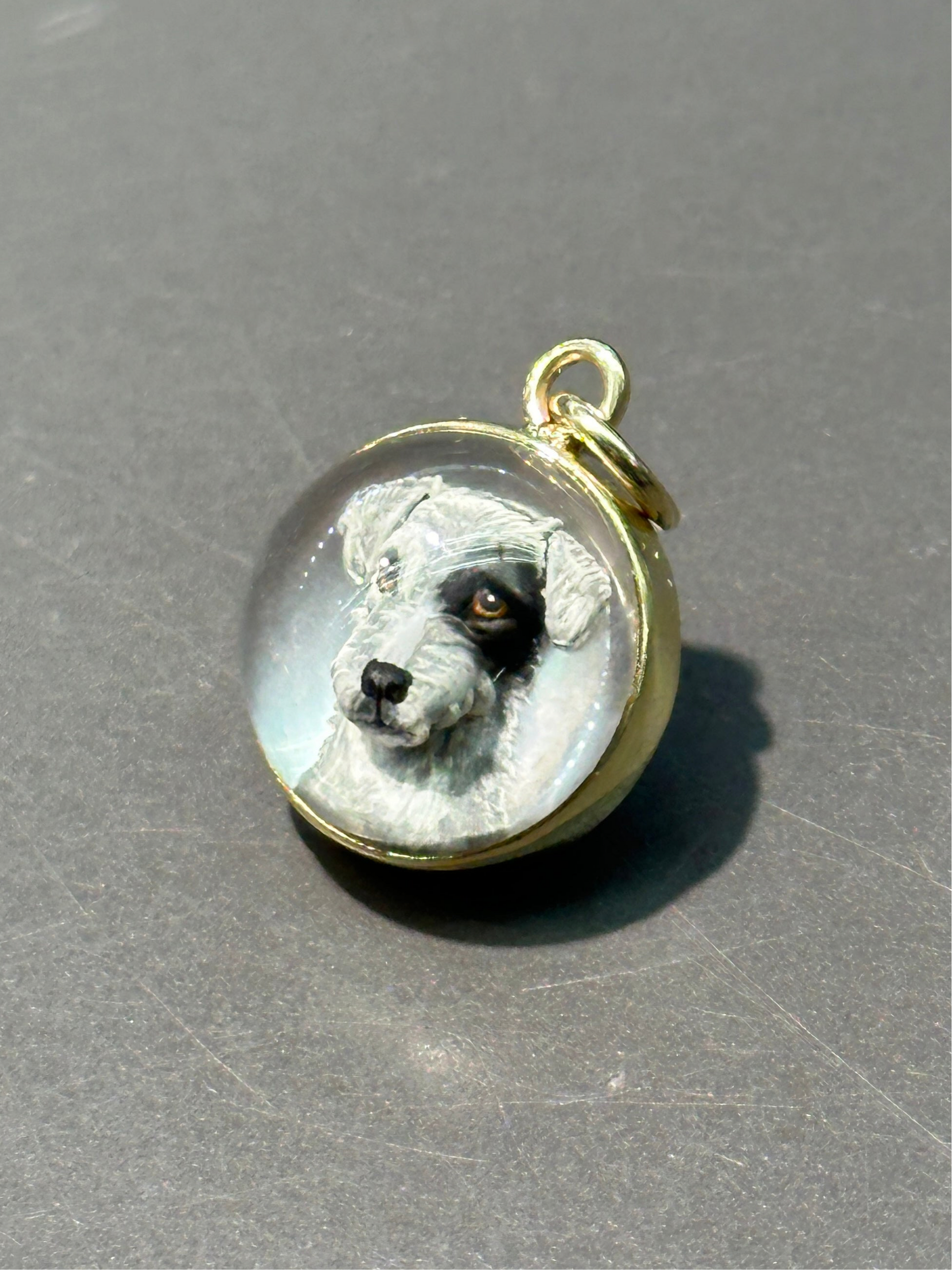古董 14K 金反向彩绘埃塞克斯水晶梗犬吊坠