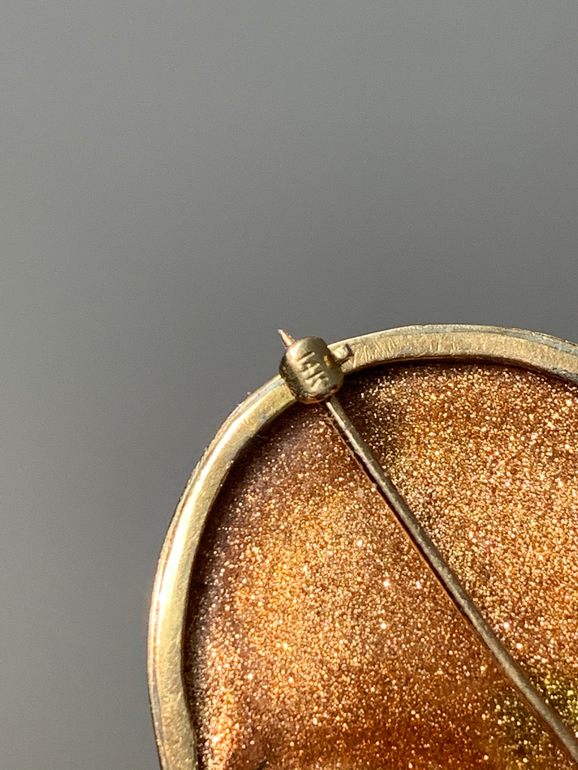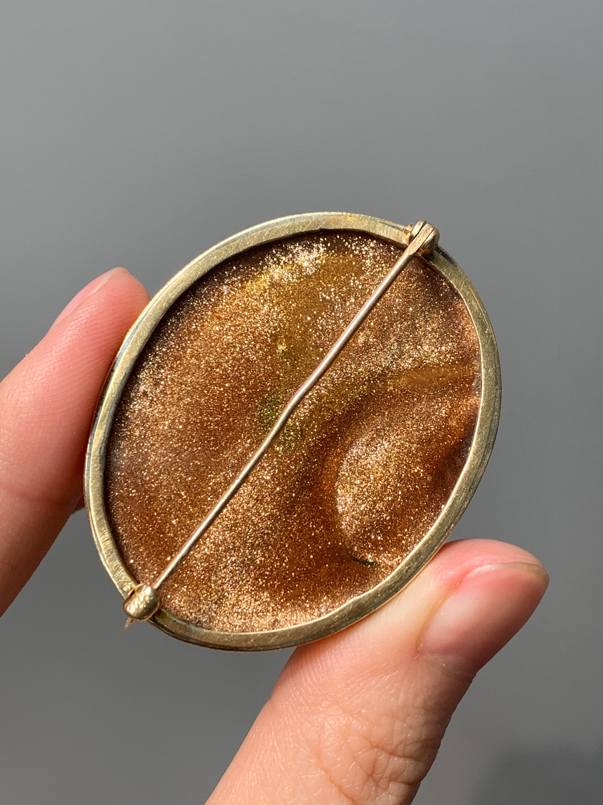 古董 14K 金圣彼得广场梵蒂冈城微马赛克椭圆形胸针