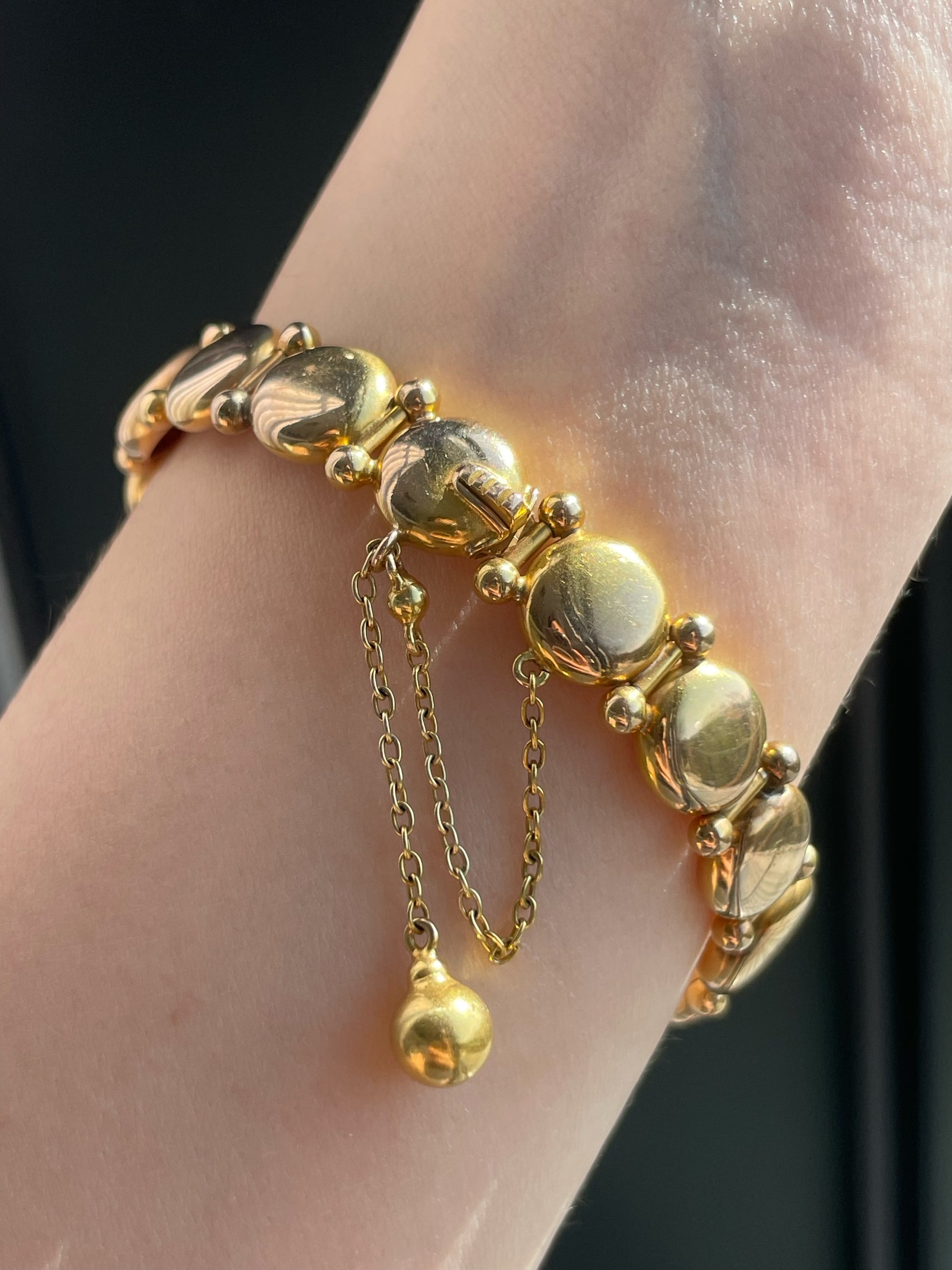 Antique 14K Yellow Fold Amethyst Starburst Button Bracelet