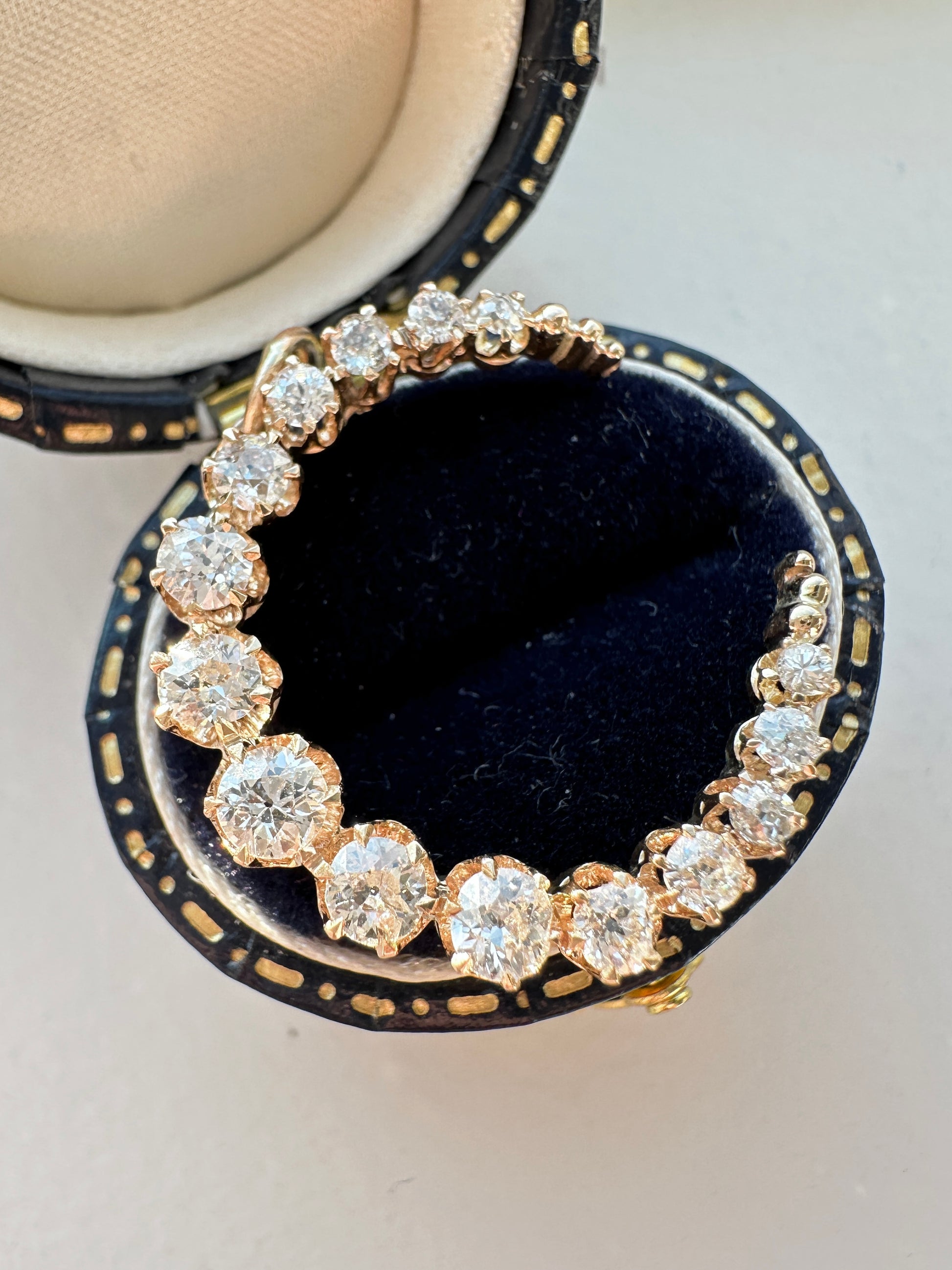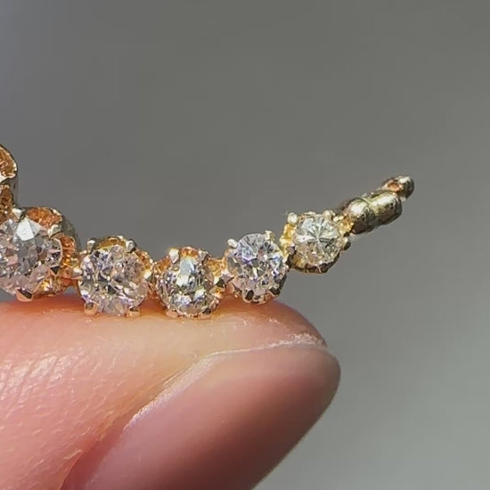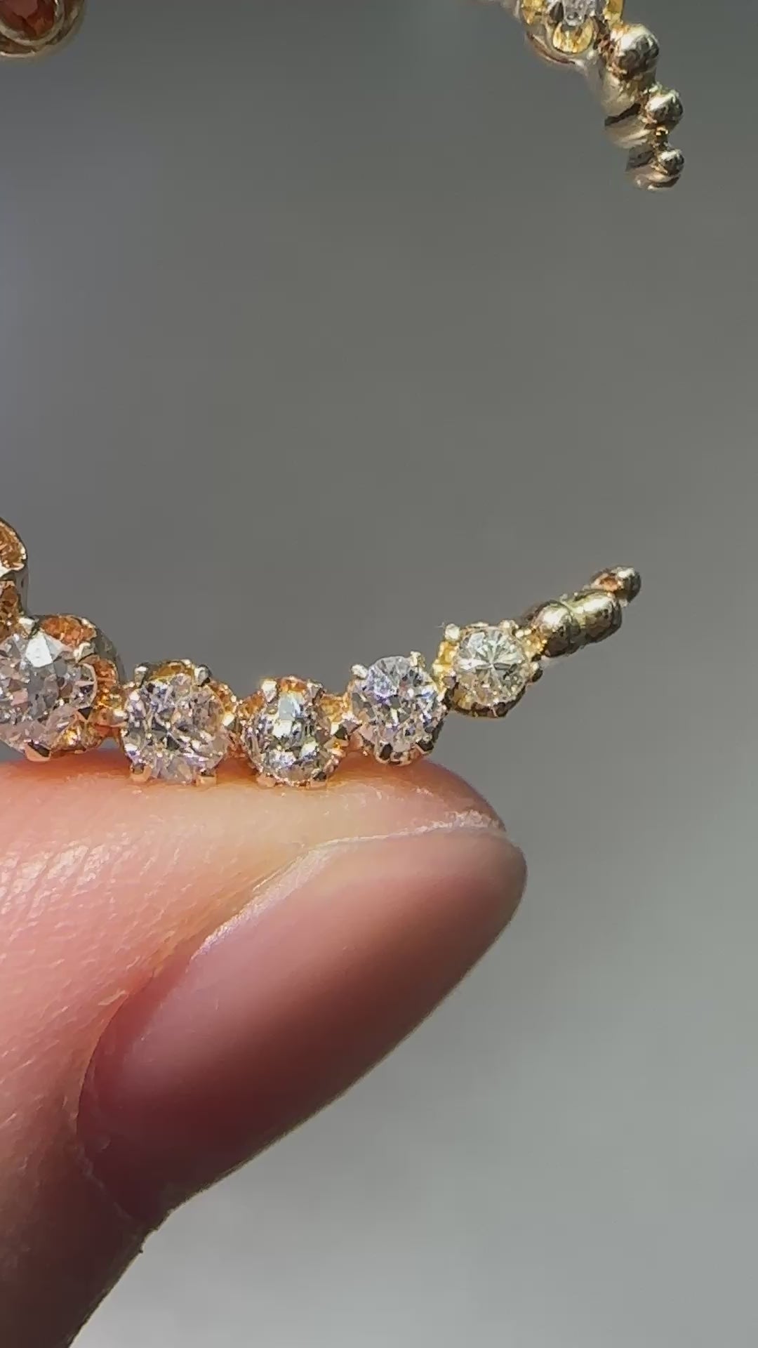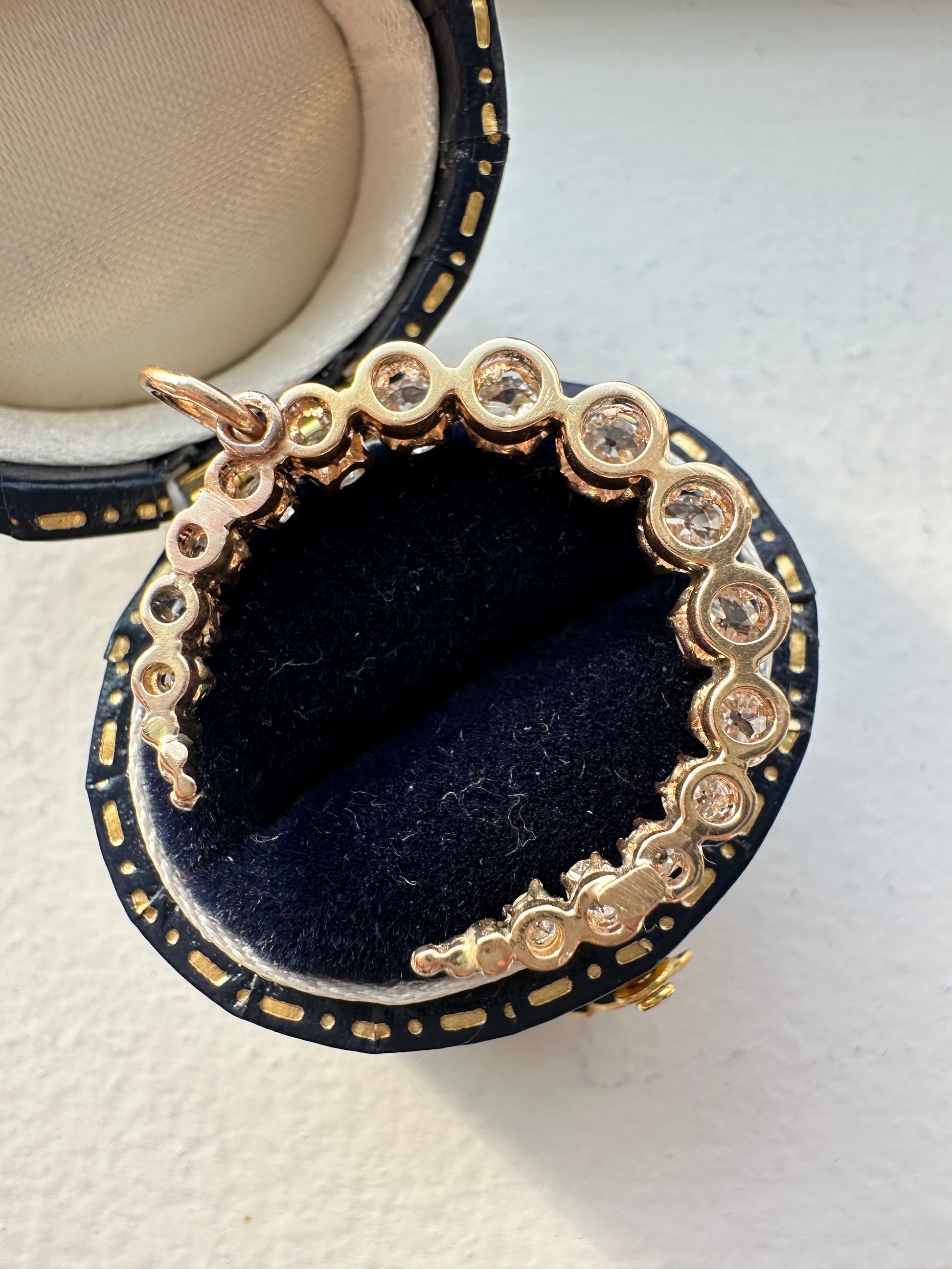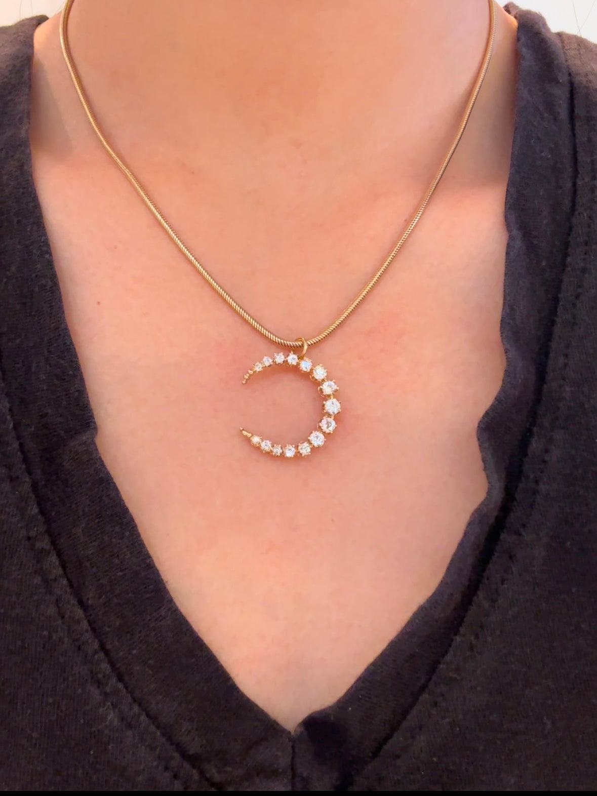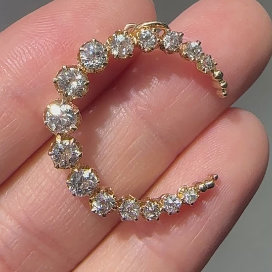 古董 14K 黄金 1.82 CTW 钻石新月吊坠